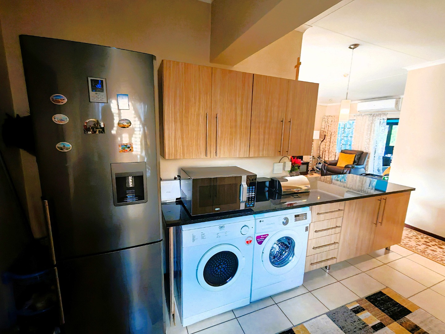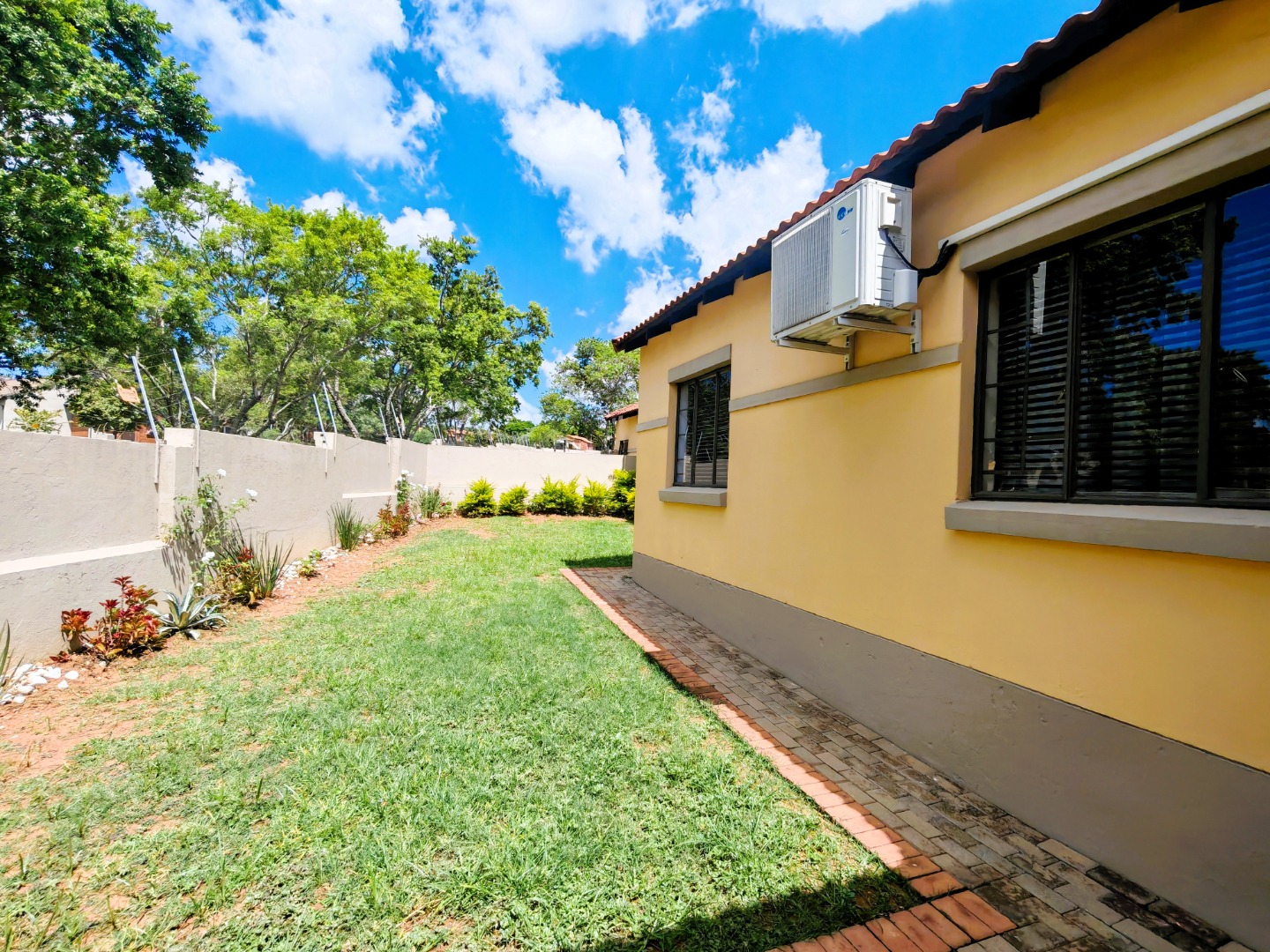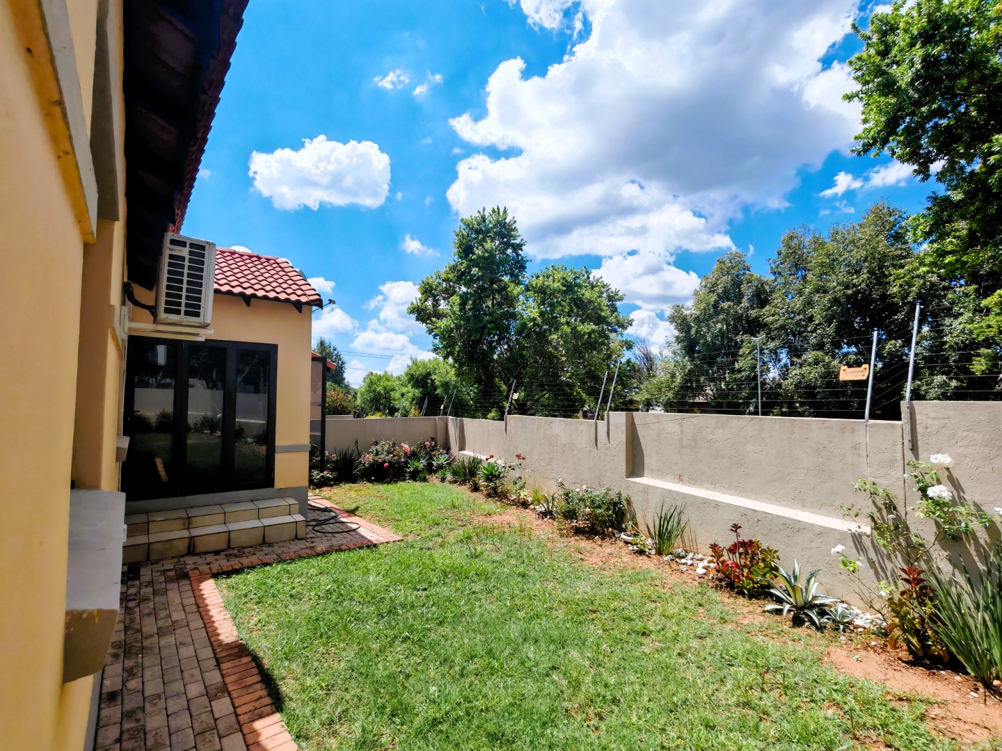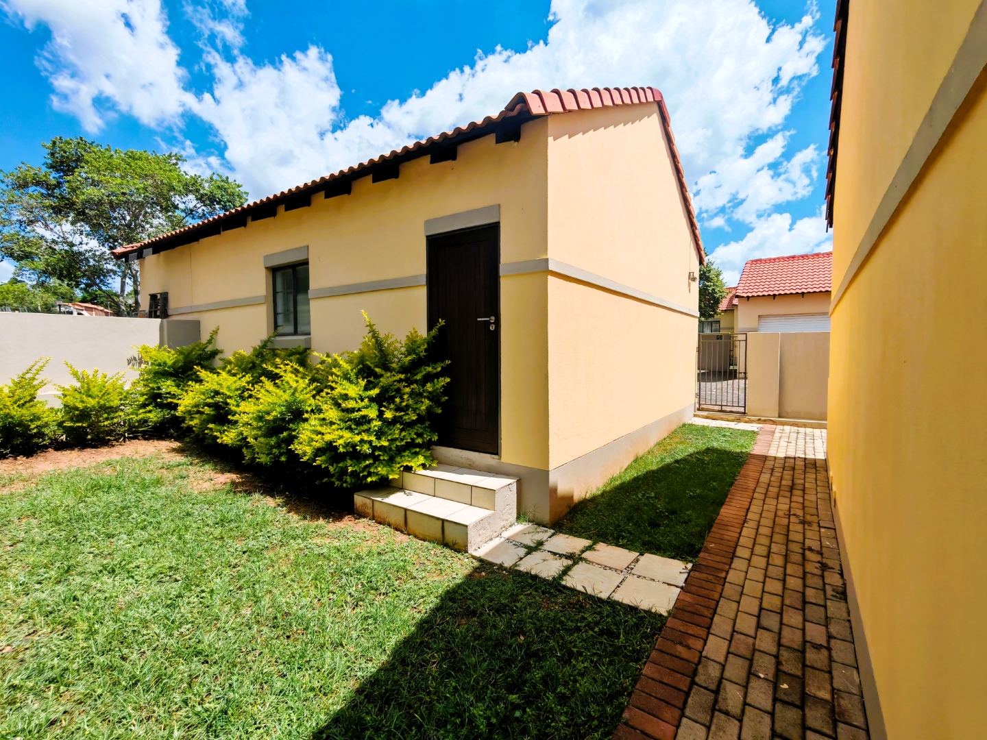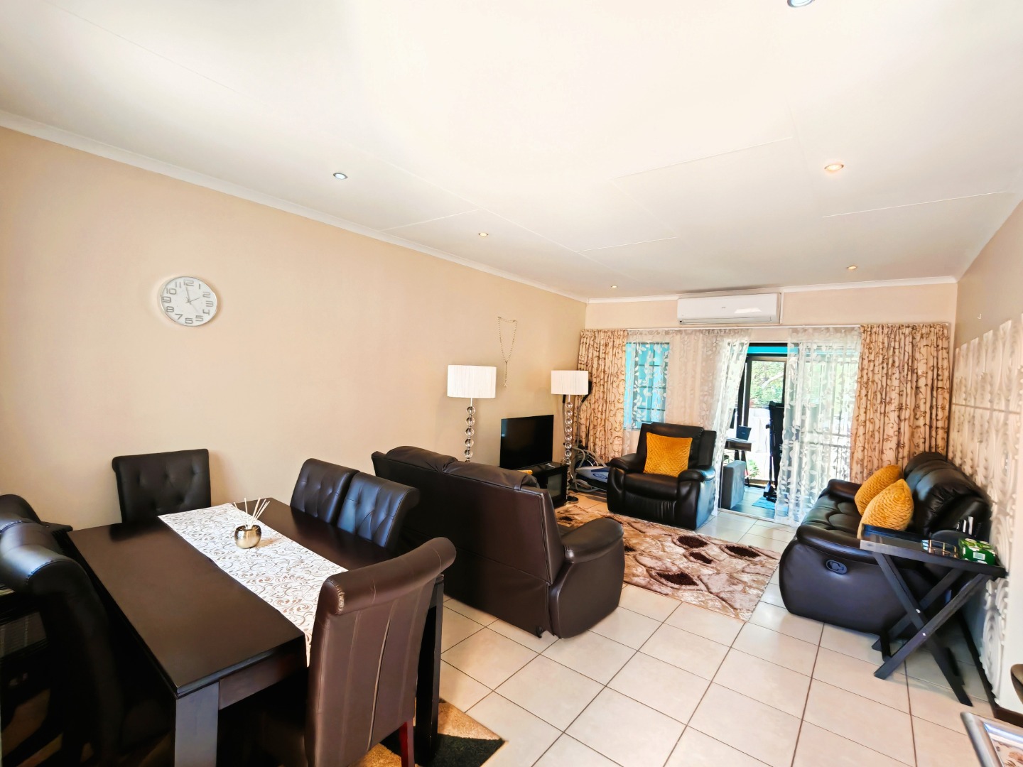 Welcome to your lovely new home!! A charming 130m2 corner unit, standalone simplex property, nestled within the secure and friendly Mooikloof Ridge estate in Pretoria. This spacious and modern home offers a relaxed lifestyle with all the comforts you need. Step inside and discover a bright, open-plan living and dining area, perfect for chilling out or entertaining friends. The lounge features air conditioning, and plenty of natural light from the large sliding doors, all set on practical tiled flooring throughout. You'll love the modern kitchen, complete with light wood-look cabinets, dark granite countertops, sopace for two undercounter appliances, as well as a double fridge, and a handy breakfast bar/nook.