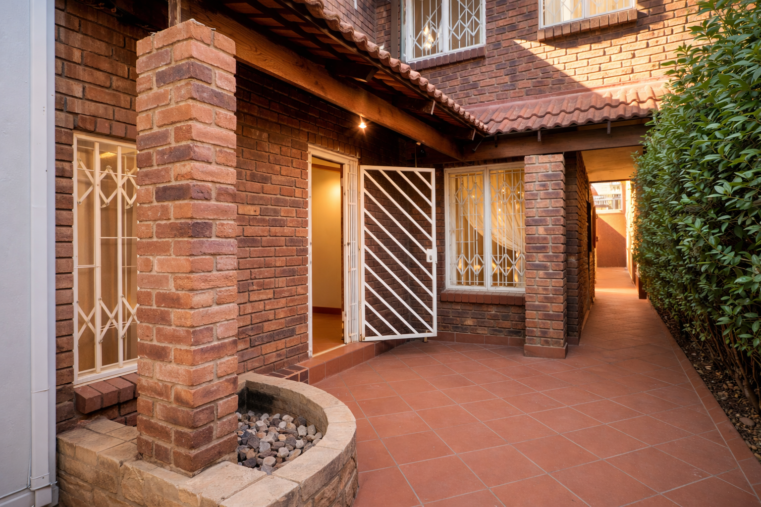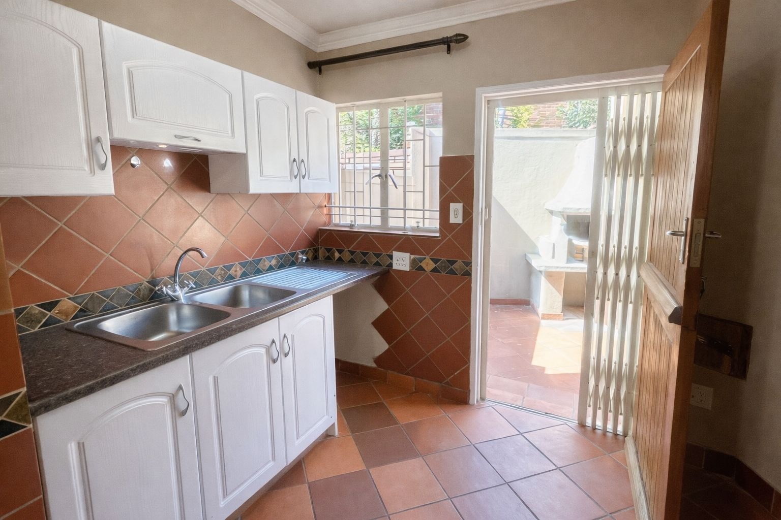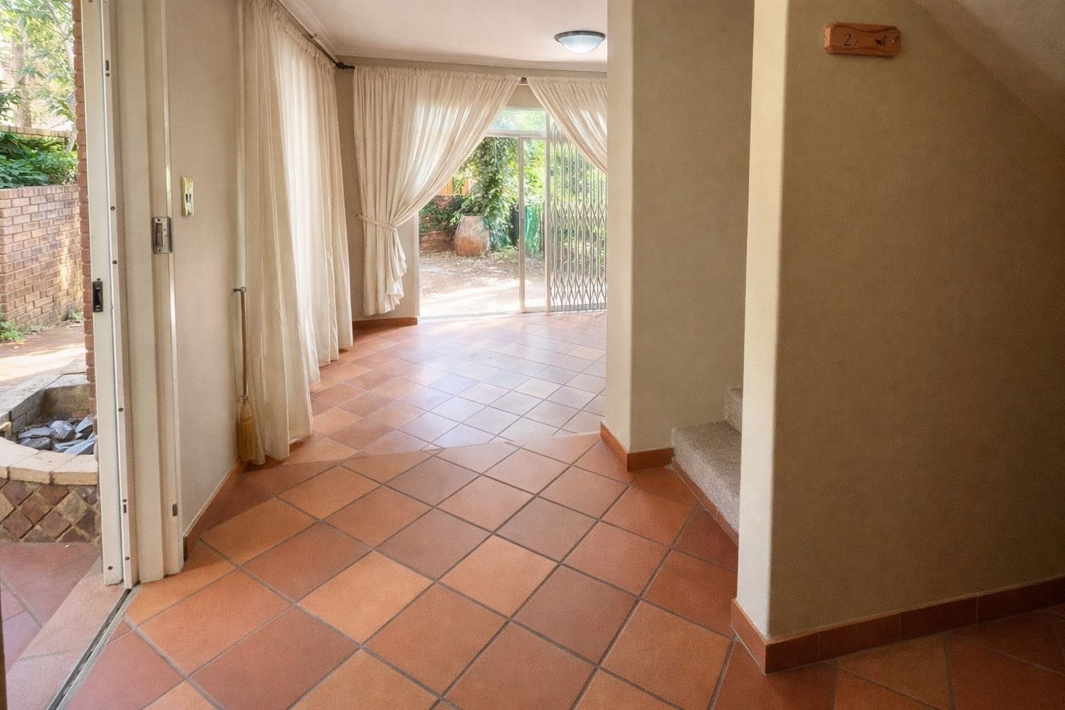 Dining room, and a tv room that opens up to the yard, ideal for entertaining on the patio. The garden and built in braai requirs a little bit of love and tlc. The complex also have a communal pool.
