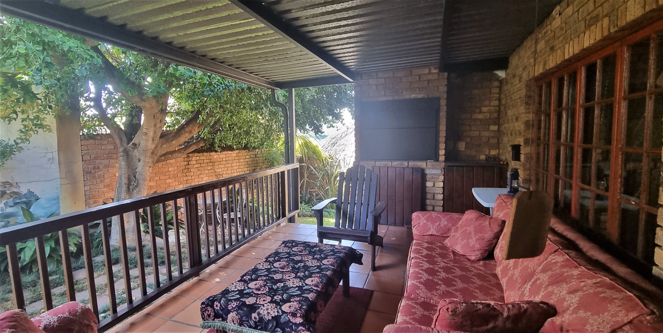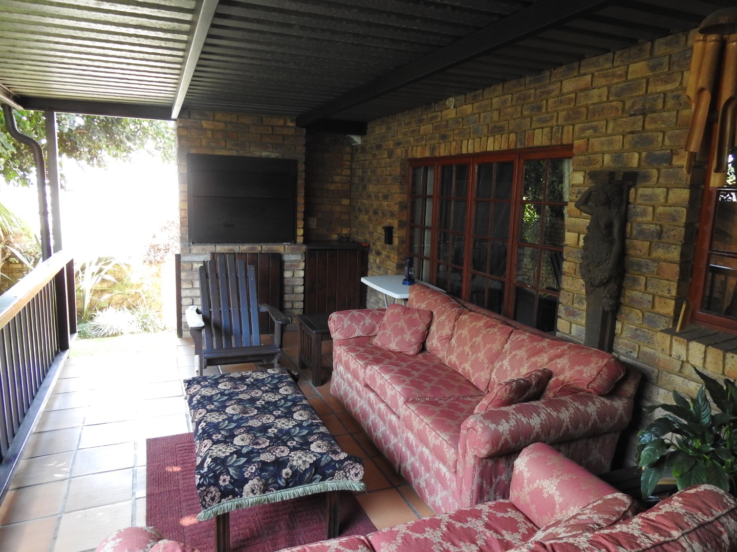The air-conditioned lounge flows into a covered entertainment area featuring a built-in braai — perfect for family gatherings, weekend get-togethers, or simply relaxing with friends.