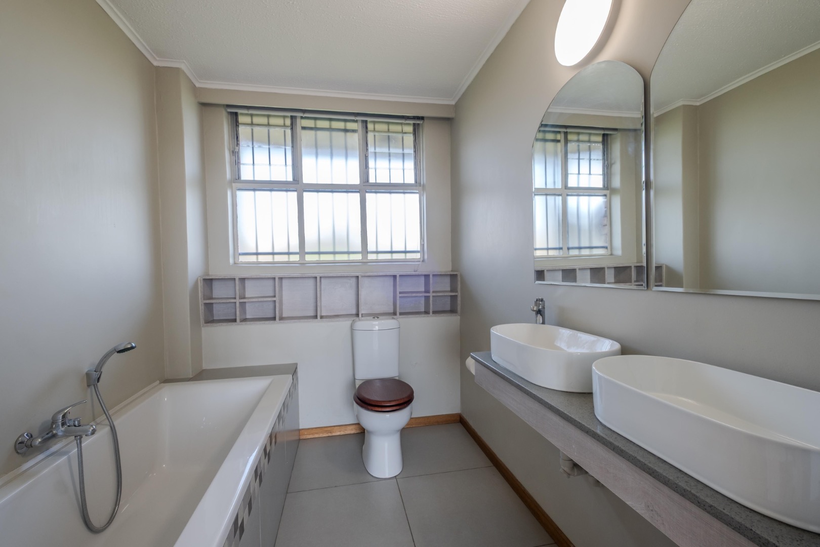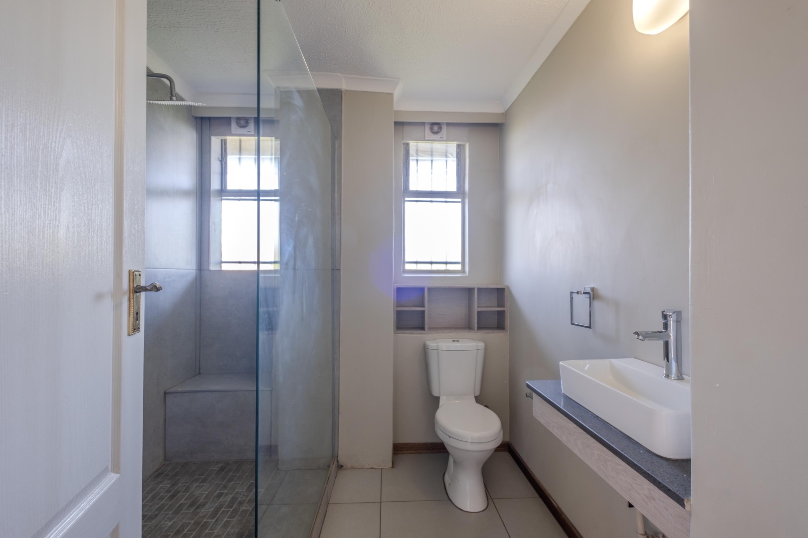 The main bedroom features an en-suite bathroom, while the remaining two bedrooms are generous in size and share a well-appointed second bathroom.