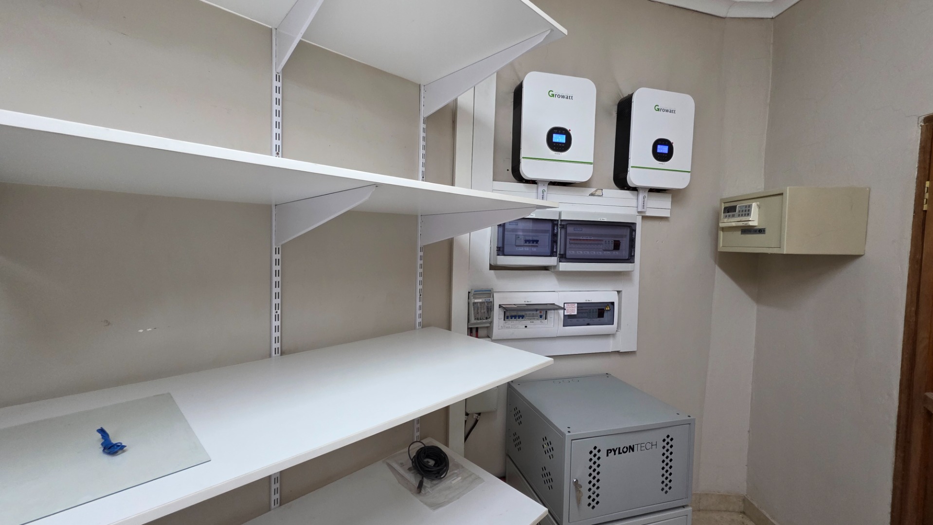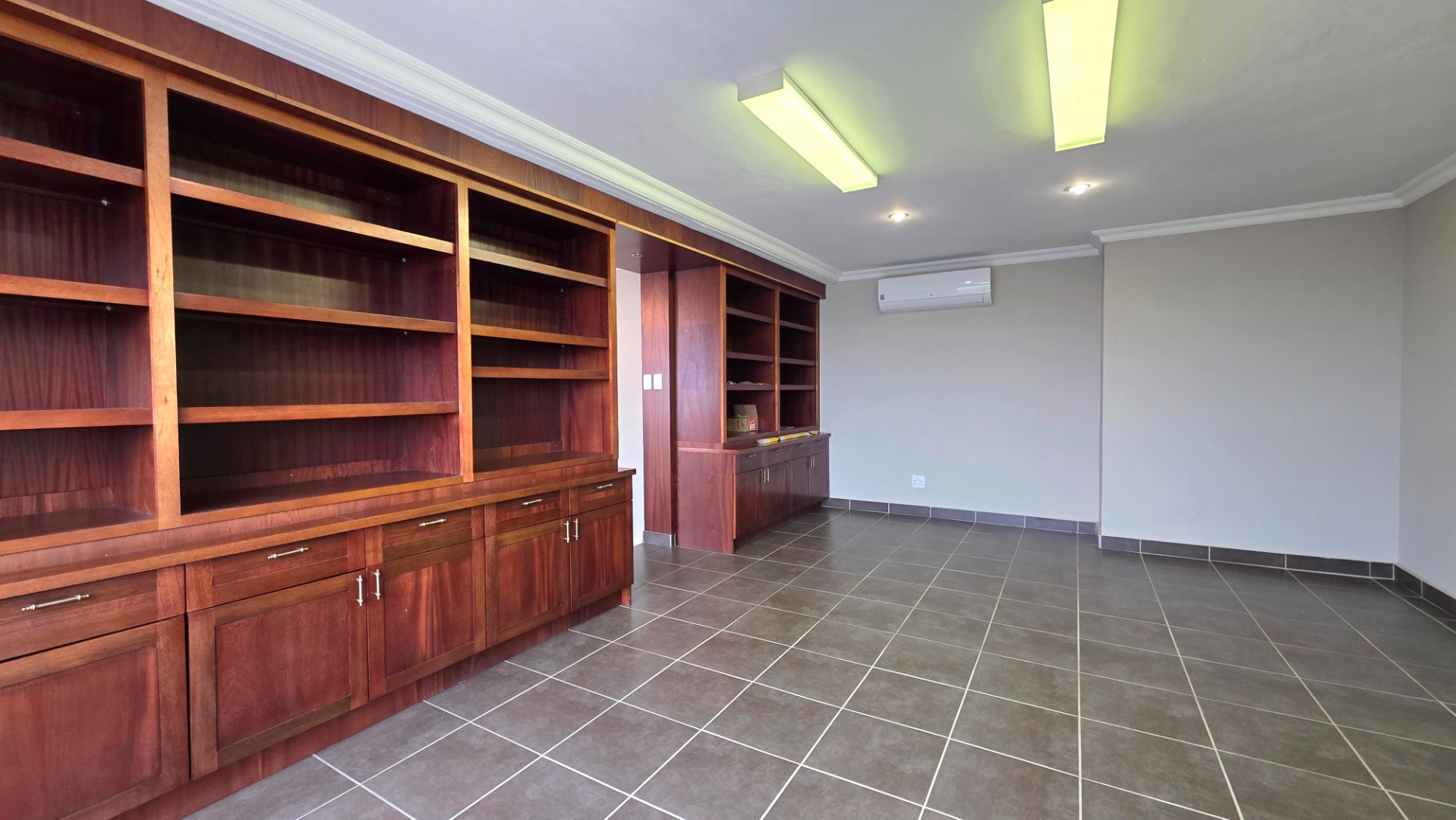 From the main bedroom there is a large study with custom built-in bookshelves. The study is tiled and airconditioned. The study is North facing and have balcony access from which you can access a large storeroom which also houses the solar