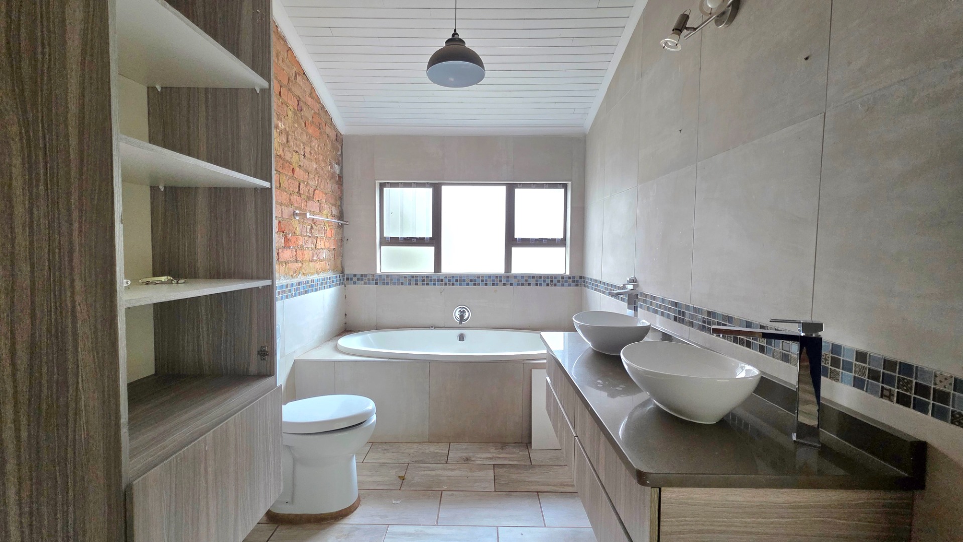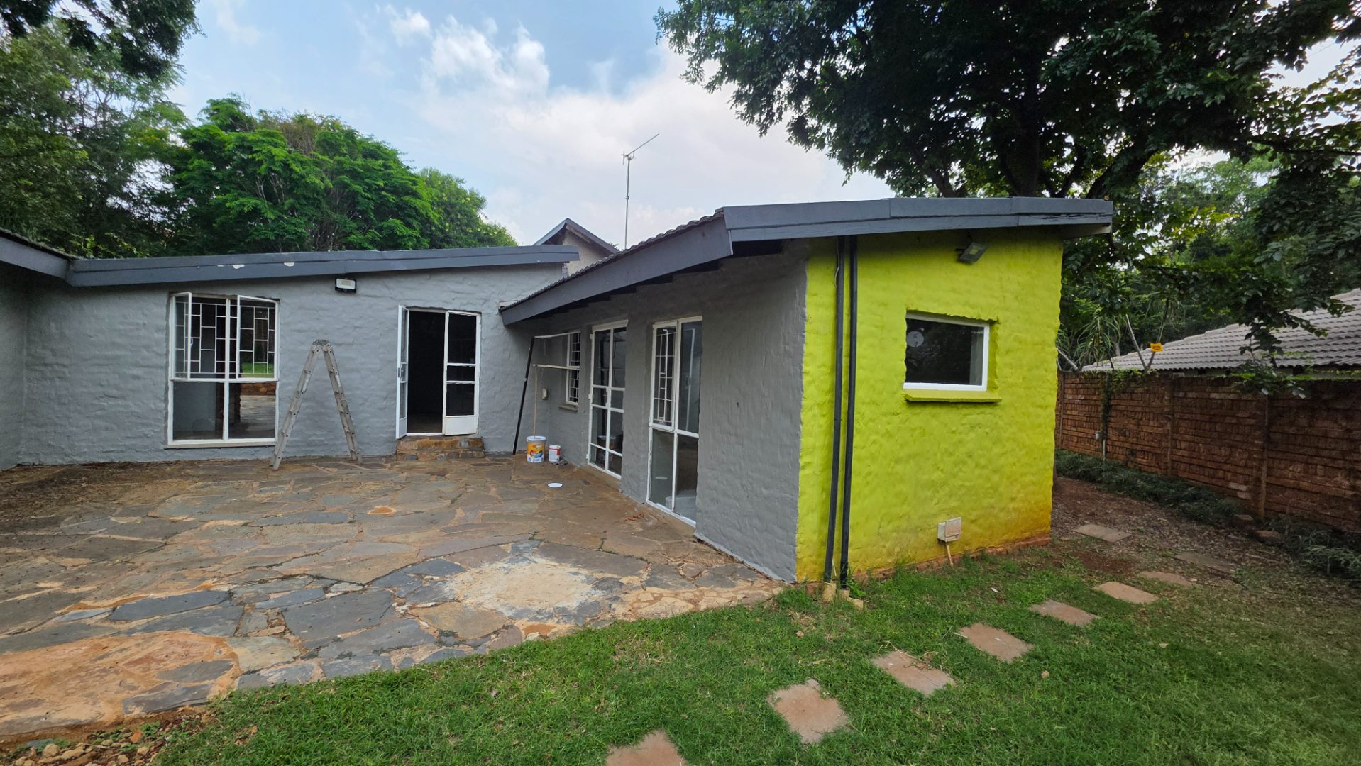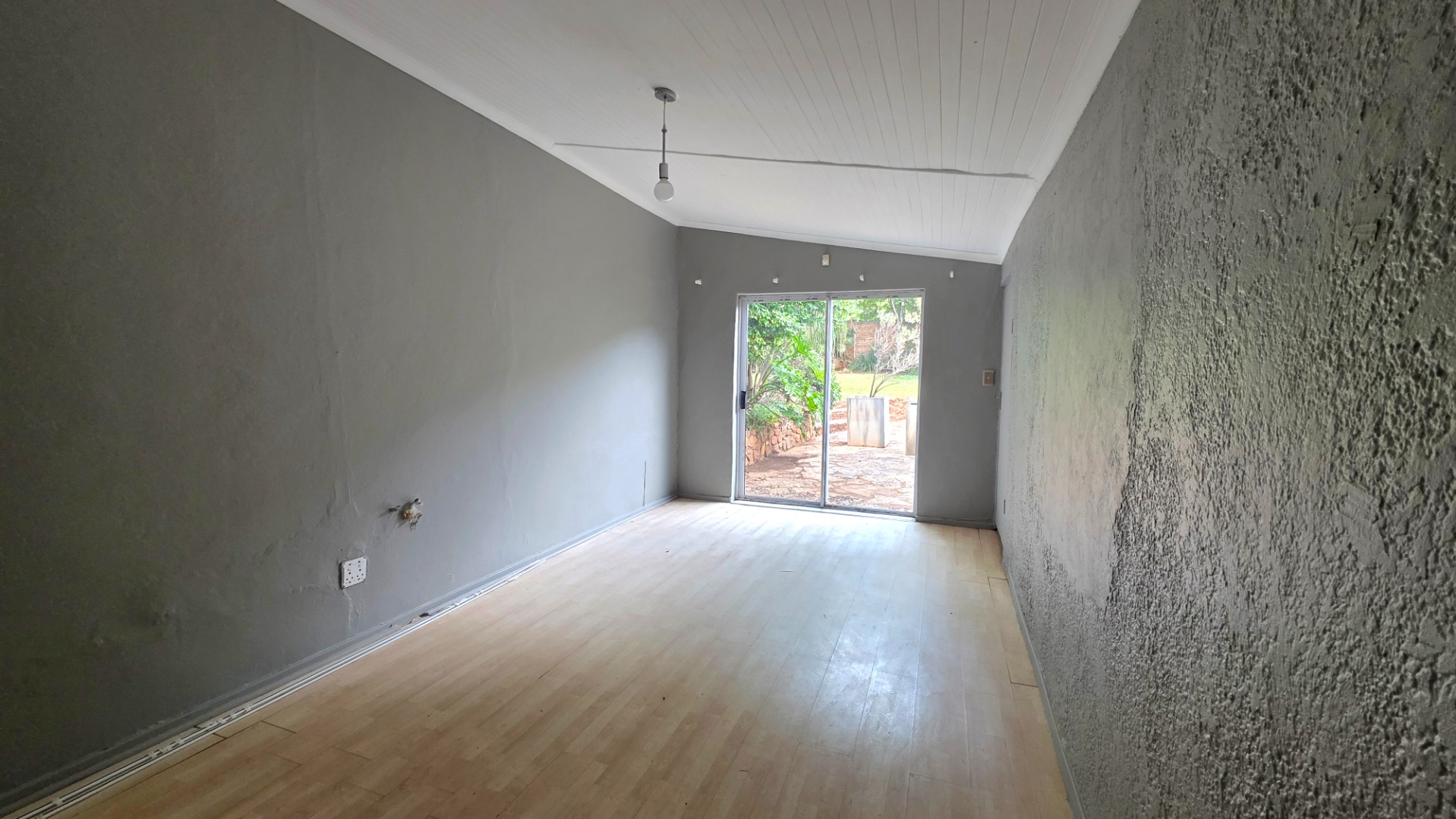 Situated in the desirable suburb Murrayfield, Pretoria, this expansive residence offers a tranquil living environment ideal for families seeking space and comfort. This substantial property, spanning 450 square metres, presents four bedrooms and three bathrooms, including two en-suites, providing ample accommodation. The interior boasts a distinctive character, featuring high vaulted wooden ceilings with exposed beams and a prominent stone fireplace, creating an inviting atmosphere within the lounge and family TV room. The functional galley-style kitchen is equipped with laminated cherrywood cabinetry, stone countertops, a built-in eye-level oven, gas hob, and extractor fan, complemented by a double sink. There is a large outside laundry & storage room across the kitchen courtyard.
