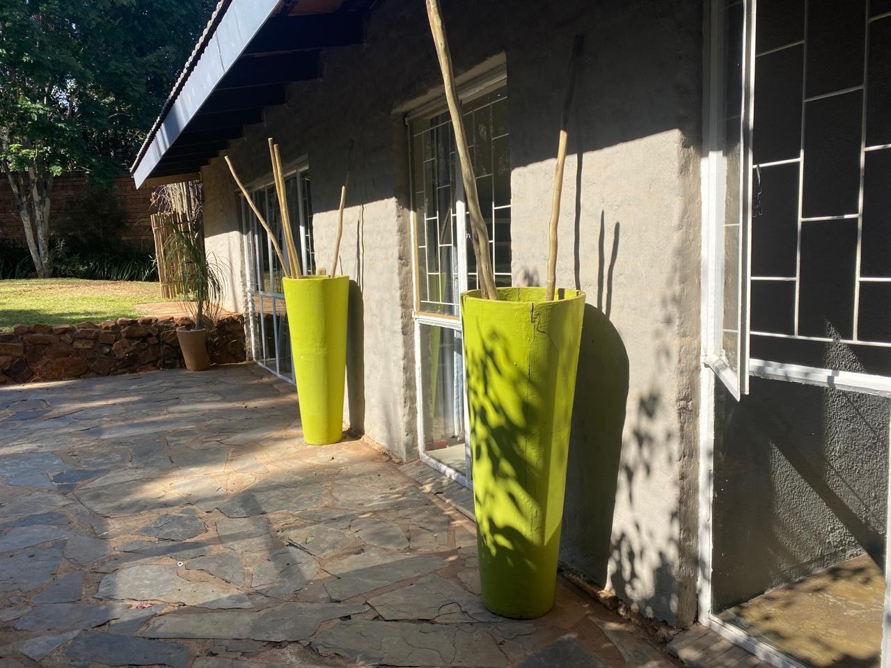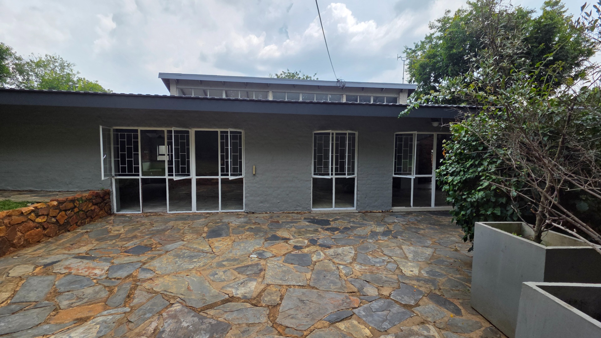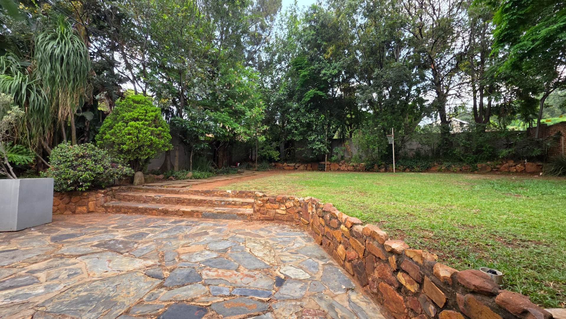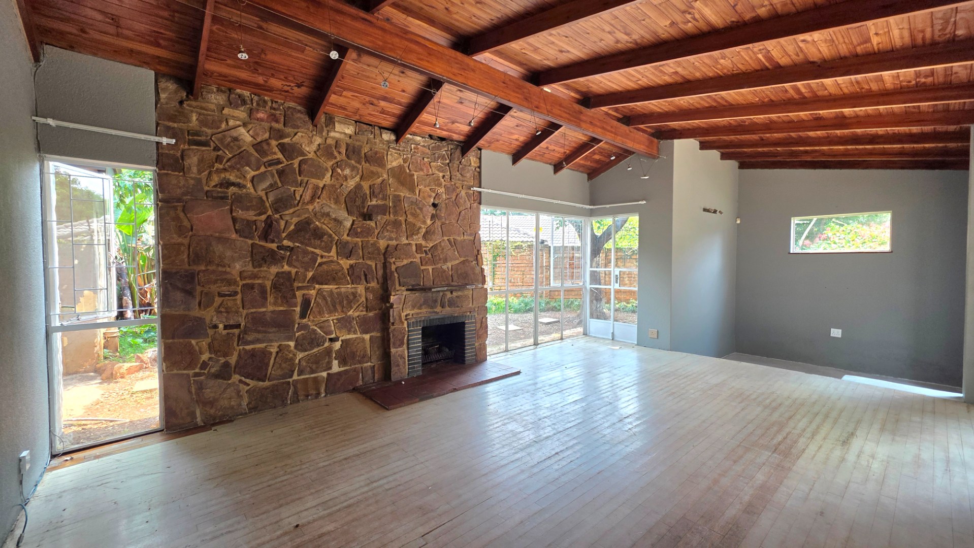 Situated in the desirable suburb Murrayfield, Pretoria, this expansive residence offers a tranquil living environment ideal for families seeking space and comfort. This substantial property, spanning 450 square metres, presents four bedrooms and three bathrooms, including two en-suites, providing ample accommodation. The interior boasts a distinctive character, featuring high vaulted wooden ceilings with exposed beams and a prominent stone fireplace, creating an inviting atmosphere within the lounge and family TV room. The functional galley-style kitchen is equipped with laminated cherrywood cabinetry, stone countertops, a built-in eye-level oven, gas hob, and extractor fan, complemented by a double sink. There is a large outside laundry & storage room across the kitchen courtyard.
