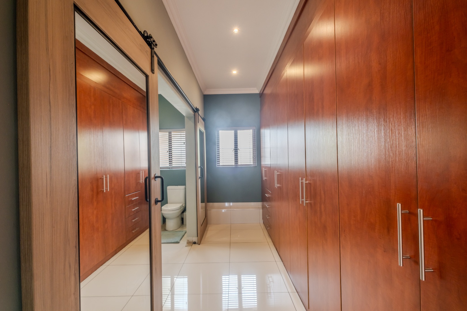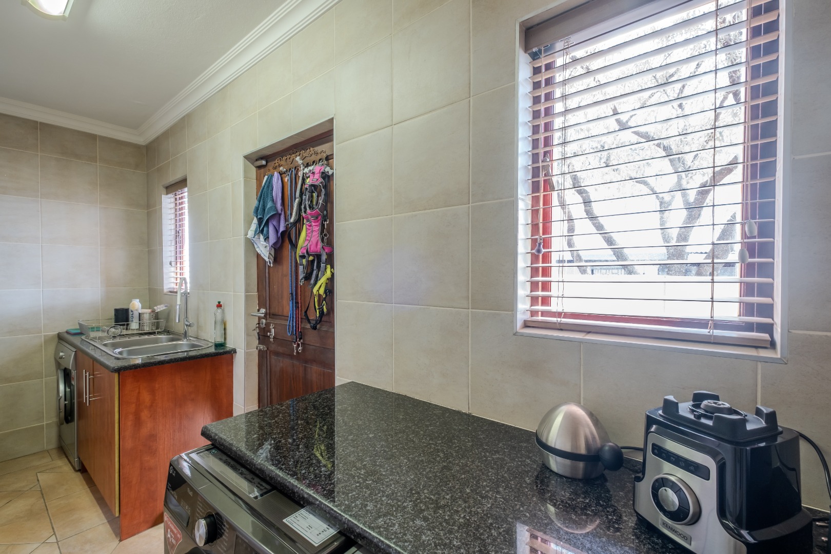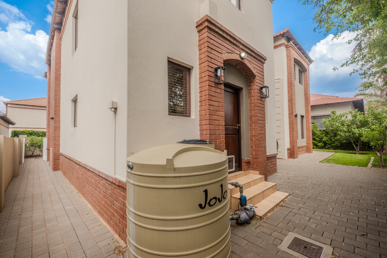 Ensuring peace of mind, the residence is situated within a security estate with 24-hour security and a security gate. Sustainability features include solar panels, a battery inverter, and water tank, contributing to reduced utility costs and enhanced self-sufficiency.