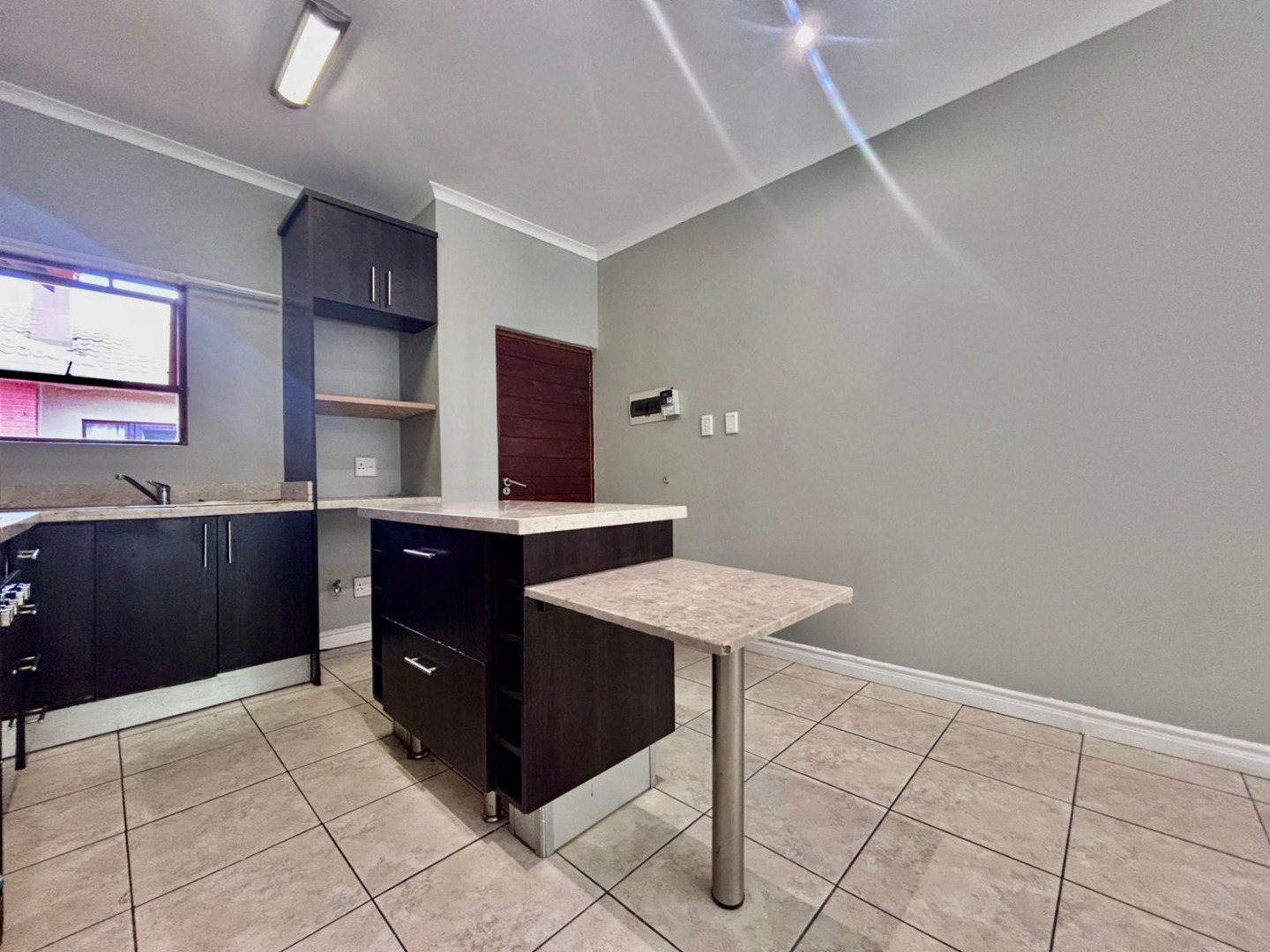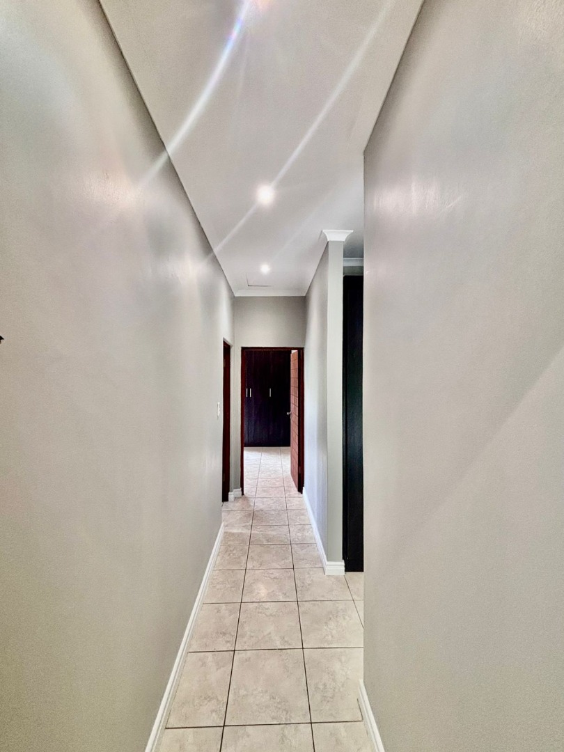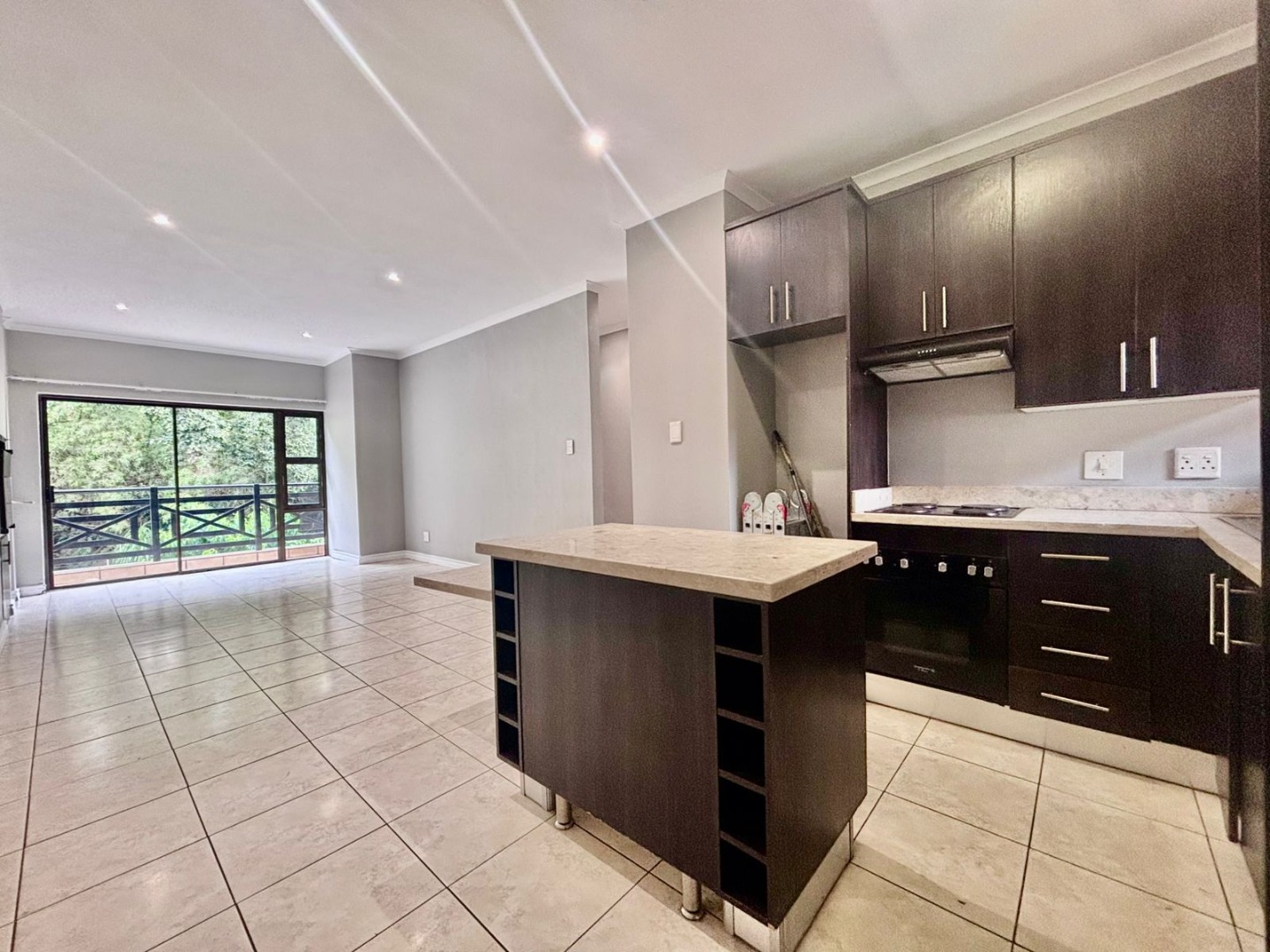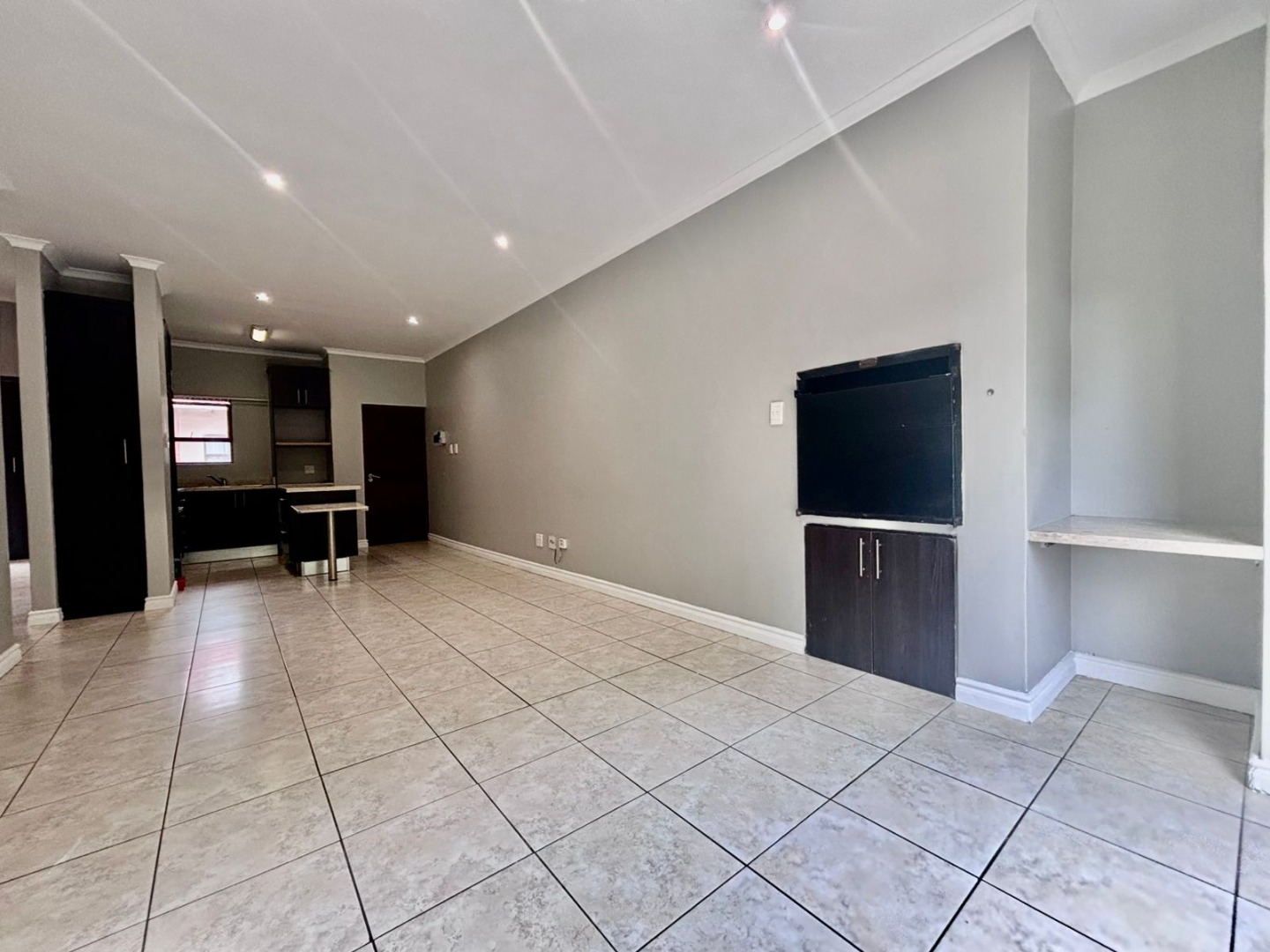 Discover modern living within a secure estate in Pretoriuspark, Pretoria. This contemporary 87 sqm apartment offers a well-designed layout, perfect for comfortable suburban living. Upon entering, you are greeted by an open-plan living and dining area, characterized by neutral grey walls, durable tiled flooring, and efficient recessed lighting. Large sliding glass doors invite ample natural light and provide seamless access to a private balcony, offering serene green views and an ideal spot for relaxation. The heart of this home is its modern kitchen, featuring sleek dark wood cabinetry, light-colored countertops, and a functional island with an extended breakfast bar. Integrated cooking appliances, including a built-in electric stove, oven, and range hood, ensure a practical and stylish culinary space. The kitchen also benefits from good overhead lighting and ample storage, including a dedicated wine rack. This apartment comprises two comfortable bedrooms and two bathrooms, with one being an en-suite, providing privacy and convenience. Each bedroom maintains the property's clean aesthetic with neutral walls, tiled flooring, and built-in wardrobes, offering practical storage solutions. The bathrooms are finished to a modern standard, complementing the overall contemporary design. Residents of this security estate benefit from a range of lifestyle amenities. Enjoy access to a communal swimming pool and a clubhouse, perfect for leisure and social gatherings. The property also features a built-in braai and a fireplace, enhancing both indoor and outdoor entertainment possibilities. With two dedicated parking spaces, convenience is assured. Security is paramount, with the estate offering 24-hour security, an access gate, and security gates, providing peace of mind. The well-maintained grounds and modern architectural style contribute to the kerb appeal of this sought-after address in Pretoriuspark, a desirable suburban area in South Africa. Key Features: * 87 sqm modern apartment * 2 Bedrooms, 2 Bathrooms (1 en-suite) * Open-plan living and dining area * Modern kitchen with island and integrated appliances * Private balcony with green views * Communal pool and clubhouse access * Built-in braai and fireplace * 2 Dedicated parking spaces * 24-hour security estate with access control