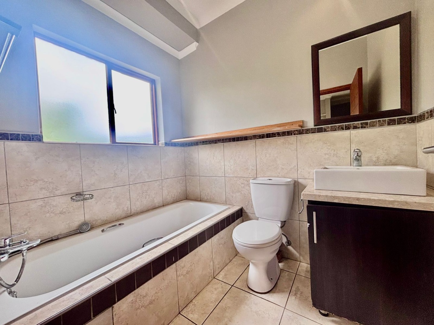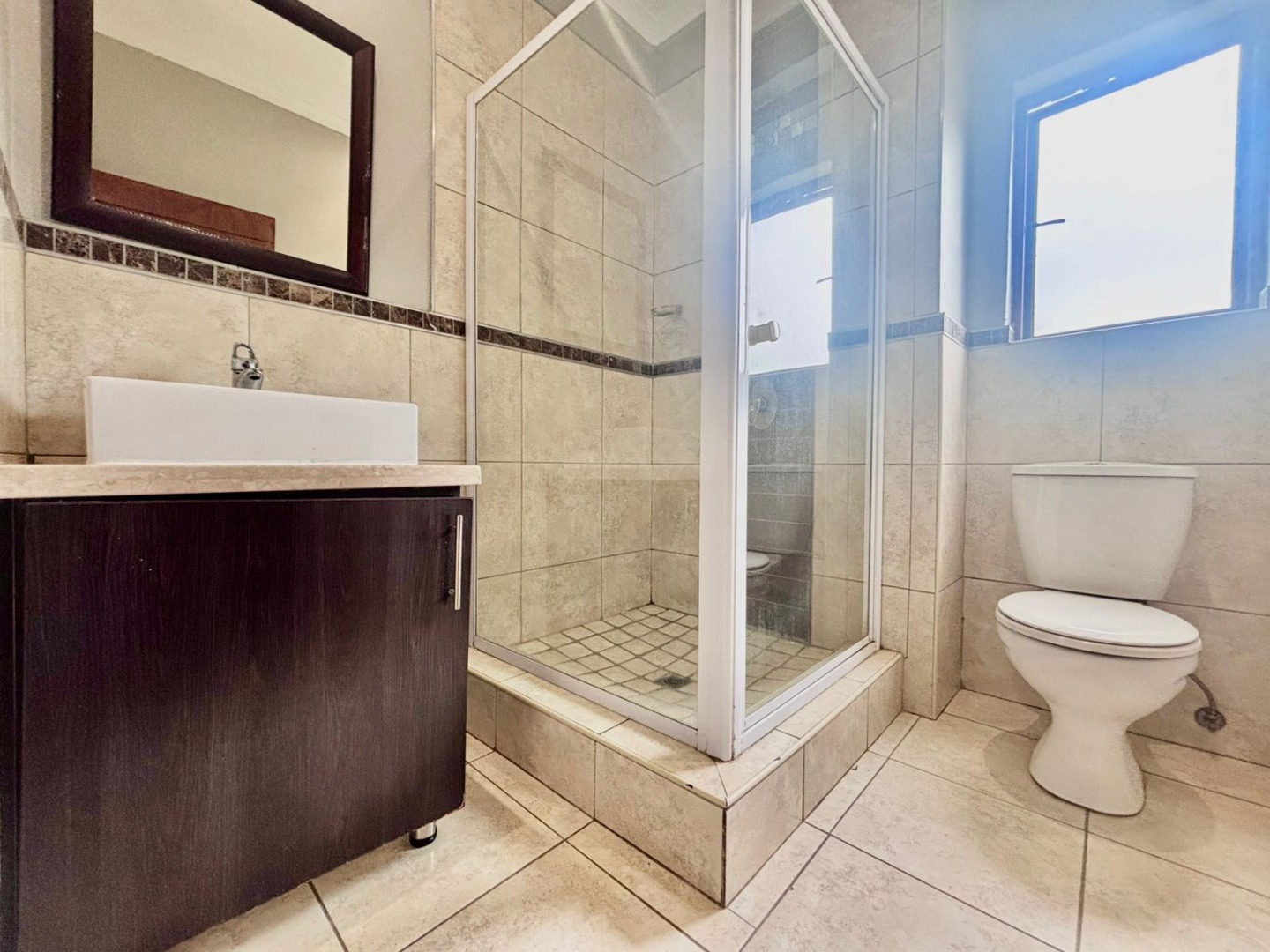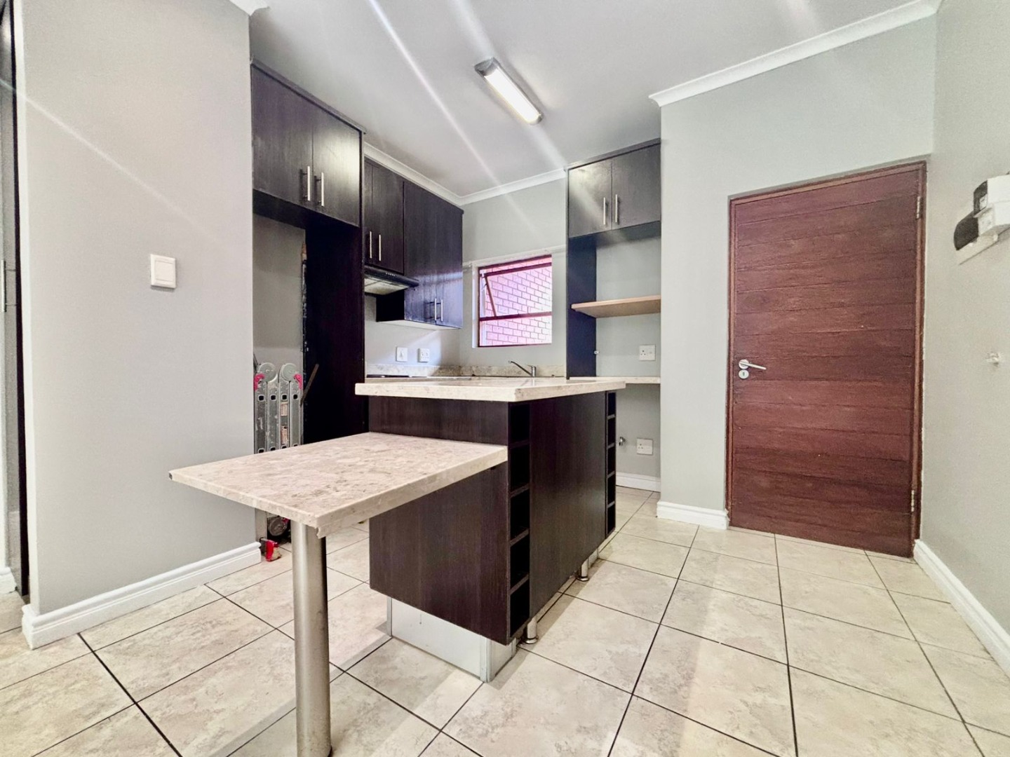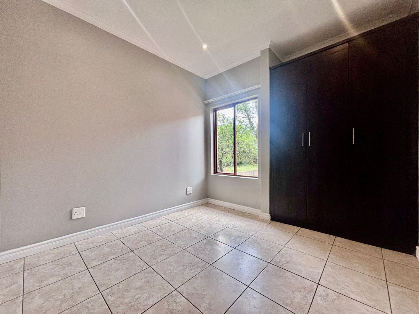 Discover modern living within a secure estate in Pretoriuspark, Pretoria. This contemporary 87 sqm apartment offers a well-designed layout, perfect for comfortable suburban living. Upon entering, you are greeted by an open-plan living and dining area, characterized by neutral grey walls, durable tiled flooring, and efficient recessed lighting. Large sliding glass doors invite ample natural light and provide seamless access to a private balcony, offering serene green views and an ideal spot for relaxation. The heart of this home is its modern kitchen, featuring sleek dark wood cabinetry, light-colored countertops, and a functional island with an extended breakfast bar. Integrated cooking appliances, including a built-in electric stove, oven, and range hood, ensure a practical and stylish culinary space. The kitchen also benefits from good overhead lighting and ample storage, including a dedicated wine rack. This apartment comprises two comfortable bedrooms and two bathrooms, with one being an en-suite, providing privacy and convenience. Each bedroom maintains the property's clean aesthetic with neutral walls, tiled flooring, and built-in wardrobes, offering practical storage solutions. The bathrooms are finished to a modern standard, complementing the overall contemporary design. Residents of this security estate benefit from a range of lifestyle amenities. Enjoy access to a communal swimming pool and a clubhouse, perfect for leisure and social gatherings. The property also features a built-in braai and a fireplace, enhancing both indoor and outdoor entertainment possibilities. With two dedicated parking spaces, convenience is assured. Security is paramount, with the estate offering 24-hour security, an access gate, and security gates, providing peace of mind. The well-maintained grounds and modern architectural style contribute to the kerb appeal of this sought-after address in Pretoriuspark, a desirable suburban area in South Africa. Key Features: * 87 sqm modern apartment * 2 Bedrooms, 2 Bathrooms (1 en-suite) * Open-plan living and dining area * Modern kitchen with island and integrated appliances * Private balcony with green views * Communal pool and clubhouse access * Built-in braai and fireplace * 2 Dedicated parking spaces * 24-hour security estate with access control