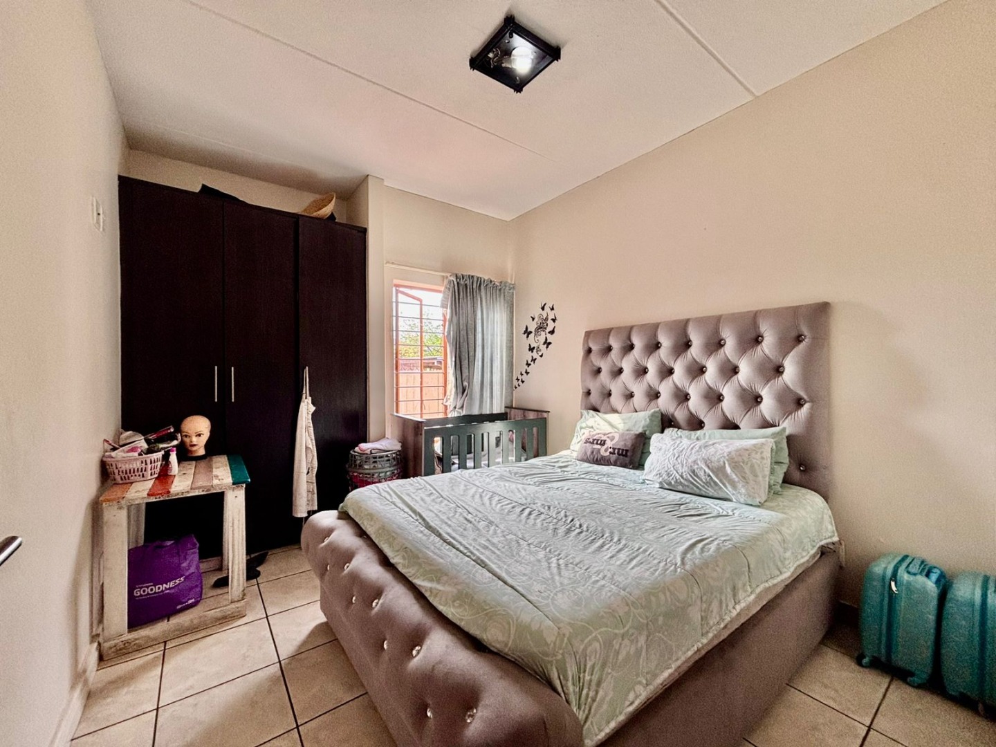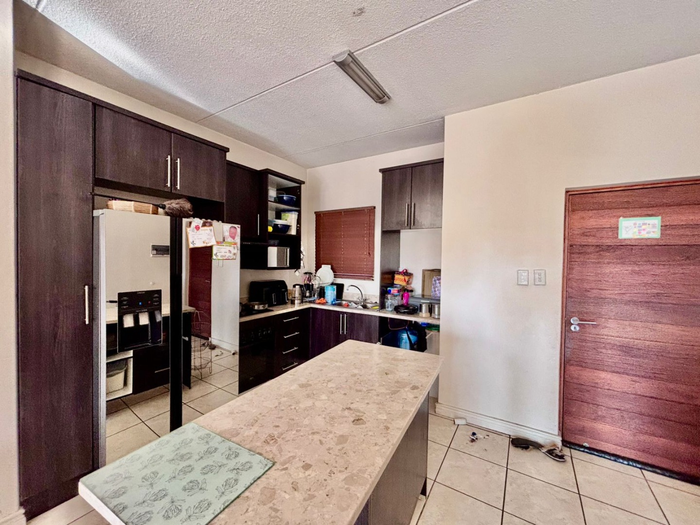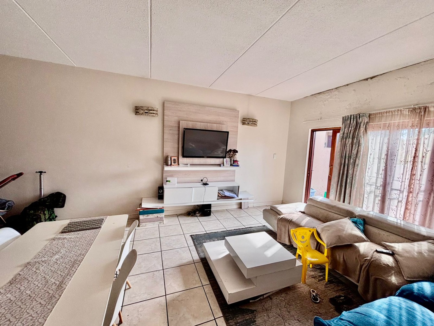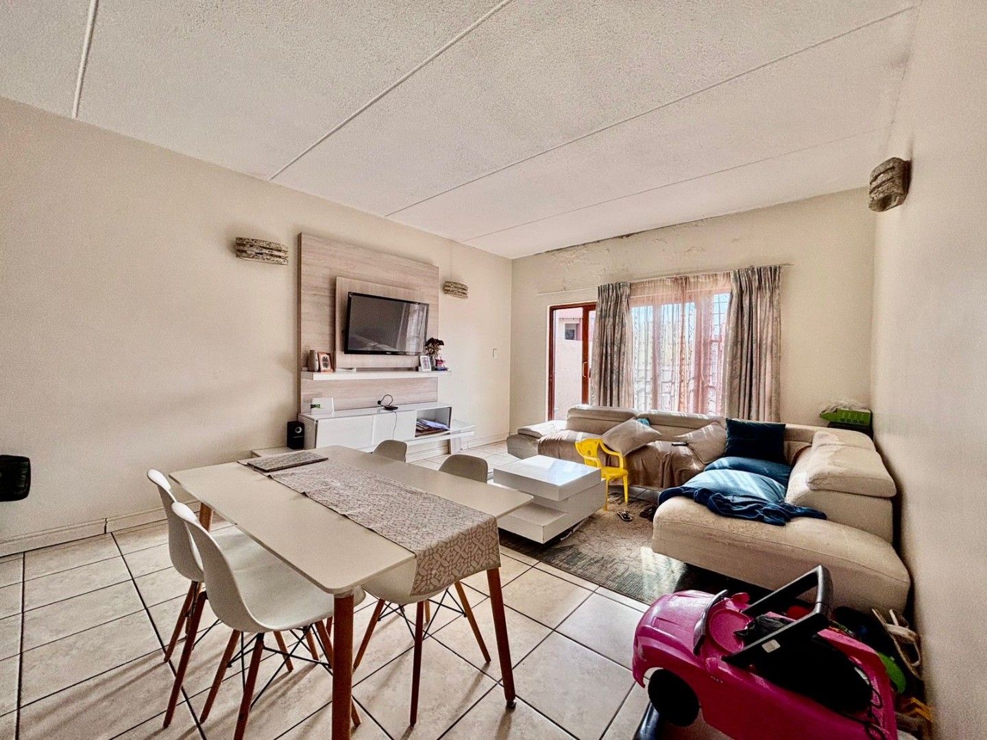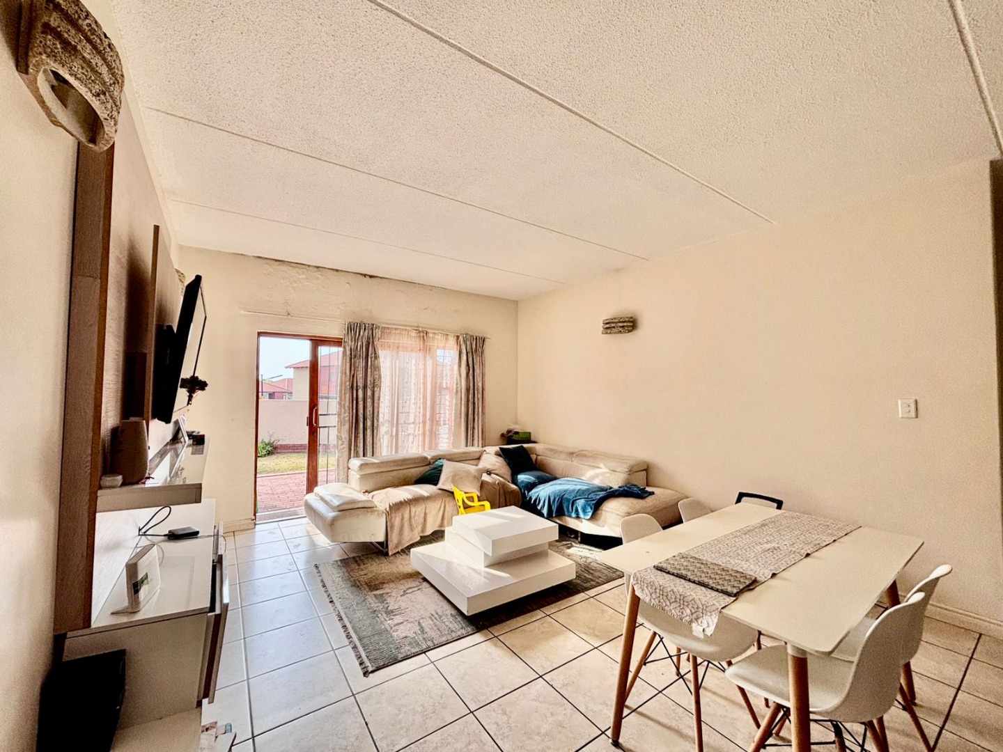 Discover this two-story townhouse, a promising residential sale opportunity nestled within a secure complex in the suburban heart of Pretoriuspark, Pretoria. This property offers a comfortable 76 sqm floor size, ideal for those seeking a functional living space with potential for personalisation. The exterior features a mix of brick and plaster, complemented by a private paved patio and a small garden area, perfect for outdoor relaxation. Step inside to an inviting open-plan layout that seamlessly connects the living, dining, and kitchen areas, all featuring durable tiled flooring. Natural light filters through, creating a bright atmosphere. The kitchen is equipped with ample dark wood cabinetry and a practical island, providing a solid foundation for culinary activities. While some areas present an opportunity for modernisation and personal touches, the core design offers a versatile canvas. The residence comprises two well-proportioned bedrooms, each fitted with tiled flooring and built-in storage, ensuring comfort and organisation. The single bathroom includes a modern floating vanity, a glass shower enclosure, and tiled finishes, though it could benefit from some attention to enhance its appeal. This home is designed for practical living, offering a secure environment. Further enhancing its appeal, the property includes two dedicated parking spaces. The security complex provides peace of mind with 24-hour security, a security post, and access gates, ensuring a safe and controlled living environment. Pretoriuspark is a well-established suburban area in Pretoria, offering convenient access to local amenities and transport routes. Key Features: * Two-story townhouse in Pretoriuspark * 76 sqm floor size * 2 Bedrooms, 1 Bathroom * Open-plan living, dining, and kitchen * Private paved patio and garden * Two dedicated parking spaces * Secure complex with 24-hour security * Tiled flooring throughout