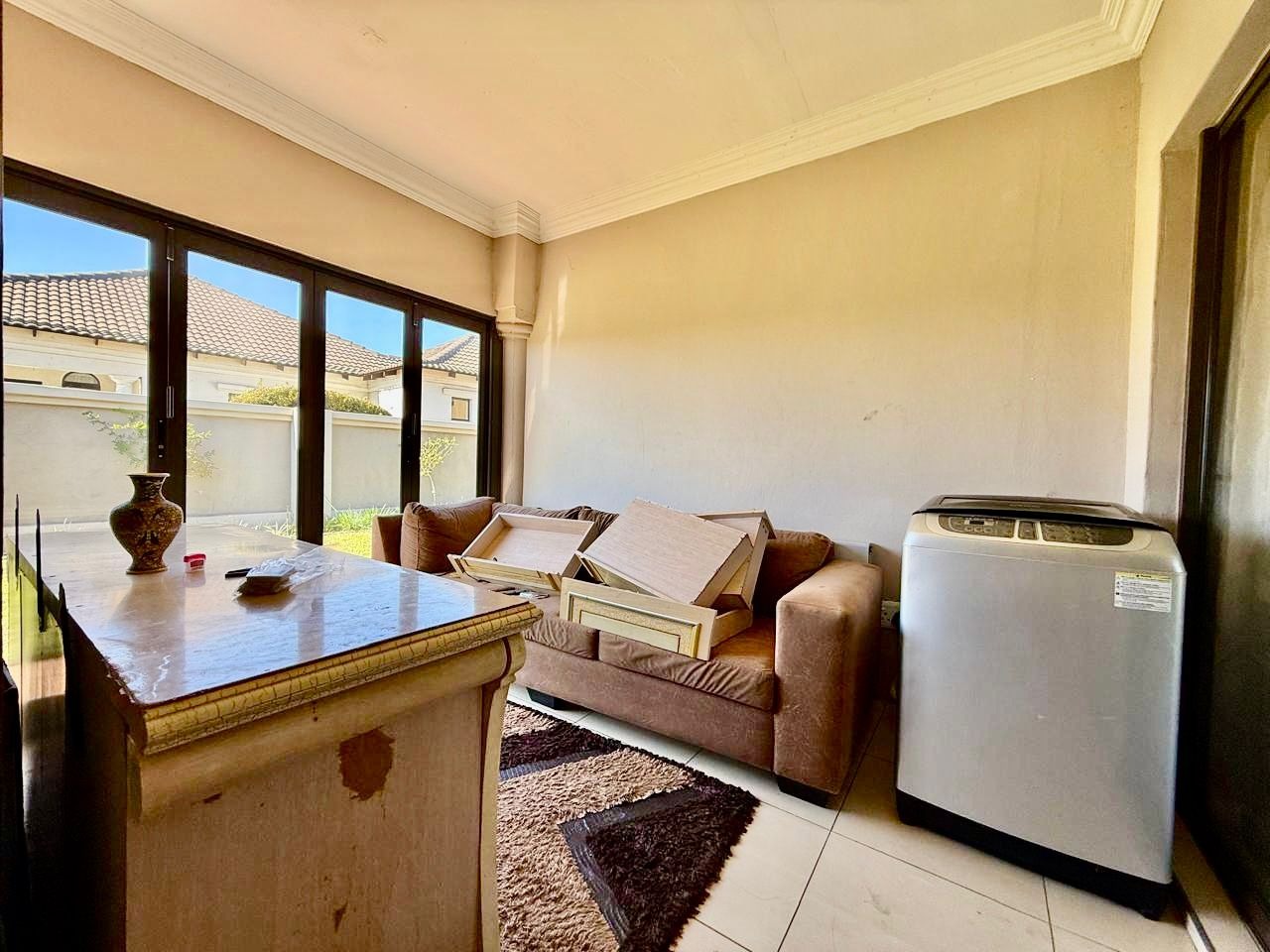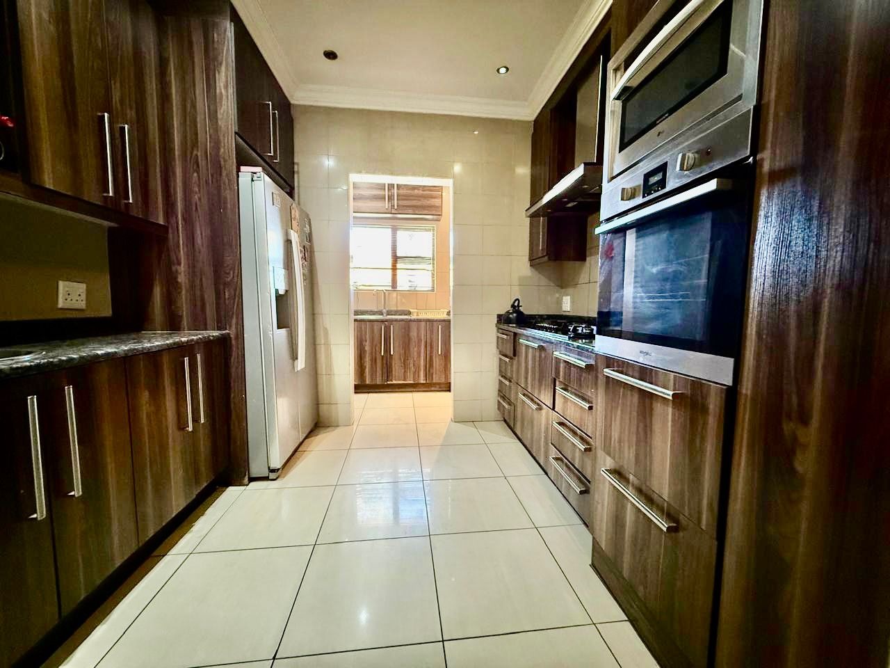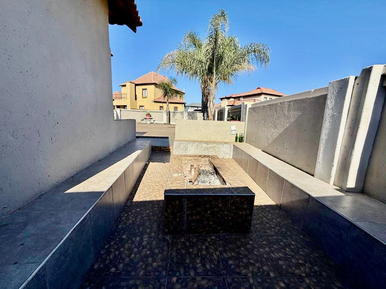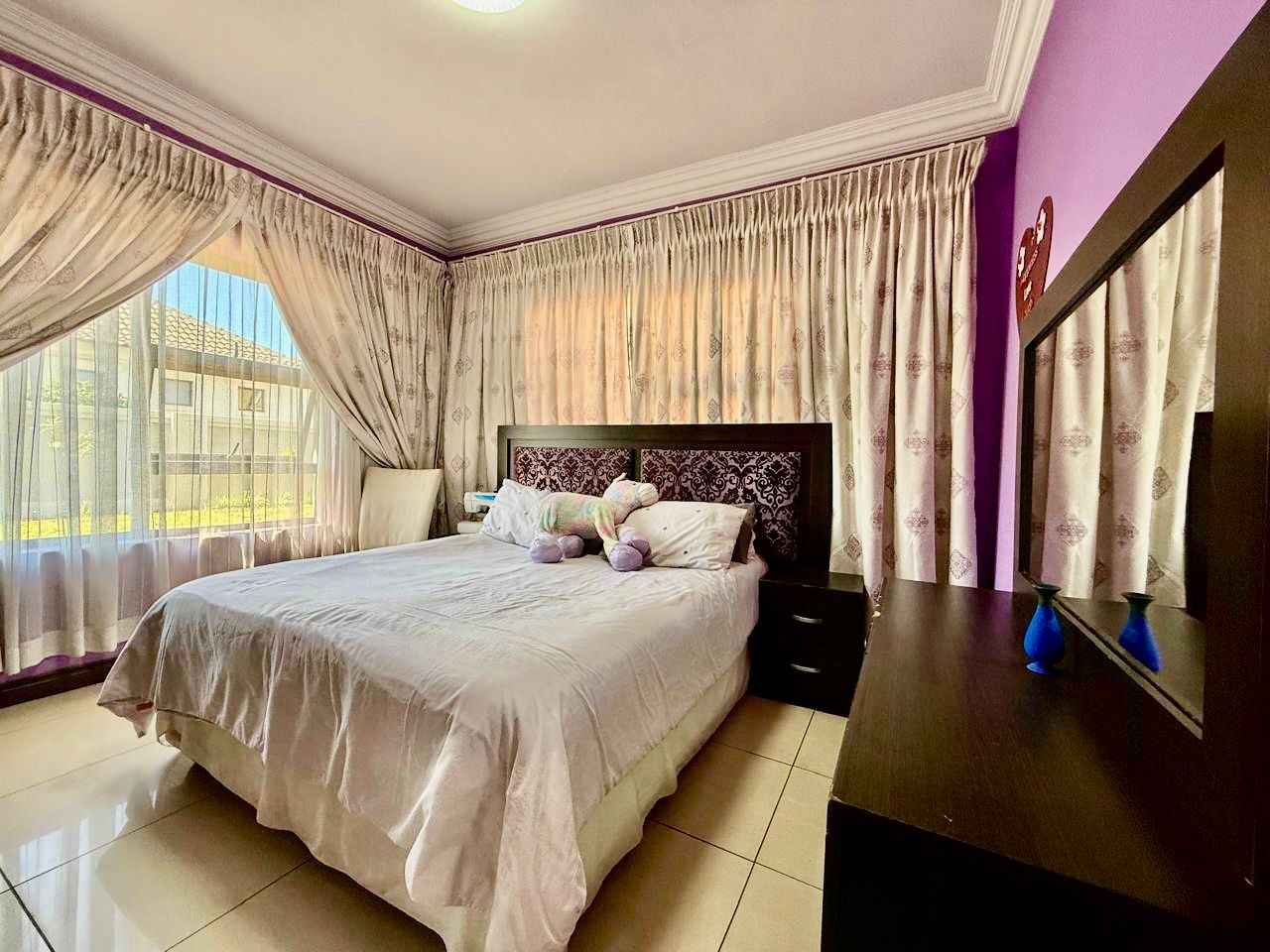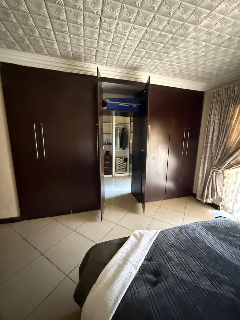This modern single-story residence in Savannah Country Estate presents an impressive façade, characterised by a Mediterranean/Tuscan-inspired design with a clay tile roof and a light stucco exterior. A well-maintained paved driveway leads to a double garage featuring contemporary wooden-look doors, complemented by a welcoming covered entrance framed by architectural columns. The minimalist front garden ensures low maintenance, contributing to the property's refined curb appeal. Upon entry, the residence unfolds into a spacious open-plan living and dining area, distinguished by decorative tray ceilings, elegant crown moulding, and sophisticated recessed lighting, creating an inviting ambiance. The living room is further enhanced by a stylish stone accent wall, providing a focal point of contemporary design. Durable tiled flooring extends throughout these communal spaces, offering both aesthetic appeal and practical maintenance. The galley-style kitchen is a testament to modern design and functionality, equipped with contemporary wood-grain cabinetry that offers extensive storage, integrated stainless steel appliances including a built-in oven and microwave, and durable granite-style countertops. Clean tiled floors and a practical layout complete this culinary space, which seamlessly connects to the adjacent dining area, facilitating effortless entertaining. The property comprises four generously proportioned bedrooms and three well-appointed bathrooms, including a private en-suite, ensuring comfort and privacy for all occupants. Each space is designed to offer a serene retreat within the home. The exterior of the property is designed for both leisure and practicality. Outdoor living is facilitated by a private patio, ideal for relaxation and entertaining, which overlooks a meticulously maintained garden and a refreshing swimming pool, perfect for warm South African days. The property also benefits from a double garage, providing secure parking for two vehicles, complemented by additional paved parking on the driveway. Practical amenities include a dedicated laundry area and convenient outside toilets, enhancing the functionality of this family home. Situated within a secure estate, residents benefit from 24-hour security and controlled access, fostering a tranquil and protected living environment. The estate also offers the advantages of country living and access to a country club, enhancing the lifestyle appeal of this Pretoria address. Savannah Country Estate, located in Pretoria, South Africa, offers an idyllic setting for discerning homeowners seeking a blend of serene country living and convenient access to urban amenities. This esteemed security estate provides a secure and family-friendly environment. Key Features: * Four Bedrooms, Three Bathrooms (One En-suite) * Spacious Open-Plan Living and Dining Areas * Modern Galley Kitchen with Integrated Appliances * Double Garage and Paved Driveway * Private Patio, Garden, and Swimming Pool * Laundry Facilities and Outside Toilets * Located within a Secure Estate with 24-Hour Security * Access to Country Club Amenities