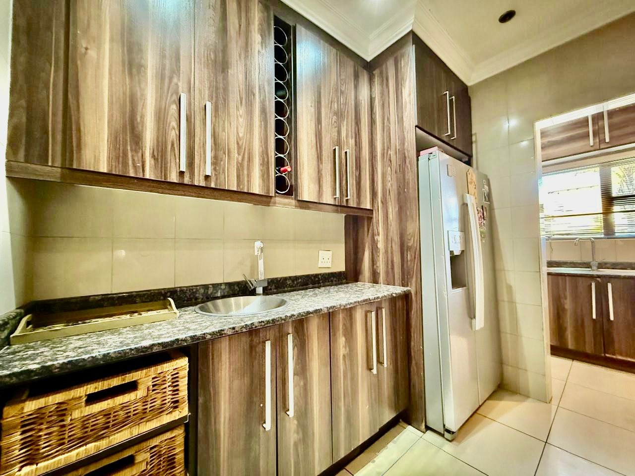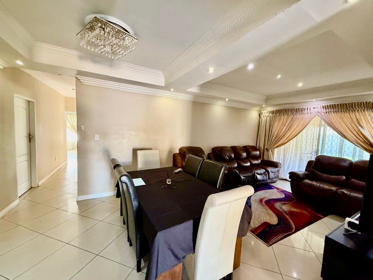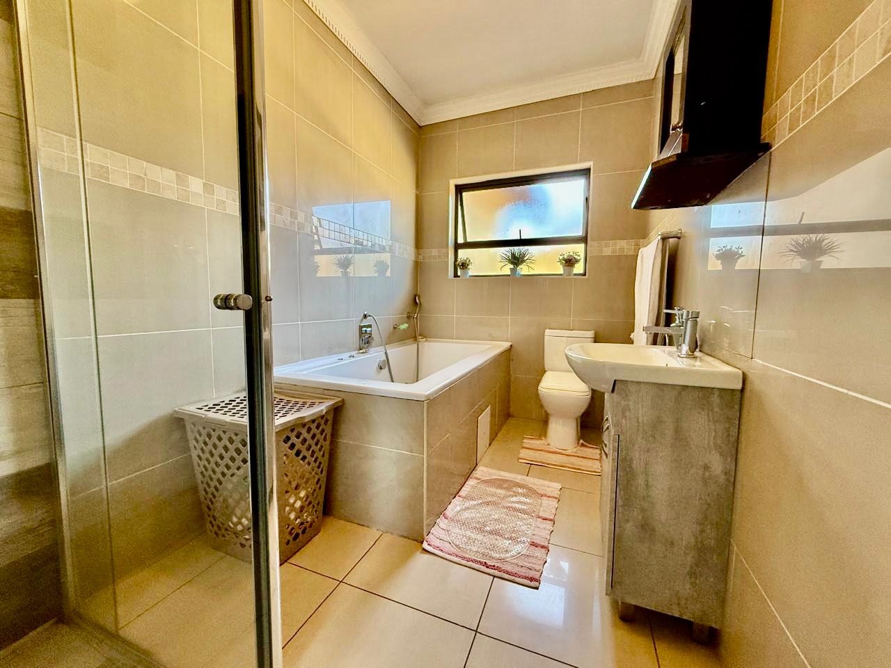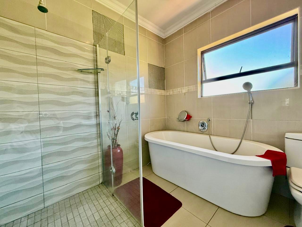 This modern single-story residence in Savannah Country Estate presents an impressive façade, characterised by a Mediterranean/Tuscan-inspired design with a clay tile roof and a light stucco exterior. A well-maintained paved driveway leads to a double garage featuring contemporary wooden-look doors, complemented by a welcoming covered entrance framed by architectural columns. The minimalist front garden ensures low maintenance, contributing to the property's refined curb appeal. Upon entry, the residence unfolds into a spacious open-plan living and dining area, distinguished by decorative tray ceilings, elegant crown moulding, and sophisticated recessed lighting, creating an inviting ambiance. The living room is further enhanced by a stylish stone accent wall, providing a focal point of contemporary design. Durable tiled flooring extends throughout these communal spaces, offering both aesthetic appeal and practical maintenance. The galley-style kitchen is a testament to modern design and functionality, equipped with contemporary wood-grain cabinetry that offers extensive storage, integrated stainless steel appliances including a built-in oven and microwave, and durable granite-style countertops. Clean tiled floors and a practical layout complete this culinary space, which seamlessly connects to the adjacent dining area, facilitating effortless entertaining. The property comprises four generously proportioned bedrooms and three well-appointed bathrooms, including a private en-suite, ensuring comfort and privacy for all occupants. Each space is designed to offer a serene retreat within the home. The exterior of the property is designed for both leisure and practicality. Outdoor living is facilitated by a private patio, ideal for relaxation and entertaining, which overlooks a meticulously maintained garden and a refreshing swimming pool, perfect for warm South African days. The property also benefits from a double garage, providing secure parking for two vehicles, complemented by additional paved parking on the driveway. Practical amenities include a dedicated laundry area and convenient outside toilets, enhancing the functionality of this family home. Situated within a secure estate, residents benefit from 24-hour security and controlled access, fostering a tranquil and protected living environment. The estate also offers the advantages of country living and access to a country club, enhancing the lifestyle appeal of this Pretoria address. Savannah Country Estate, located in Pretoria, South Africa, offers an idyllic setting for discerning homeowners seeking a blend of serene country living and convenient access to urban amenities. This esteemed security estate provides a secure and family-friendly environment. Key Features: * Four Bedrooms, Three Bathrooms (One En-suite) * Spacious Open-Plan Living and Dining Areas * Modern Galley Kitchen with Integrated Appliances * Double Garage and Paved Driveway * Private Patio, Garden, and Swimming Pool * Laundry Facilities and Outside Toilets * Located within a Secure Estate with 24-Hour Security * Access to Country Club Amenities
