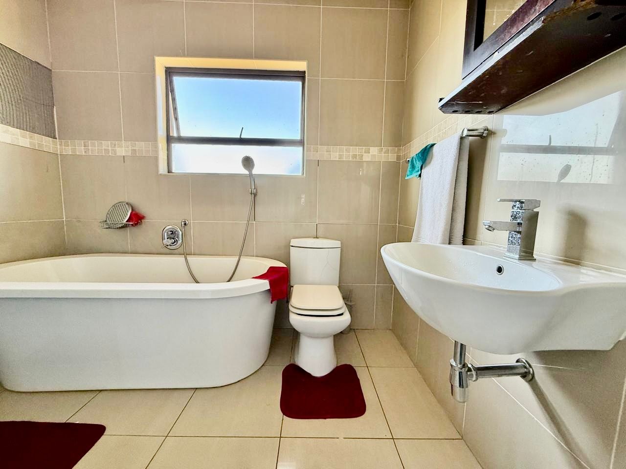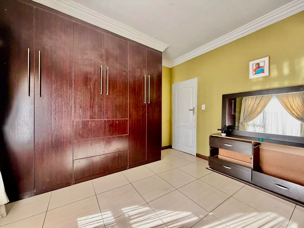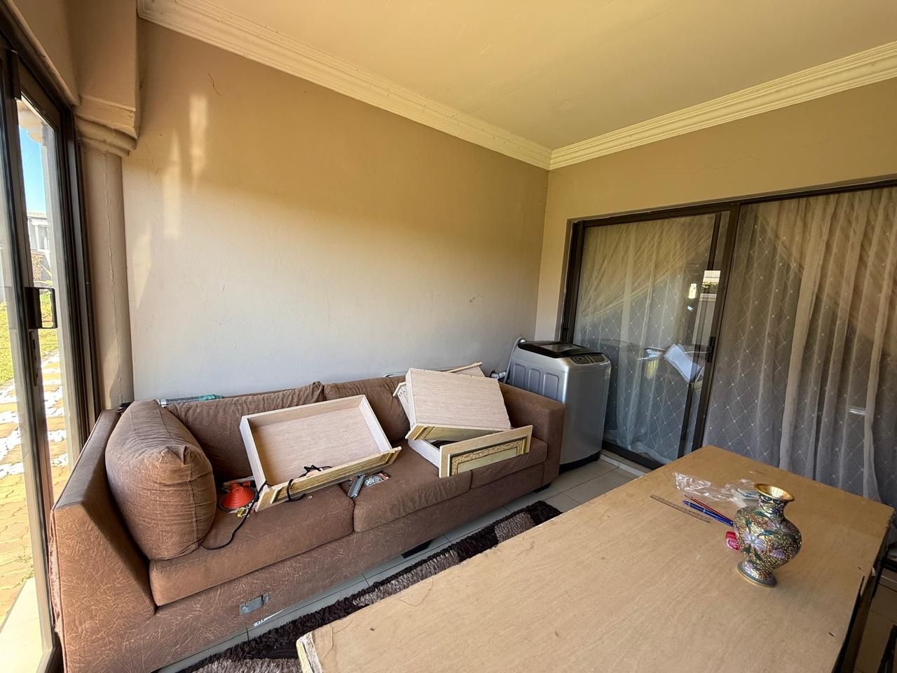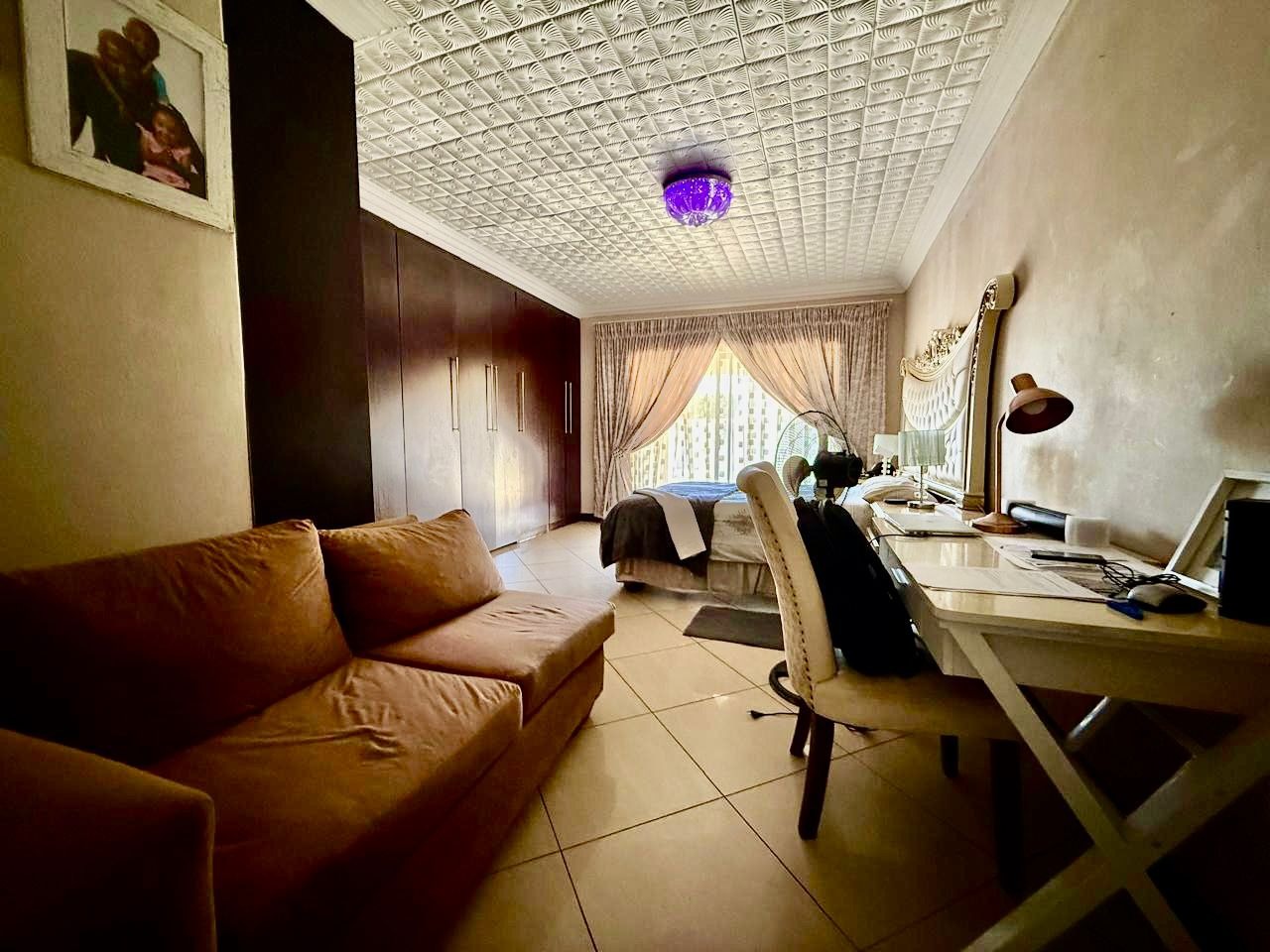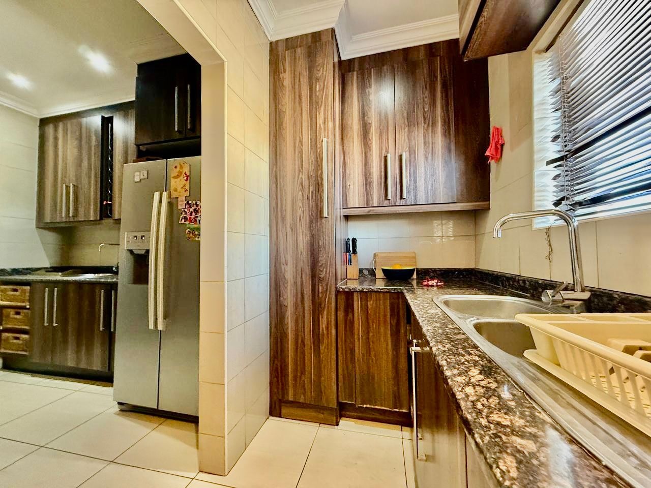 This modern single-story residence in Savannah Country Estate presents an impressive façade, characterised by a Mediterranean/Tuscan-inspired design with a clay tile roof and a light stucco exterior. A well-maintained paved driveway leads to a double garage featuring contemporary wooden-look doors, complemented by a welcoming covered entrance framed by architectural columns. The minimalist front garden ensures low maintenance, contributing to the property's refined curb appeal. Upon entry, the residence unfolds into a spacious open-plan living and dining area, distinguished by decorative tray ceilings, elegant crown moulding, and sophisticated recessed lighting, creating an inviting ambiance. The living room is further enhanced by a stylish stone accent wall, providing a focal point of contemporary design. Durable tiled flooring extends throughout these communal spaces, offering both aesthetic appeal and practical maintenance. The galley-style kitchen is a testament to modern design and functionality, equipped with contemporary wood-grain cabinetry that offers extensive storage, integrated stainless steel appliances including a built-in oven and microwave, and durable granite-style countertops. Clean tiled floors and a practical layout complete this culinary space, which seamlessly connects to the adjacent dining area, facilitating effortless entertaining. The property comprises four generously proportioned bedrooms and three well-appointed bathrooms, including a private en-suite, ensuring comfort and privacy for all occupants. Each space is designed to offer a serene retreat within the home. The exterior of the property is designed for both leisure and practicality. Outdoor living is facilitated by a private patio, ideal for relaxation and entertaining, which overlooks a meticulously maintained garden and a refreshing swimming pool, perfect for warm South African days. The property also benefits from a double garage, providing secure parking for two vehicles, complemented by additional paved parking on the driveway. Practical amenities include a dedicated laundry area and convenient outside toilets, enhancing the functionality of this family home. Situated within a secure estate, residents benefit from 24-hour security and controlled access, fostering a tranquil and protected living environment. The estate also offers the advantages of country living and access to a country club, enhancing the lifestyle appeal of this Pretoria address. Savannah Country Estate, located in Pretoria, South Africa, offers an idyllic setting for discerning homeowners seeking a blend of serene country living and convenient access to urban amenities. This esteemed security estate provides a secure and family-friendly environment. Key Features: * Four Bedrooms, Three Bathrooms (One En-suite) * Spacious Open-Plan Living and Dining Areas * Modern Galley Kitchen with Integrated Appliances * Double Garage and Paved Driveway * Private Patio, Garden, and Swimming Pool * Laundry Facilities and Outside Toilets * Located within a Secure Estate with 24-Hour Security * Access to Country Club Amenities