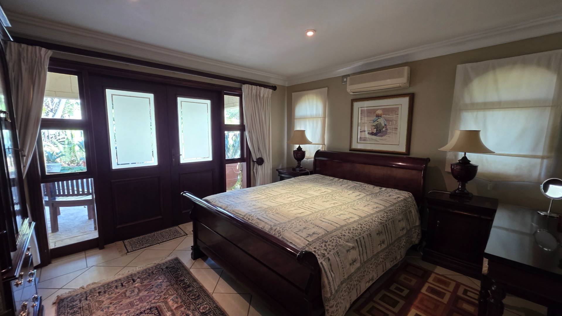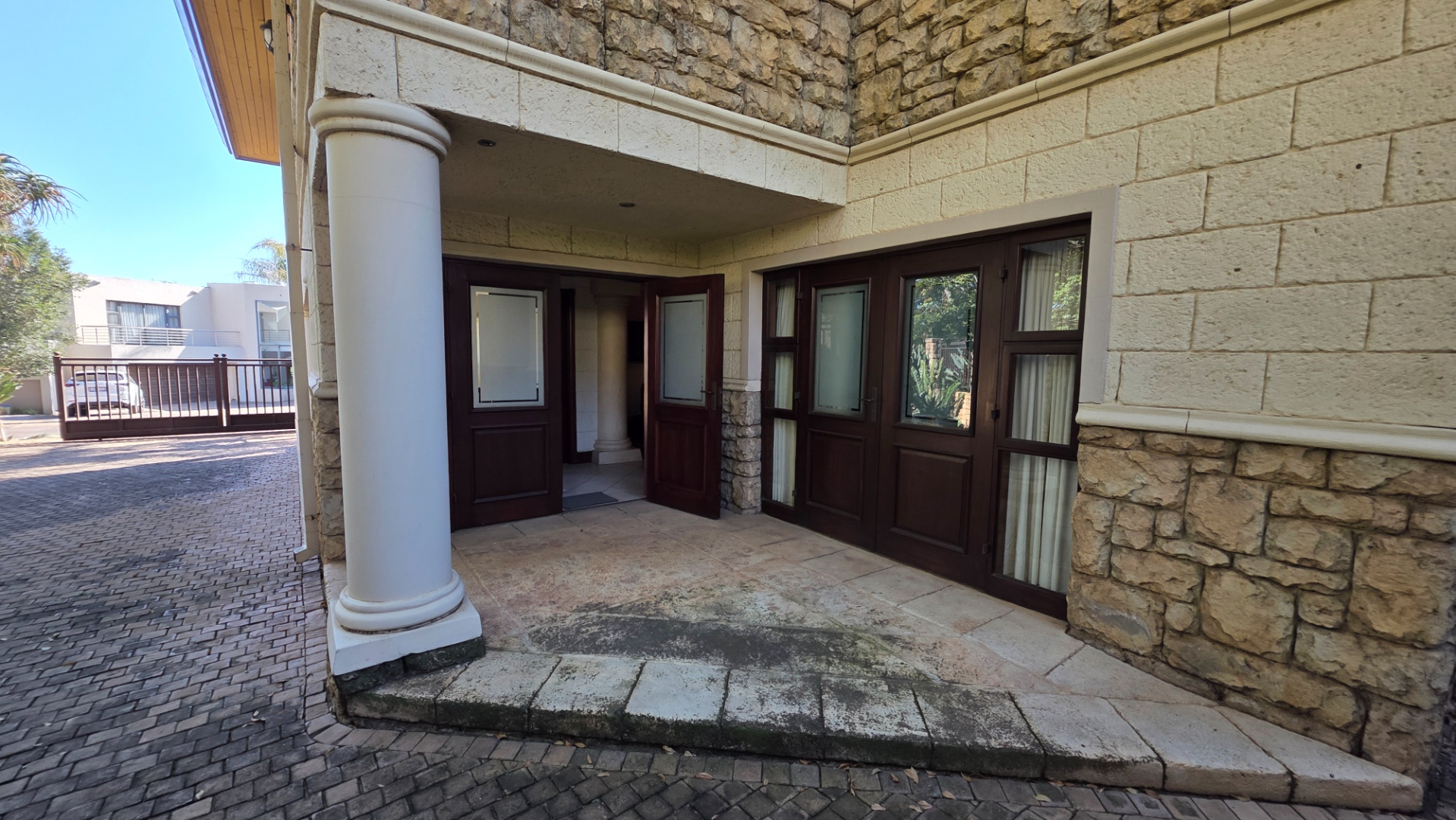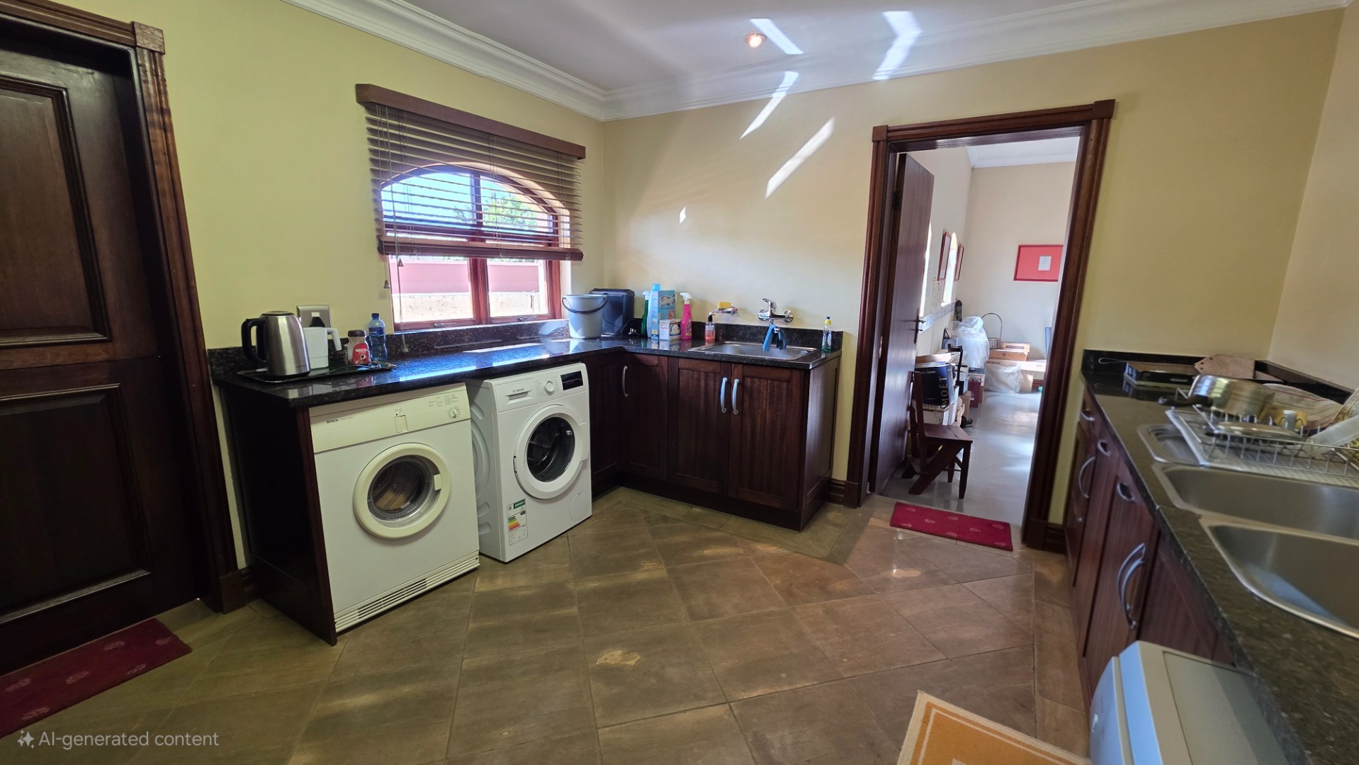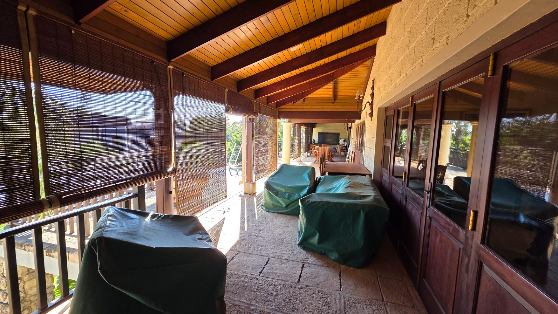 Indulge in the epitome of sophistication with immaculate finishes throughout, including elegant sandstone floors and a custom-designed mahogany kitchen featuring granite countertops, an Ilve double oven, and a gas stove. Boasting five large, flowing reception areas, this home provides ample space for relaxation and entertaining. A separate scullery, laundry/ironing room, and large pantry ensure practical convenience.