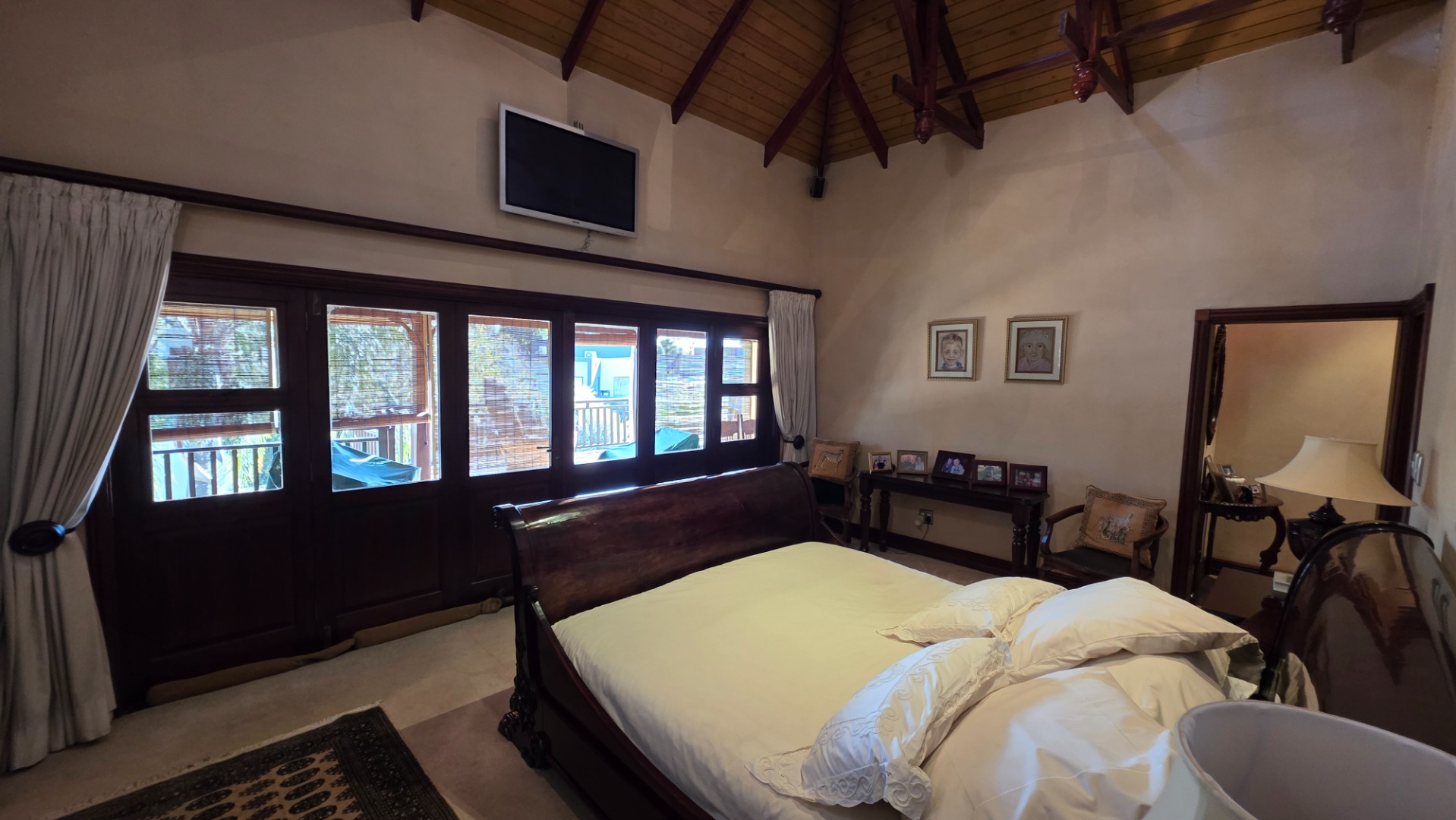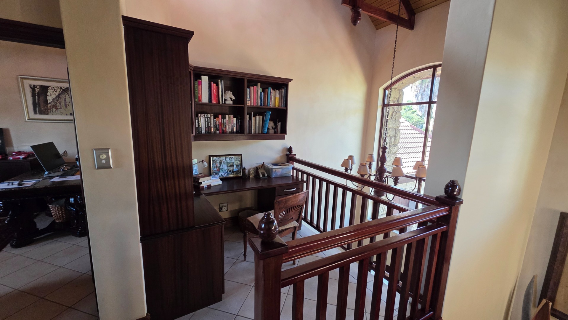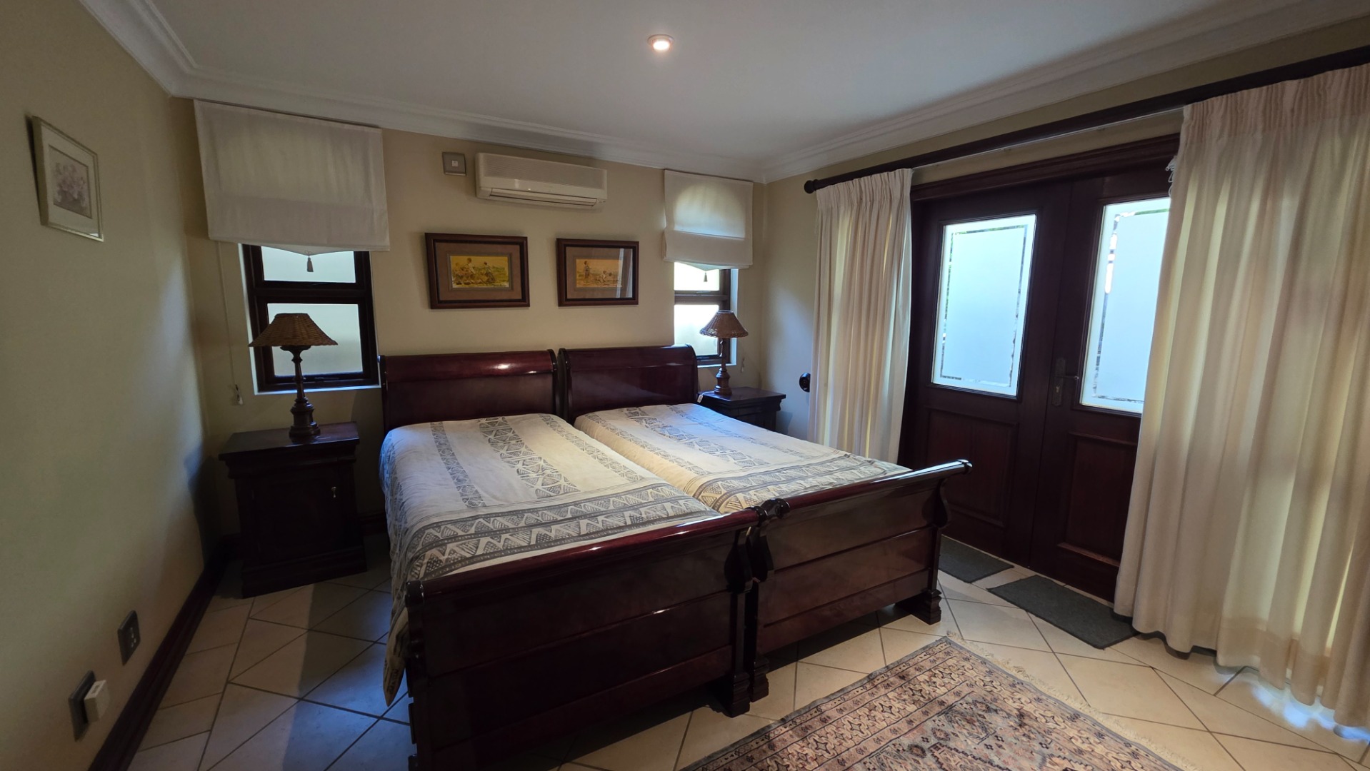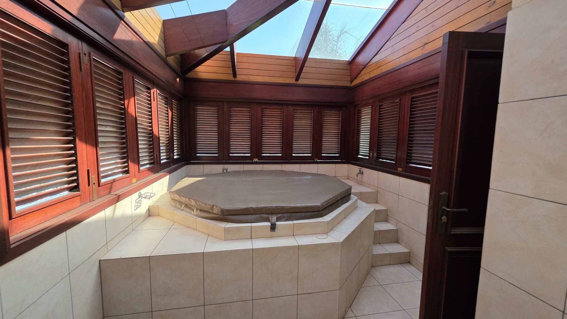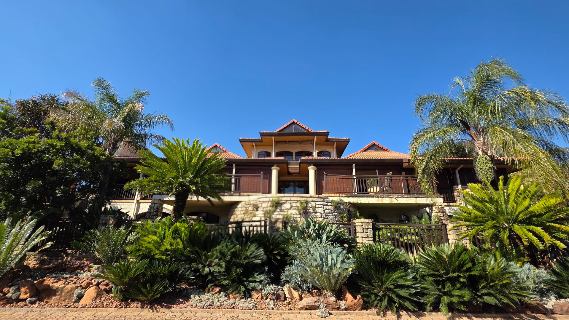 Indulge in the epitome of sophistication with immaculate finishes throughout, including elegant sandstone floors and a custom-designed mahogany kitchen featuring granite countertops, an Ilve double oven, and a gas stove. Boasting five large, flowing reception areas, this home provides ample space for relaxation and entertaining. A separate scullery, laundry/ironing room, and large pantry ensure practical convenience.