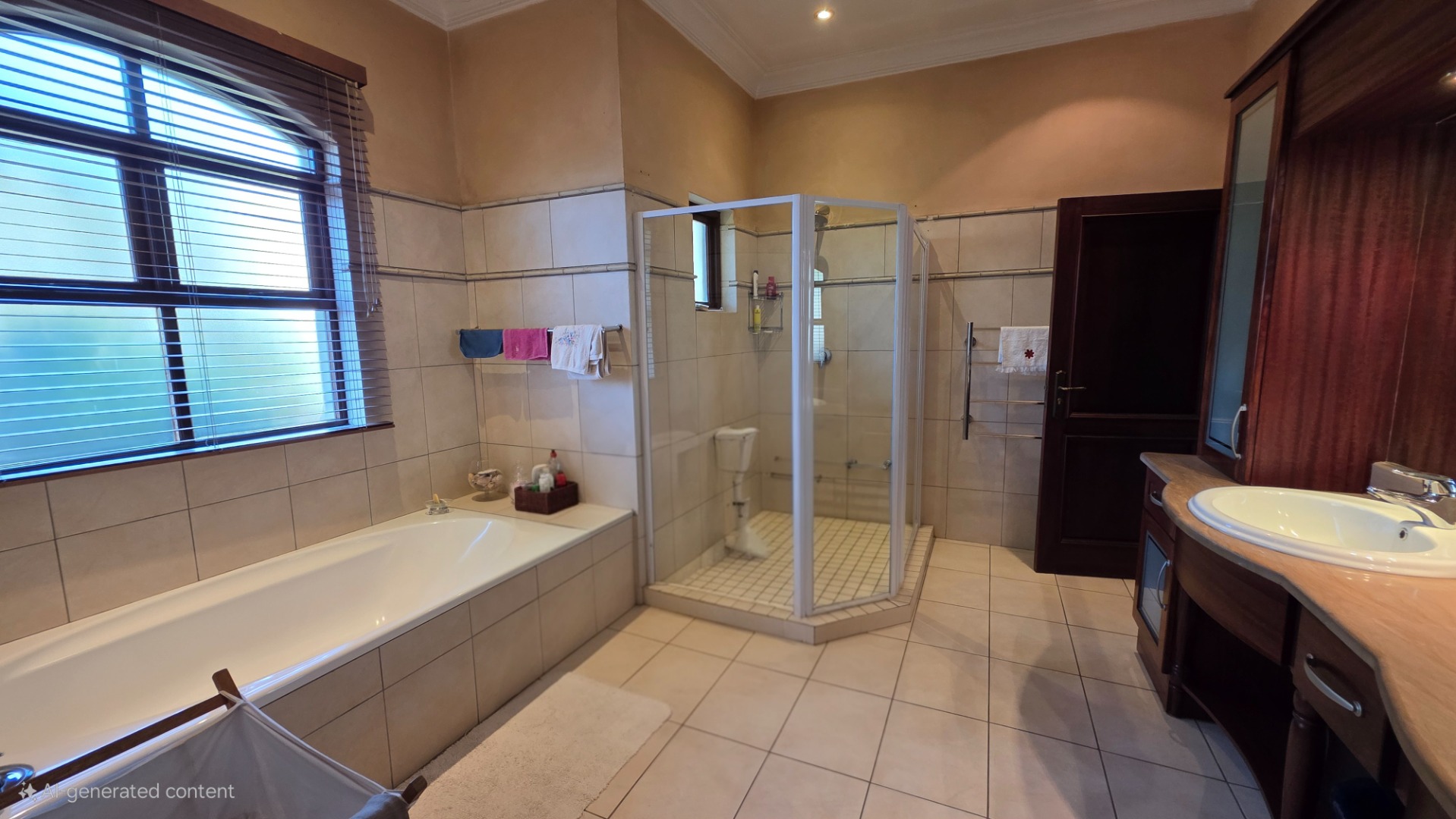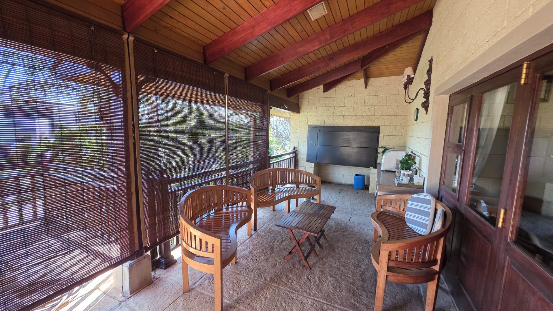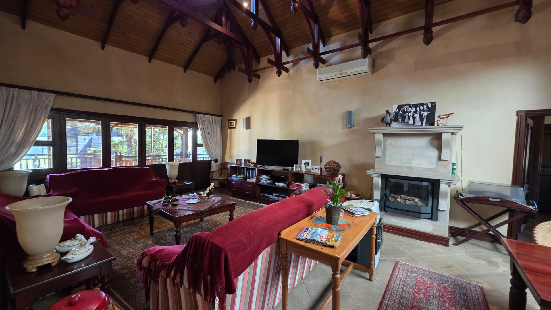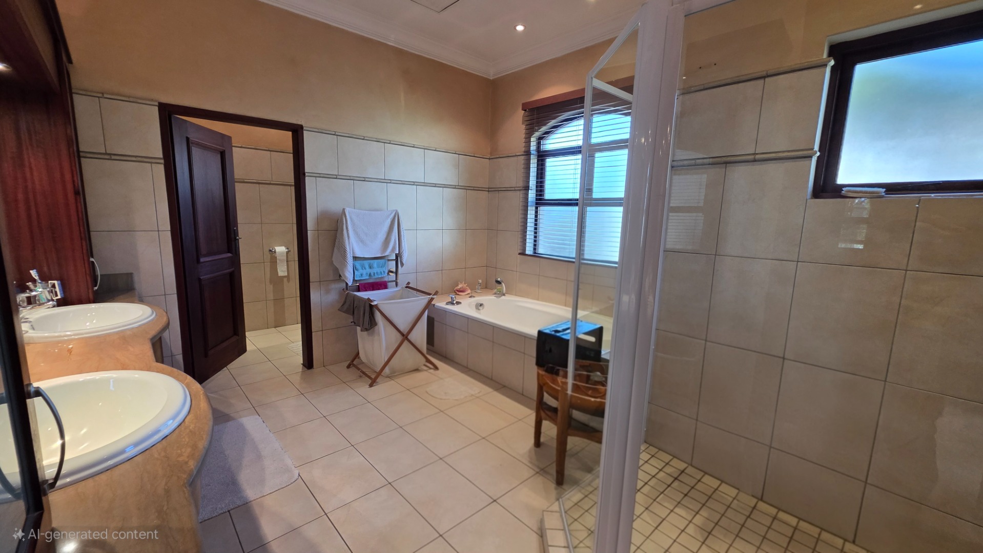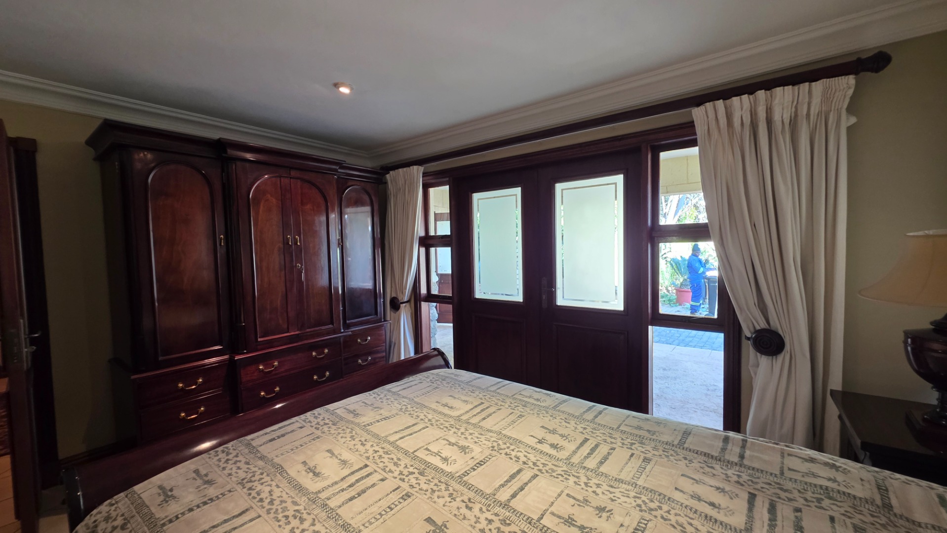 Indulge in the epitome of sophistication with immaculate finishes throughout, including elegant sandstone floors and a custom-designed mahogany kitchen featuring granite countertops, an Ilve double oven, and a gas stove. Boasting five large, flowing reception areas, this home provides ample space for relaxation and entertaining. A separate scullery, laundry/ironing room, and large pantry ensure practical convenience.