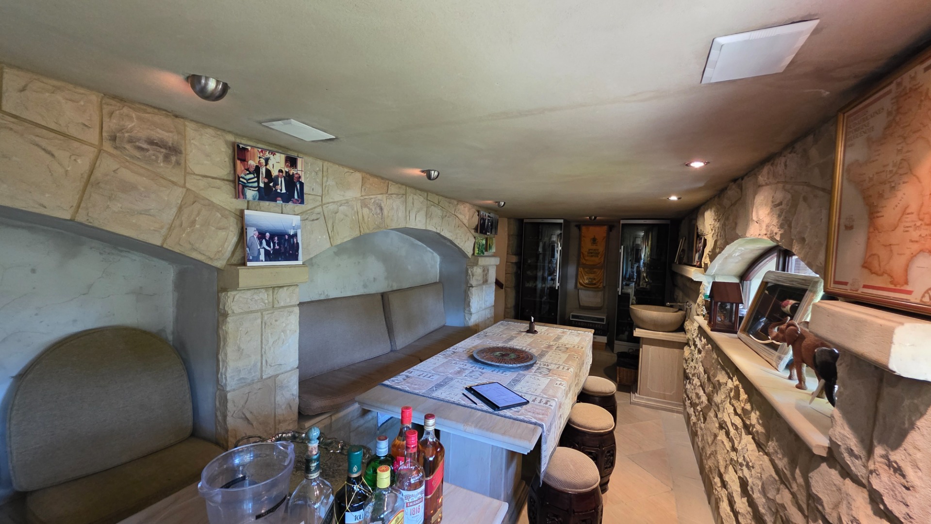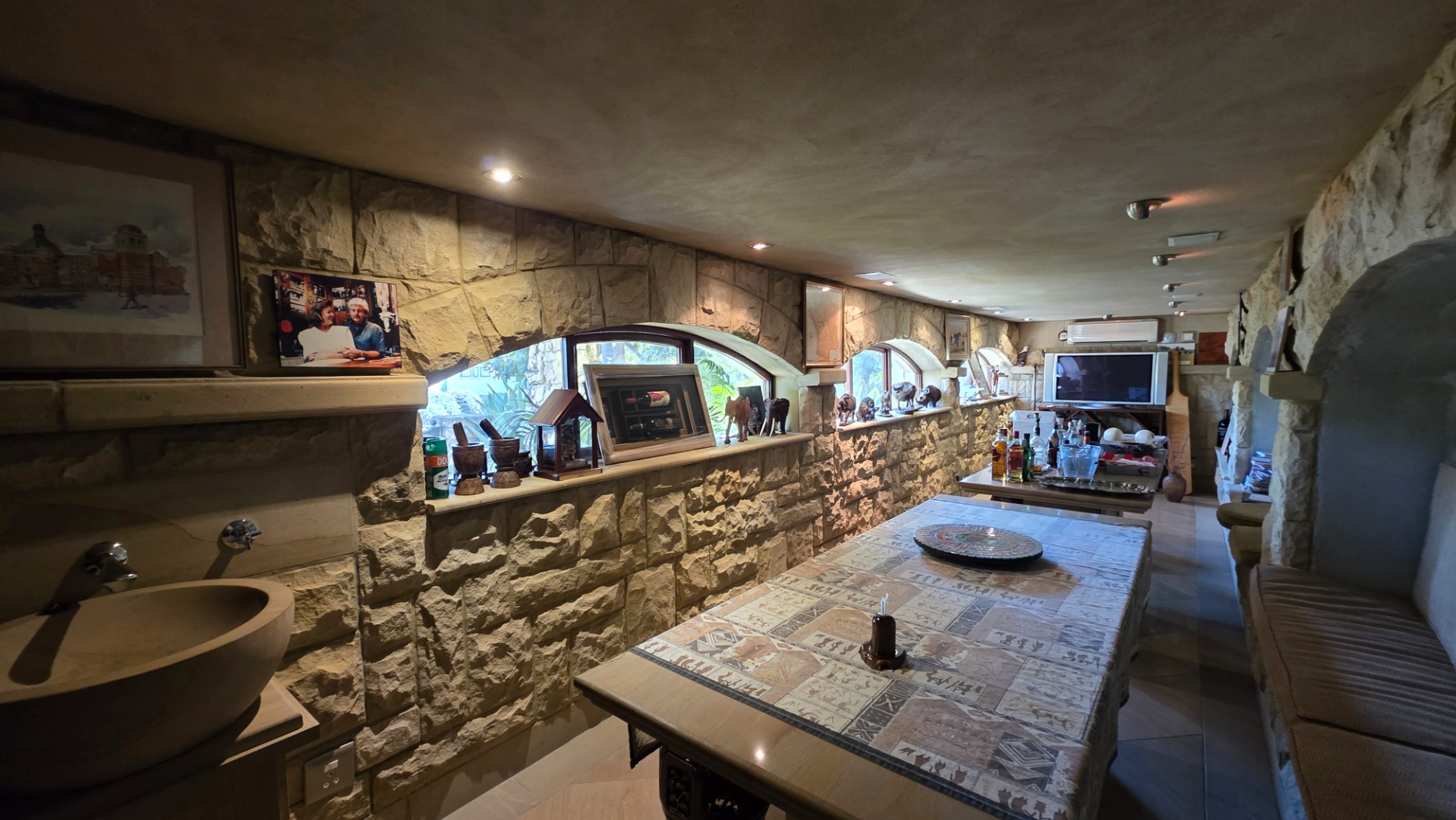 Experience captivating panoramic views while enjoying sundowners on the expansive veranda, which features a sun-splashed infinity pool, private Jacuzzi, and sauna – perfect for the entertainer at heart. For the serious wine connoisseur, a separate, air-conditioned wine cellar awaits, complete with sandstone walls, floors, built-in tables, and wine fridges.