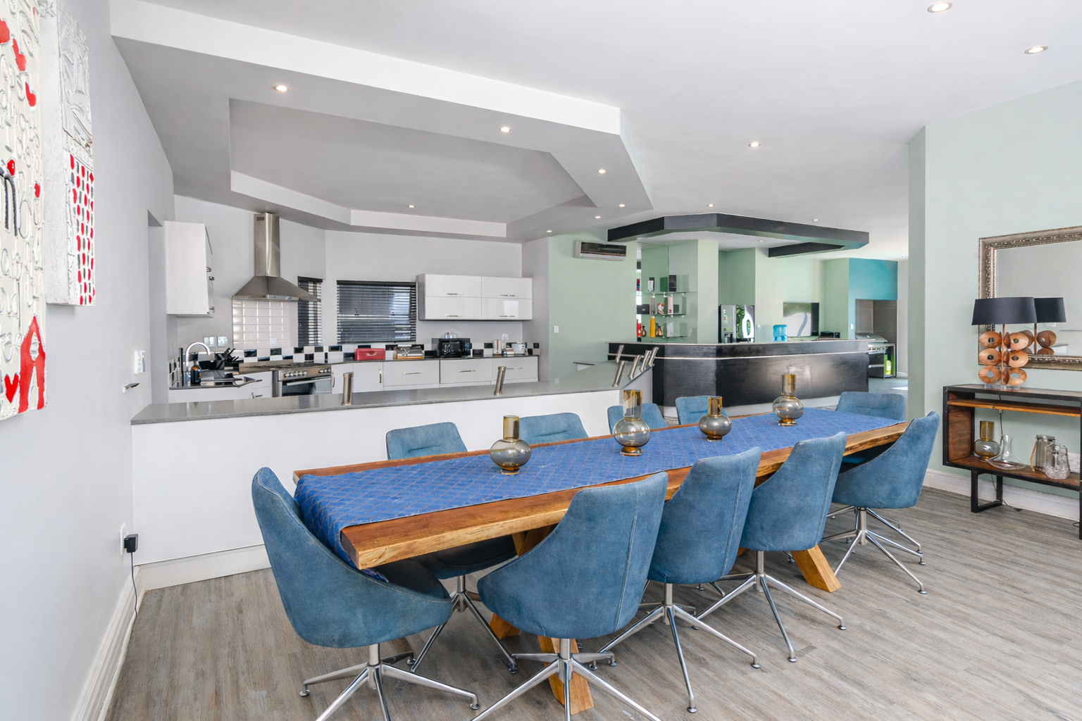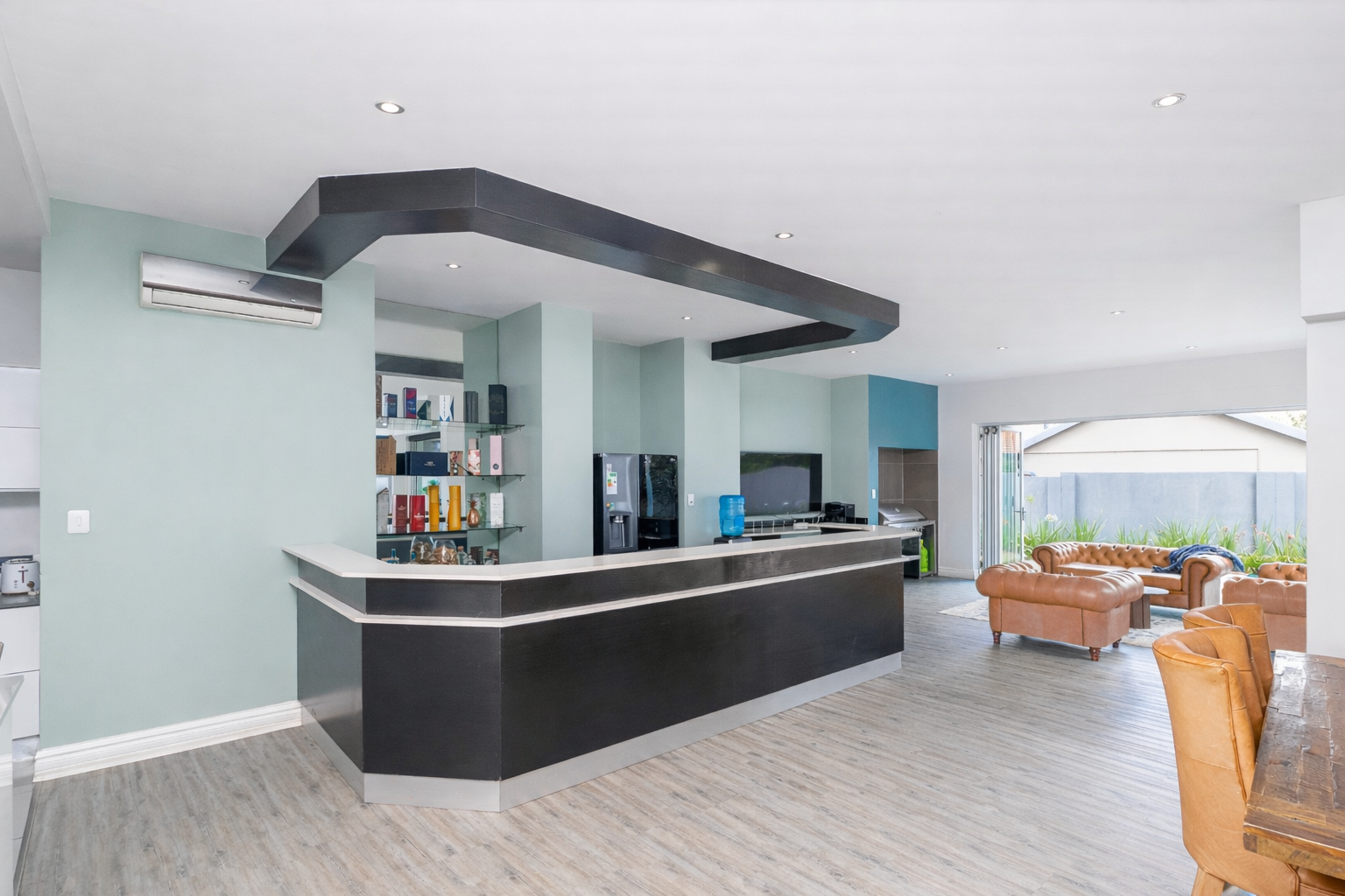 At the heart of the home lies a gourmet chef’s kitchen, complete with a walk-in pantry, spacious scullery, and a stylish built-in bar — perfectly positioned to host everything from relaxed family dinners to large-scale gatherings.