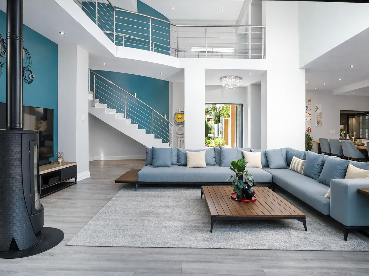 A striking double-volume entrance welcomes you into a world of light-filled interiors and expansive open-plan living spaces, where seamless indoor-outdoor flow and timeless finishes create an atmosphere of understated sophistication.