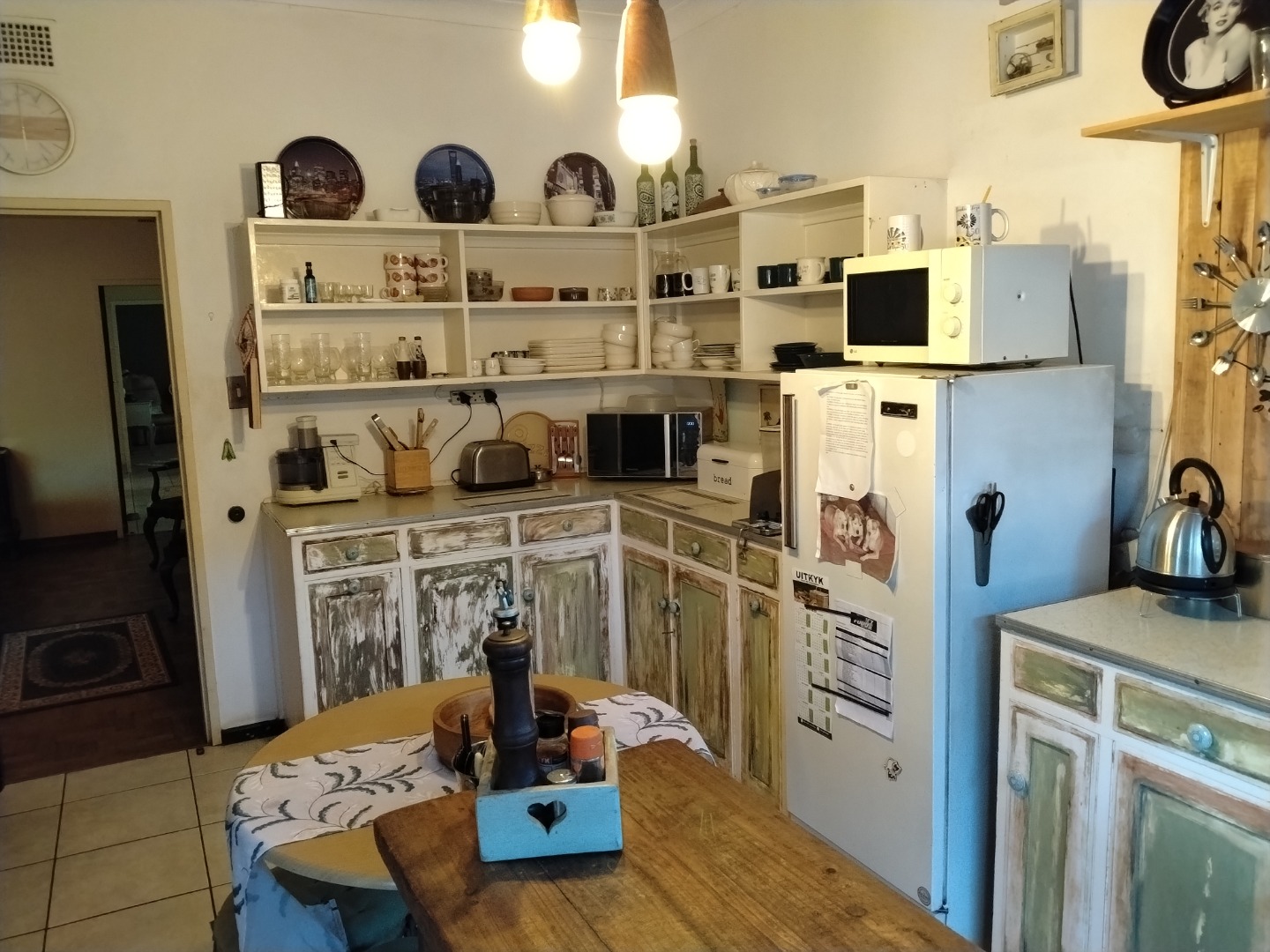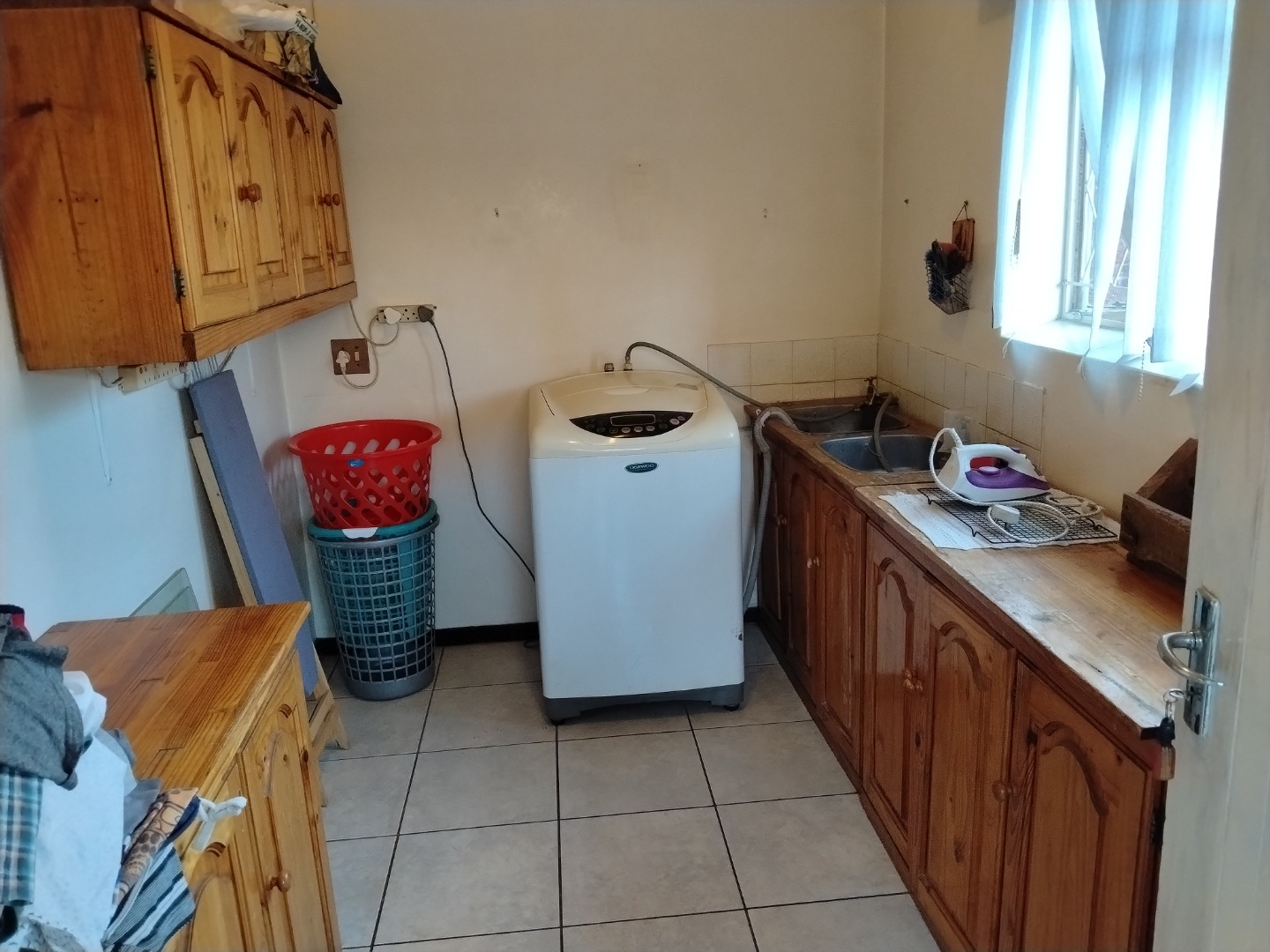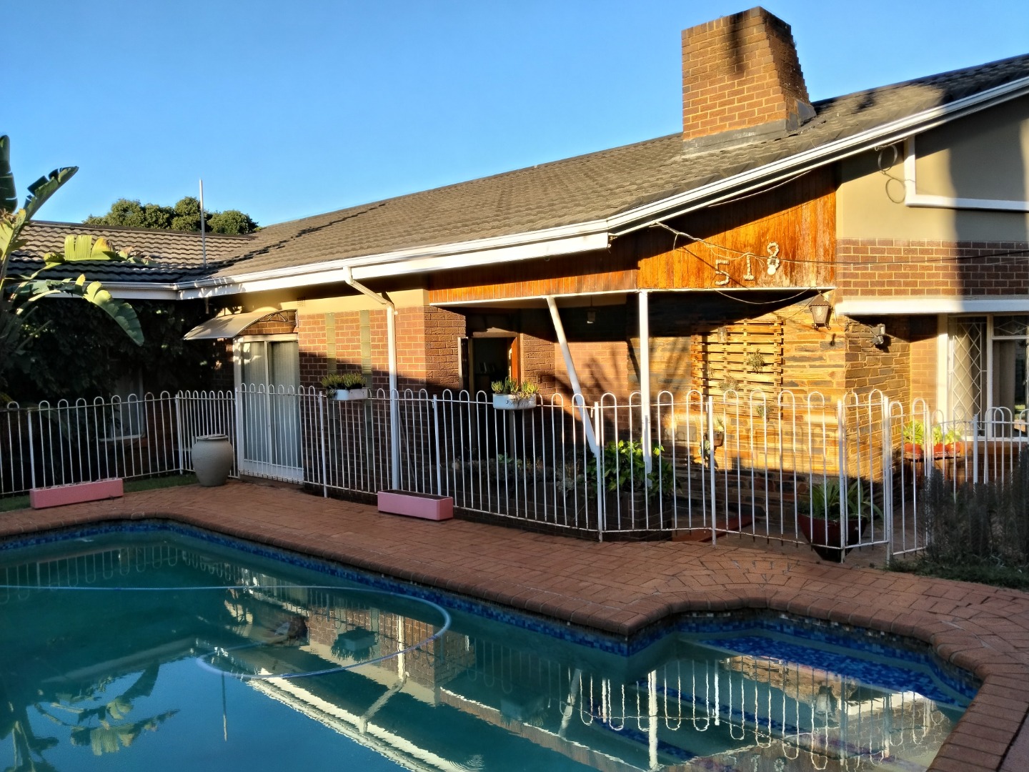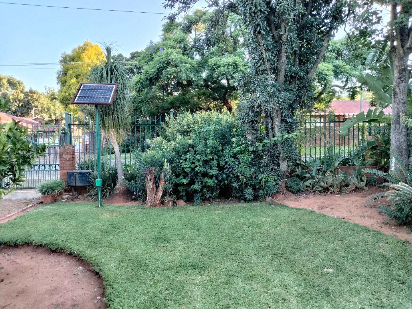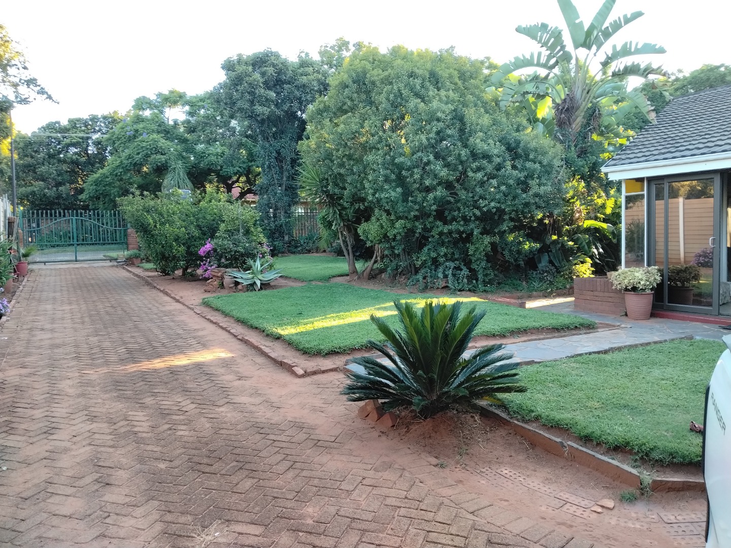 The main house offers 3 bedrooms, 2 bathrooms, guest toilette, large lounge with a stone fireplace, separate dining room, kitchen, laundry room and an enclosed veranda. Outbuildings consist of a single garage, 2 carports in the front of the garage and additional 2 carports on the western side of the property. Staff quarters with own electric geyser are situated behind the garage. The well maintained garden has several larger trees, many shrubs and plants and manicured grass. Well maintained swimming pool is located on the western side of the house. Large thatched roof lapa with built-in braai and a bar counter is situated in the northern side of the garden.
