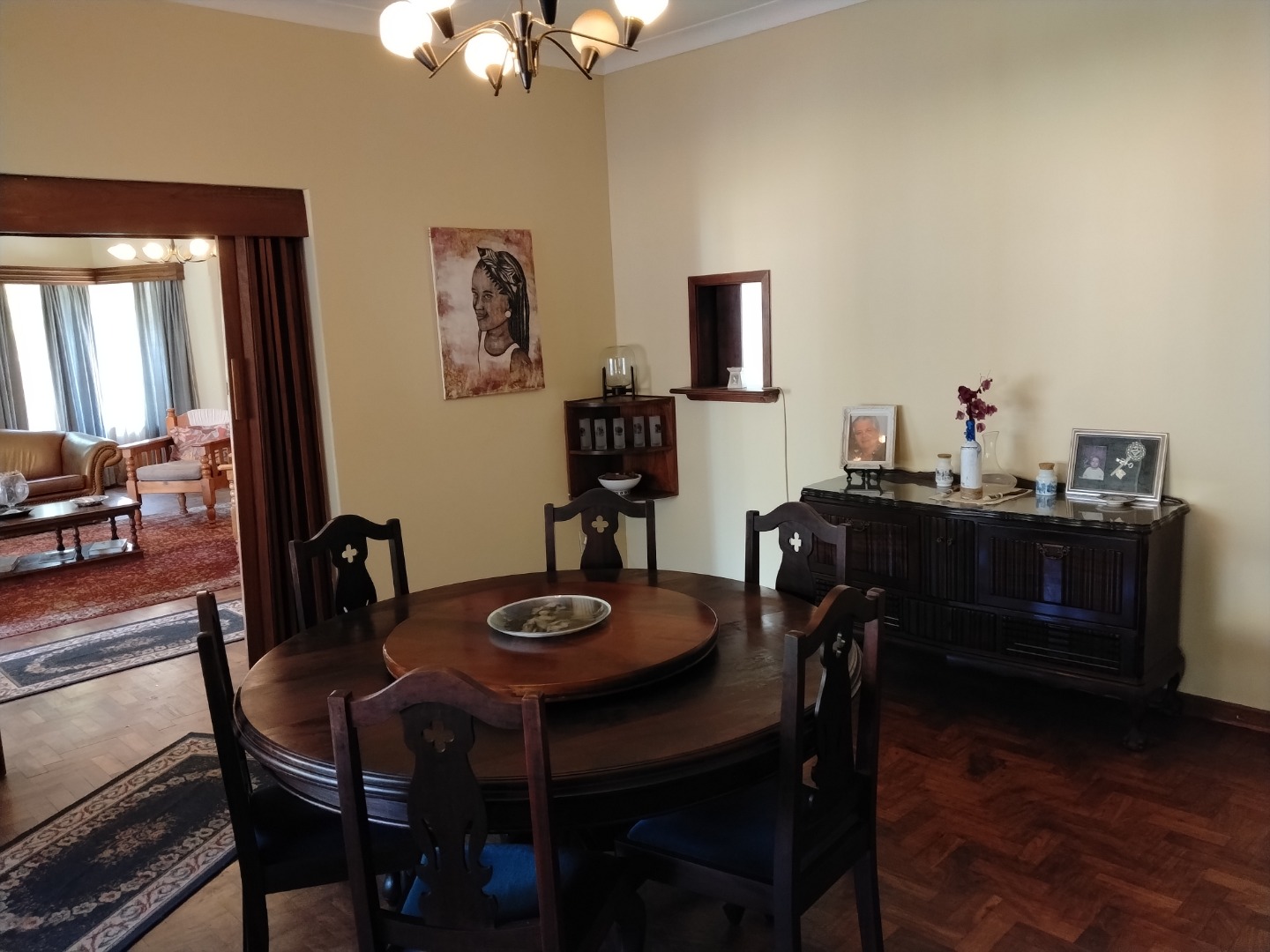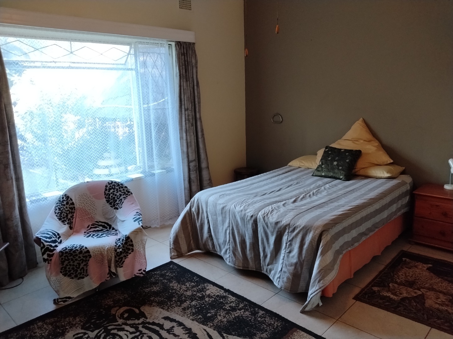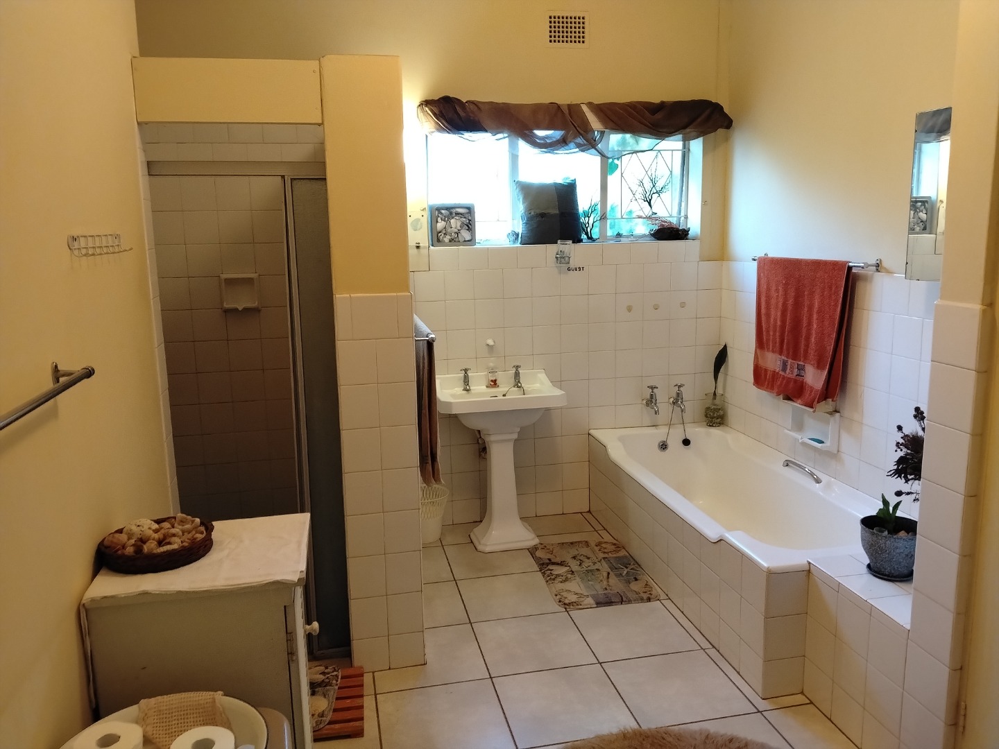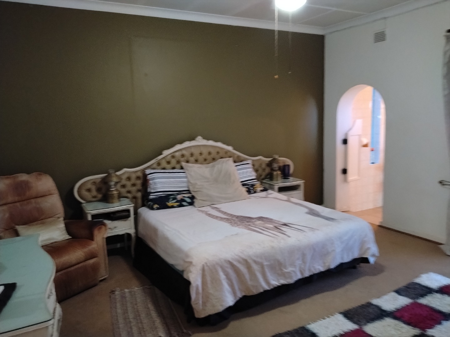 The main house offers 3 bedrooms, 2 bathrooms, guest toilette, large lounge with a stone fireplace, separate dining room, kitchen, laundry room and an enclosed veranda. Outbuildings consist of a single garage, 2 carports in the front of the garage and additional 2 carports on the western side of the property. Staff quarters with own electric geyser are situated behind the garage. The well maintained garden has several larger trees, many shrubs and plants and manicured grass. Well maintained swimming pool is located on the western side of the house. Large thatched roof lapa with built-in braai and a bar counter is situated in the northern side of the garden.