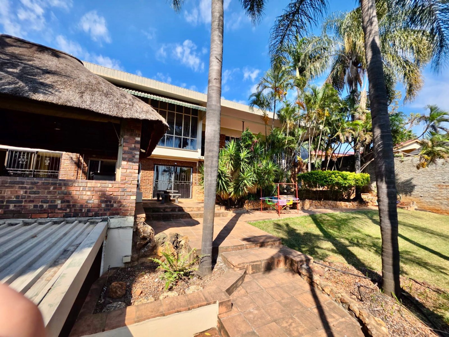 The exterior of this magnificent property is equally compelling, designed for both relaxation and entertainment. A sparkling swimming pool serves as the focal point for outdoor leisure, complemented by a traditional lapa and a built-in braai area, perfect for al fresco dining and social events. The meticulously maintained garden, enhanced by an efficient irrigation system and elegant paving, provides a verdant and inviting outdoor sanctuary. Practical considerations have been thoroughly addressed with a double garage offering secure parking for two vehicles, alongside additional parking provisions. The property is further secured by an alarm system and robust burglar bars, ensuring peace of mind for its residents.