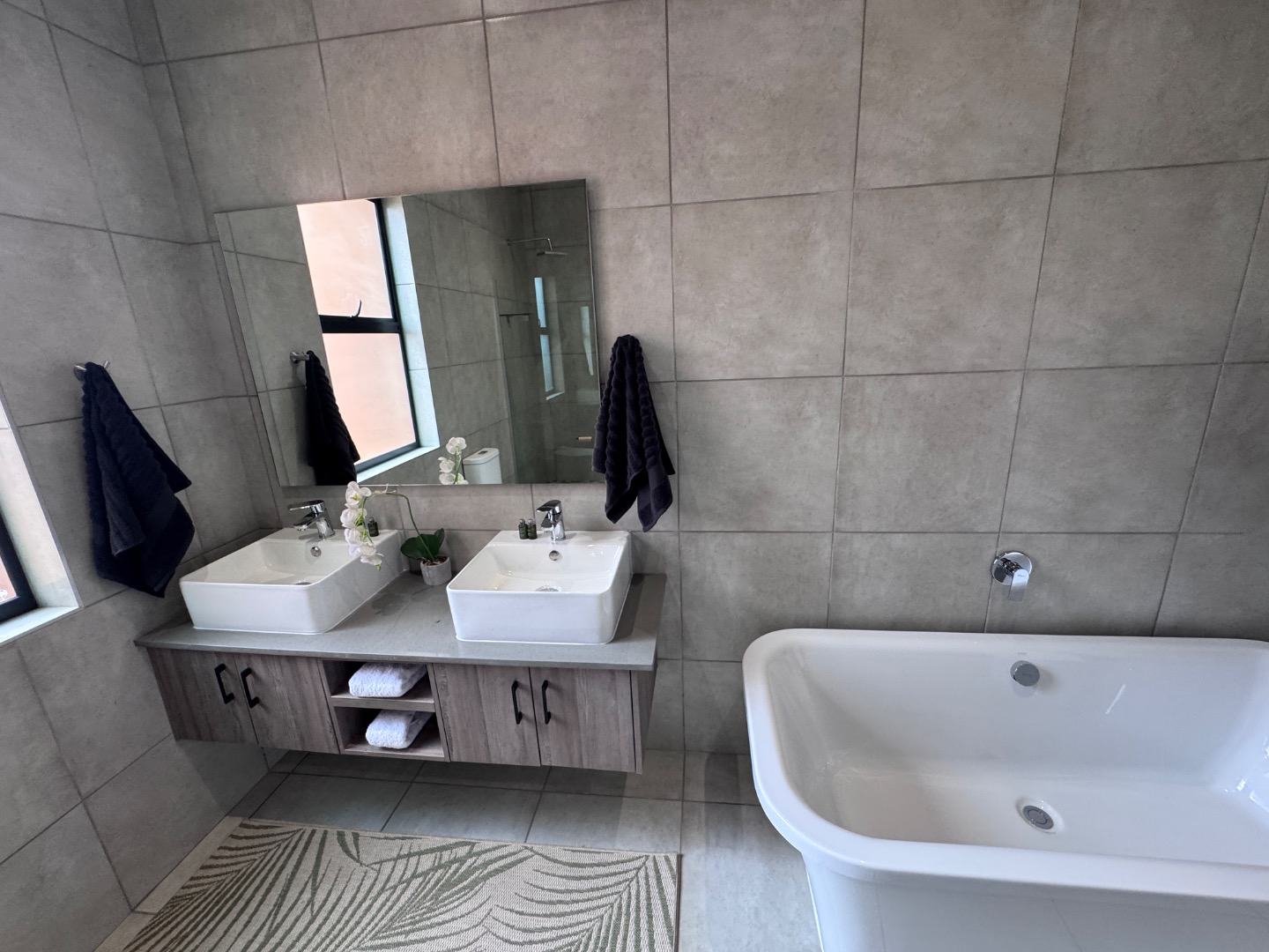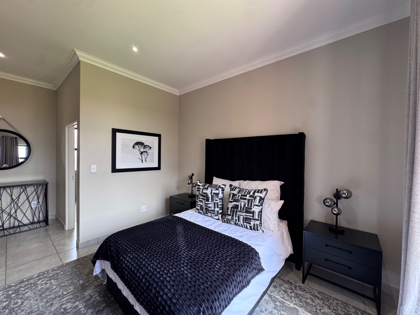 - Two full bathrooms, with a sleek main en-suite