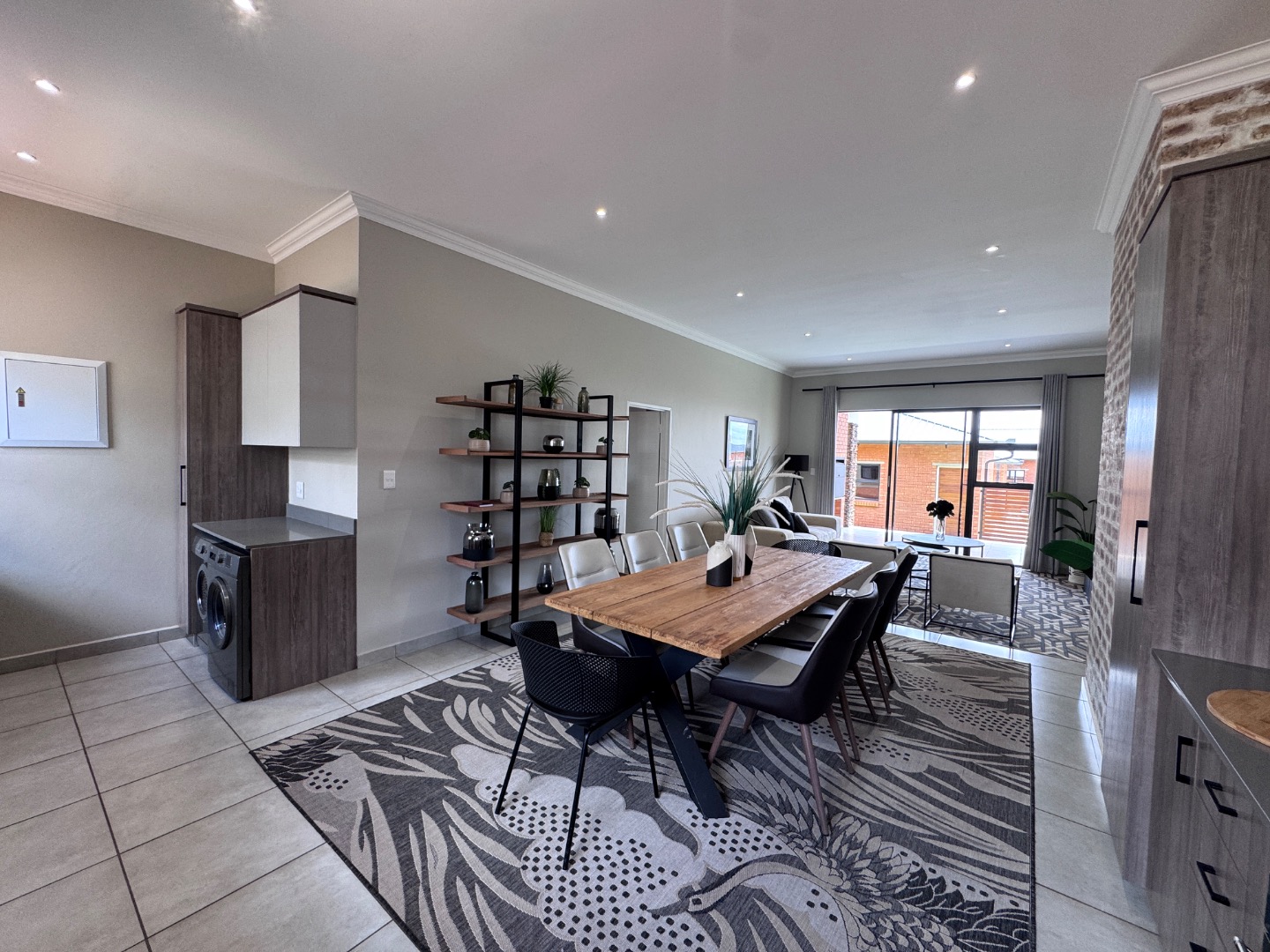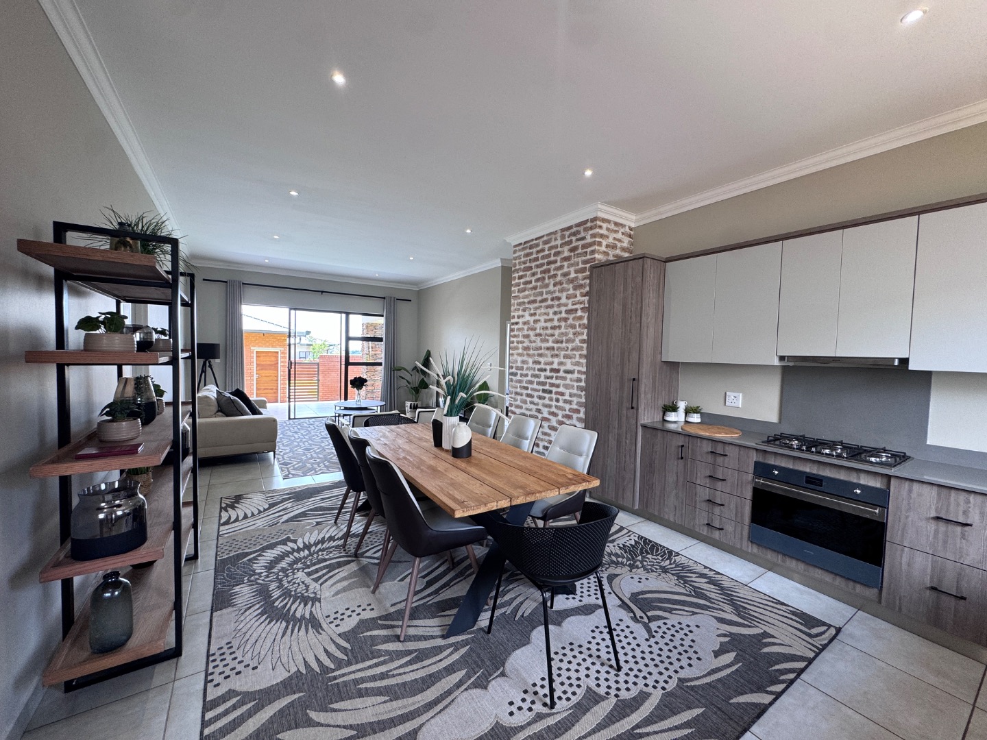 - Open-plan kitchen flowing into the dining and living area