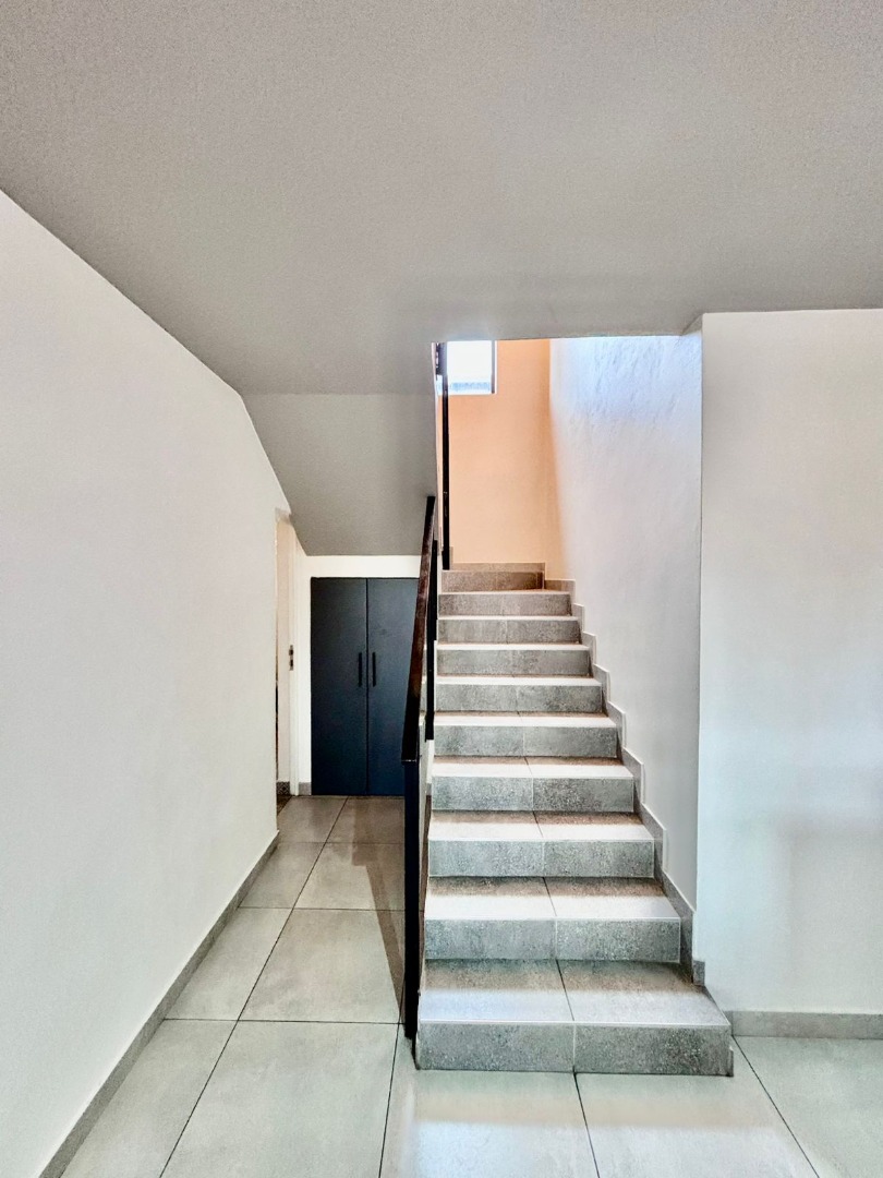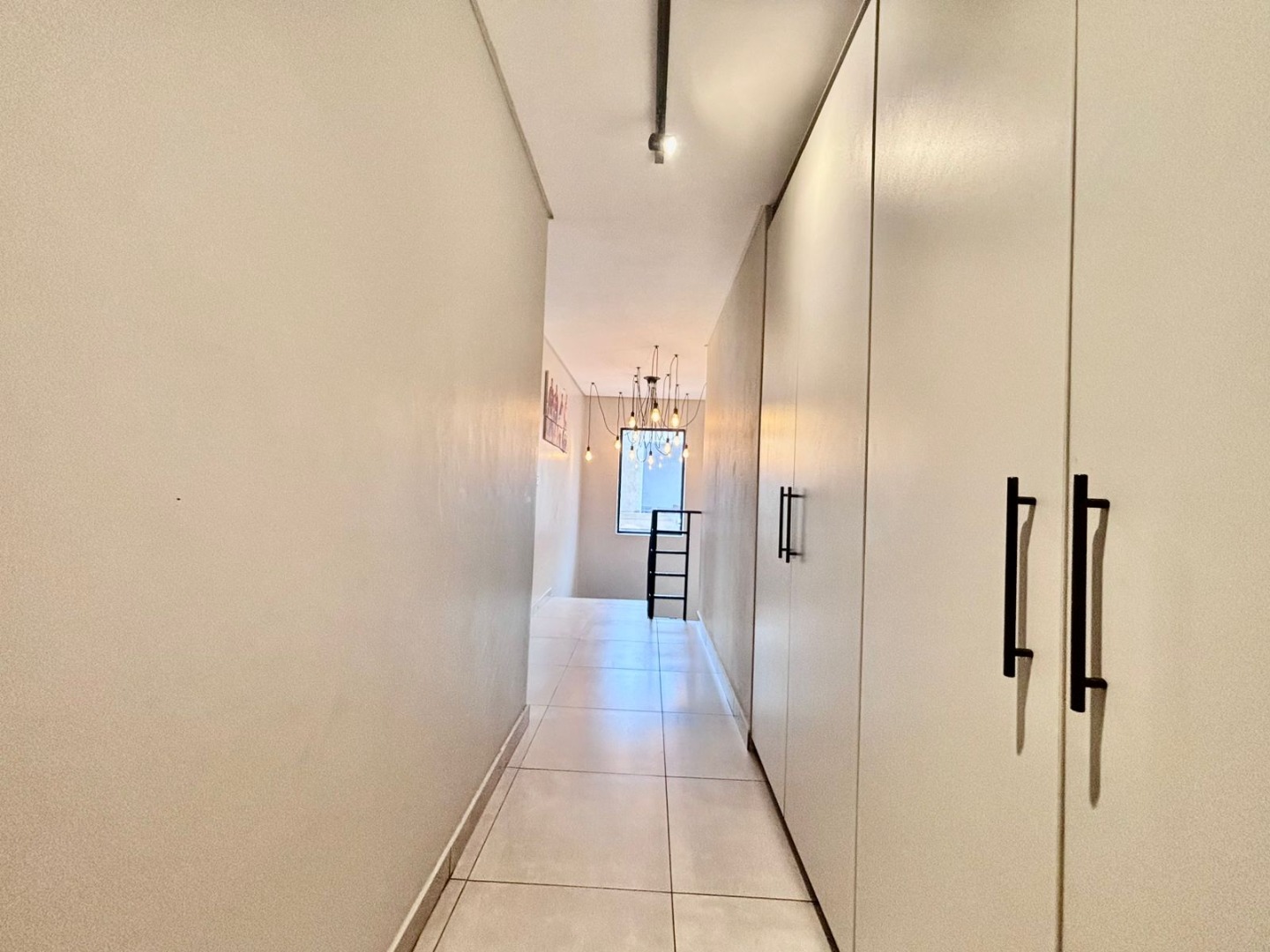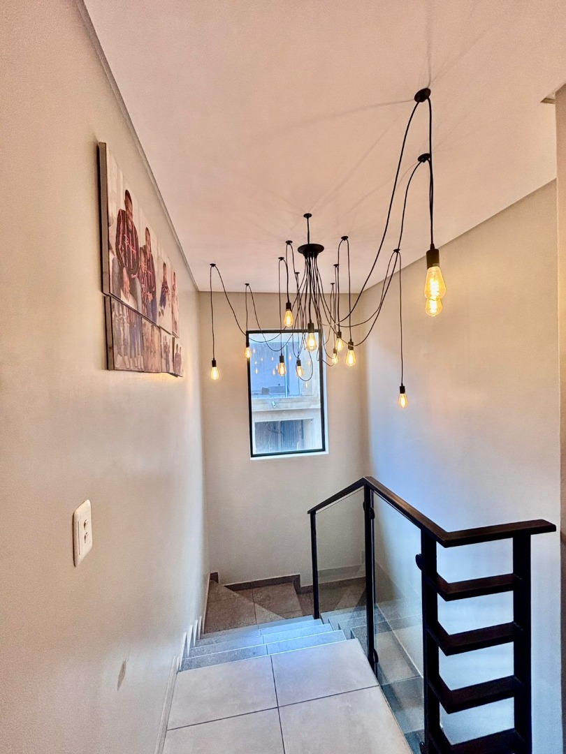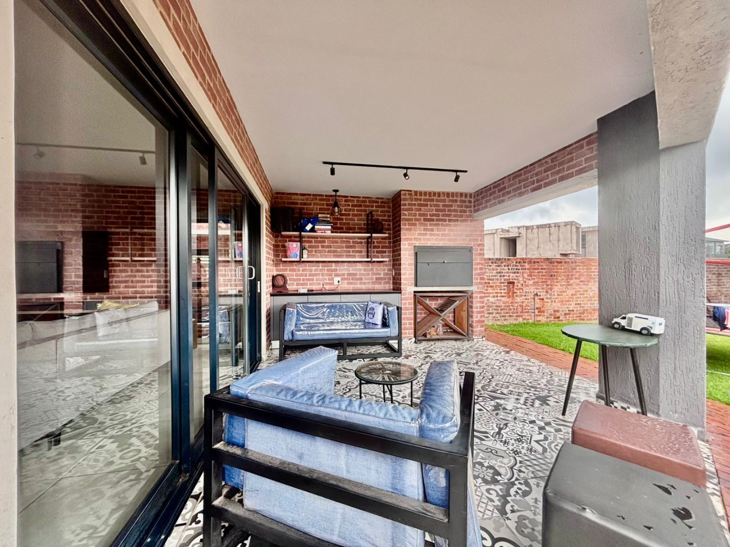 Nestled within a prestigious security estate, this magnificent residence presents an architectural masterpiece, seamlessly blending modern design with sophisticated functionality. The striking facade, characterized by its elegant brickwork and dark, contemporary accents, immediately captivates, offering a glimpse into the refined living experience within. A meticulously maintained front lawn and a paved driveway lead to a spacious double garage, providing ample secure parking for two vehicles. Multiple private balconies adorn the exterior, promising serene outdoor retreats and enhancing the property's distinguished kerb appeal, all set within the tranquil embrace of a well-managed estate. Step inside to discover an expansive open-plan living and dining area, a testament to contemporary design and effortless flow. This vibrant heart of the home is bathed in abundant natural light, streaming through large, multi-paned glass doors that invite the outdoors in. The aesthetic is defined by a chic industrial-inspired design, prominently featuring stylish exposed brick accent walls that add character and warmth. Sleek, large-format tiled flooring extends throughout, ensuring both elegance and ease of maintenance. Modern lighting fixtures, including a captivating chandelier and versatile track lighting, illuminate the space, creating an inviting ambiance for both grand entertaining and intimate family moments. The gourmet kitchen, a culinary haven, is seamlessly integrated into the open-plan layout, boasting dark, sophisticated cabinetry and sleek black countertops that exude modern luxury. A striking black island with comfortable seating serves as both a practical workspace and a casual dining spot, complete with an integrated wine rack for the connoisseur. High-end stainless steel appliances, including a range hood and stove, are complemented by a tasteful herringbone tile backsplash. A well-appointed pantry ensures ample storage, while sliding doors provide direct access to a private patio and garden, perfect for al fresco dining and relaxation. The thoughtful inclusion of a built-in braai further elevates the outdoor entertaining possibilities. Ascend to the upper level where three generously proportioned bedrooms await, each a private sanctuary designed for ultimate comfort and repose. A hallmark of this exquisite home is the provision of three luxurious en-suite bathrooms, ensuring unparalleled privacy and convenience for every resident. Each bathroom is appointed with modern fixtures and finishes, reflecting the property's overall commitment to quality. Furthermore, a stylish guest toilet on the main level caters to visitors with grace. The presence of multiple balconies offers residents personal outdoor spaces to enjoy the fresh air and views, adding another layer of luxury to these private quarters. Beyond its aesthetic appeal, this residence offers a lifestyle of peace of mind within a secure estate. Comprehensive security features include 24-hour security, an access gate, security post, and robust fencing, ensuring a protected environment for your family and pets. The property also embraces sustainable living with a solar geyser, contributing to energy efficiency and reduced utility costs. With a generous Erf size of 480 sqm and a floor size of 229 sqm, this home provides ample space for comfortable living, complemented by a well-maintained garden and paved areas. Pets are welcome, making this an ideal family abode. Key Features: * Three luxurious bedrooms, all with en-suite bathrooms * 3.5 bathrooms (three en-suite, one guest toilet) * Expansive open-plan living, dining, and kitchen areas with exposed brick accents * Modern gourmet kitchen featuring a black island, integrated wine rack, and pantry * Double garage and additional secure parking * Multiple private balconies and a patio with a built-in braai * Secure estate living with 24-hour security, access gate, and security post * Energy-efficient solar geyser * Pet-friendly environment * Generous Erf Size of 480 sqm and Floor Size of 229 sqm