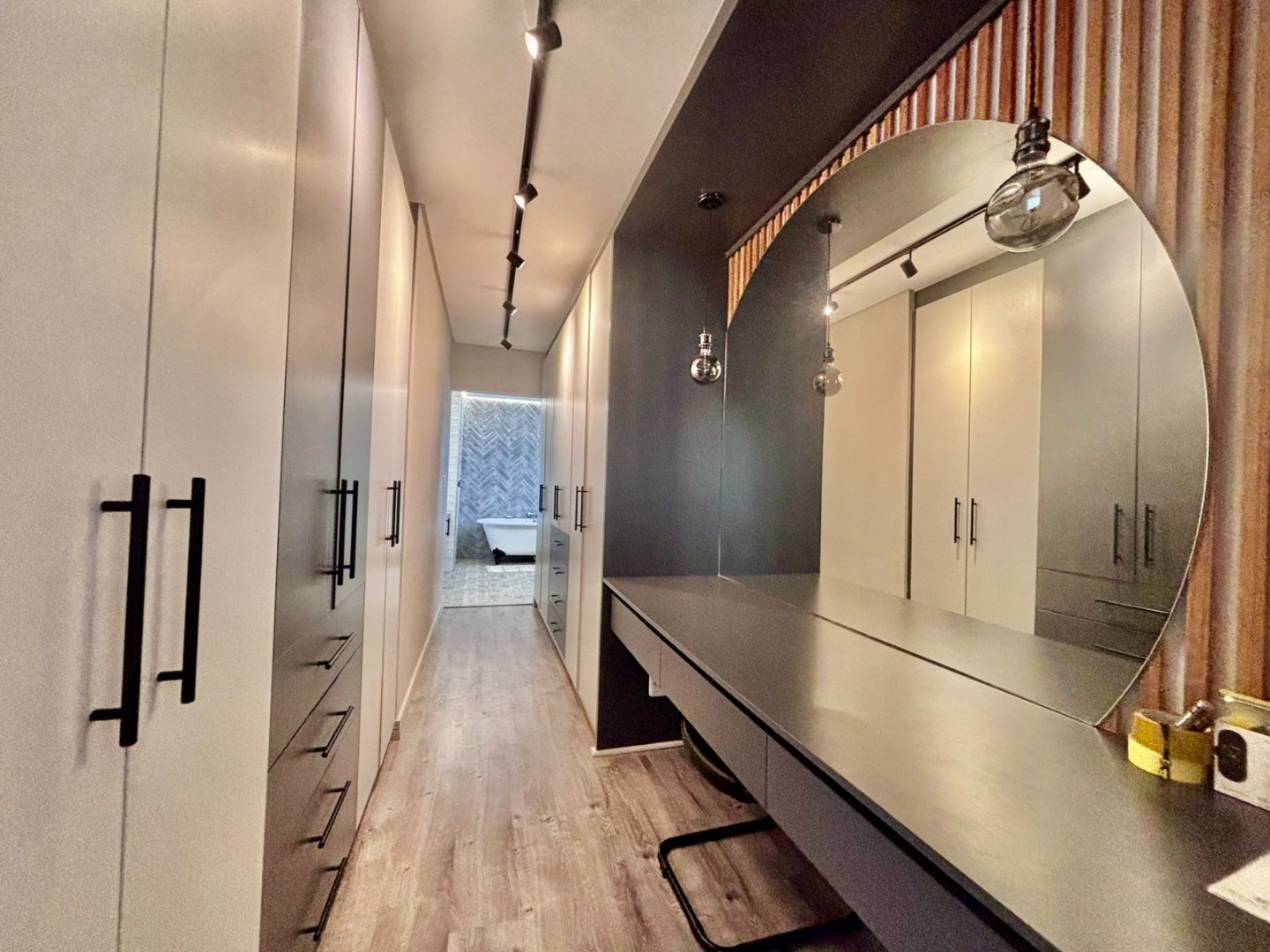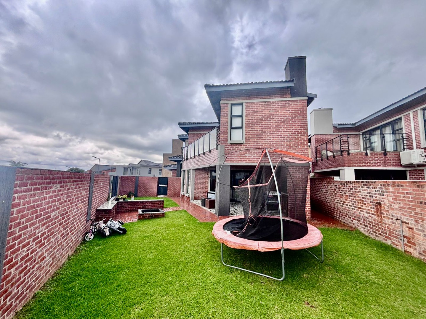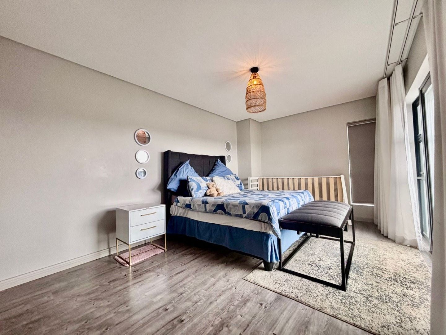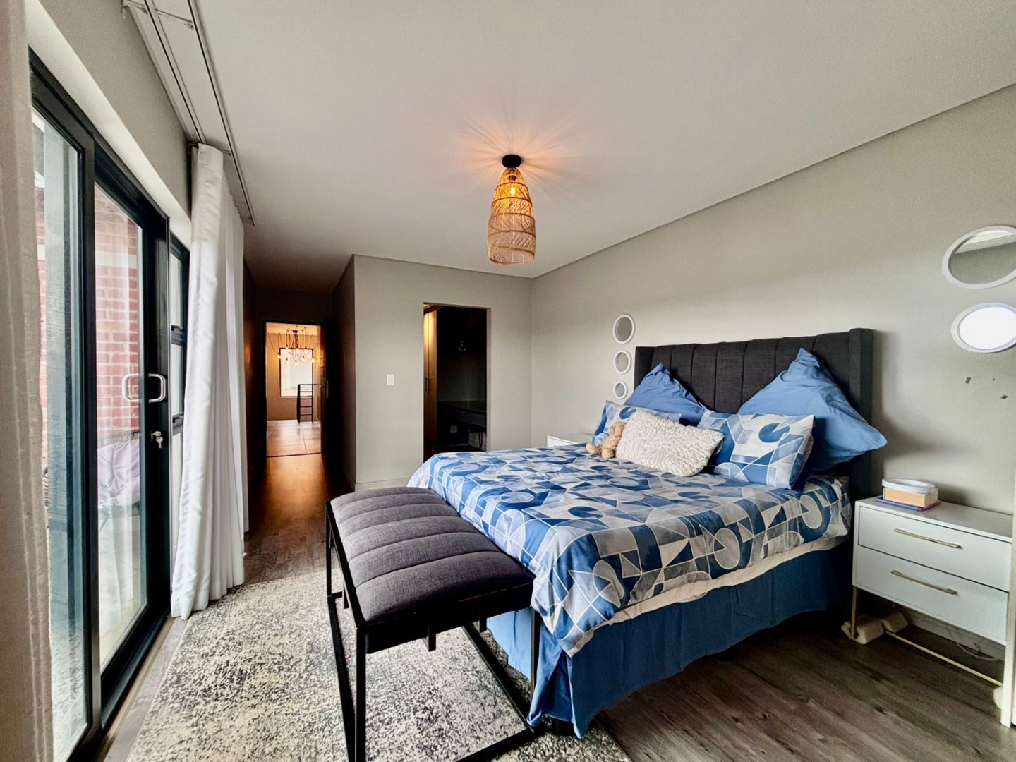 Nestled within a prestigious security estate, this magnificent residence presents an architectural masterpiece, seamlessly blending modern design with sophisticated functionality. The striking facade, characterized by its elegant brickwork and dark, contemporary accents, immediately captivates, offering a glimpse into the refined living experience within. A meticulously maintained front lawn and a paved driveway lead to a spacious double garage, providing ample secure parking for two vehicles. Multiple private balconies adorn the exterior, promising serene outdoor retreats and enhancing the property's distinguished kerb appeal, all set within the tranquil embrace of a well-managed estate. Step inside to discover an expansive open-plan living and dining area, a testament to contemporary design and effortless flow. This vibrant heart of the home is bathed in abundant natural light, streaming through large, multi-paned glass doors that invite the outdoors in. The aesthetic is defined by a chic industrial-inspired design, prominently featuring stylish exposed brick accent walls that add character and warmth. Sleek, large-format tiled flooring extends throughout, ensuring both elegance and ease of maintenance. Modern lighting fixtures, including a captivating chandelier and versatile track lighting, illuminate the space, creating an inviting ambiance for both grand entertaining and intimate family moments. The gourmet kitchen, a culinary haven, is seamlessly integrated into the open-plan layout, boasting dark, sophisticated cabinetry and sleek black countertops that exude modern luxury. A striking black island with comfortable seating serves as both a practical workspace and a casual dining spot, complete with an integrated wine rack for the connoisseur. High-end stainless steel appliances, including a range hood and stove, are complemented by a tasteful herringbone tile backsplash. A well-appointed pantry ensures ample storage, while sliding doors provide direct access to a private patio and garden, perfect for al fresco dining and relaxation. The thoughtful inclusion of a built-in braai further elevates the outdoor entertaining possibilities. Ascend to the upper level where three generously proportioned bedrooms await, each a private sanctuary designed for ultimate comfort and repose. A hallmark of this exquisite home is the provision of three luxurious en-suite bathrooms, ensuring unparalleled privacy and convenience for every resident. Each bathroom is appointed with modern fixtures and finishes, reflecting the property's overall commitment to quality. Furthermore, a stylish guest toilet on the main level caters to visitors with grace. The presence of multiple balconies offers residents personal outdoor spaces to enjoy the fresh air and views, adding another layer of luxury to these private quarters. Beyond its aesthetic appeal, this residence offers a lifestyle of peace of mind within a secure estate. Comprehensive security features include 24-hour security, an access gate, security post, and robust fencing, ensuring a protected environment for your family and pets. The property also embraces sustainable living with a solar geyser, contributing to energy efficiency and reduced utility costs. With a generous Erf size of 480 sqm and a floor size of 229 sqm, this home provides ample space for comfortable living, complemented by a well-maintained garden and paved areas. Pets are welcome, making this an ideal family abode. Key Features: * Three luxurious bedrooms, all with en-suite bathrooms * 3.5 bathrooms (three en-suite, one guest toilet) * Expansive open-plan living, dining, and kitchen areas with exposed brick accents * Modern gourmet kitchen featuring a black island, integrated wine rack, and pantry * Double garage and additional secure parking * Multiple private balconies and a patio with a built-in braai * Secure estate living with 24-hour security, access gate, and security post * Energy-efficient solar geyser * Pet-friendly environment * Generous Erf Size of 480 sqm and Floor Size of 229 sqm