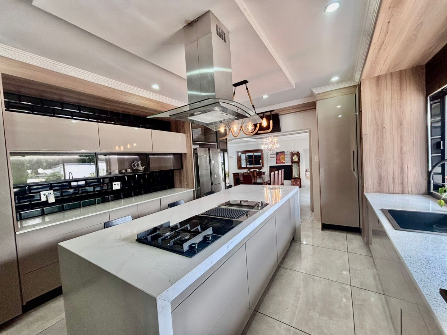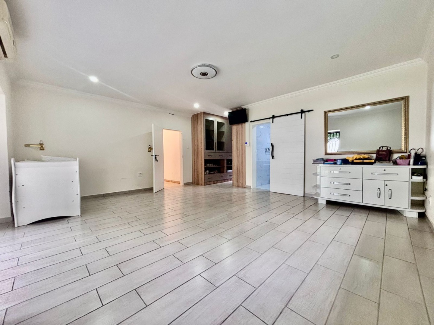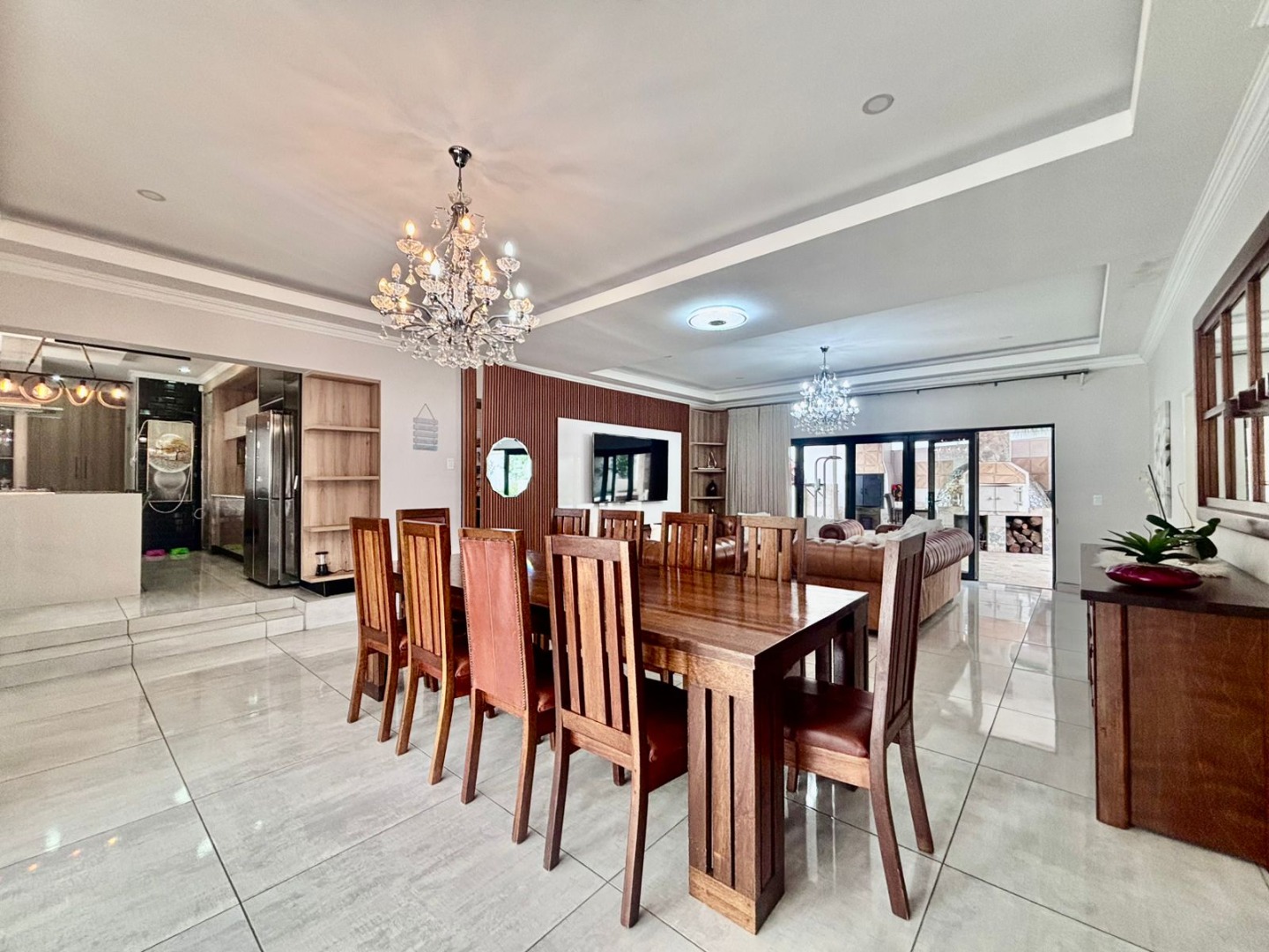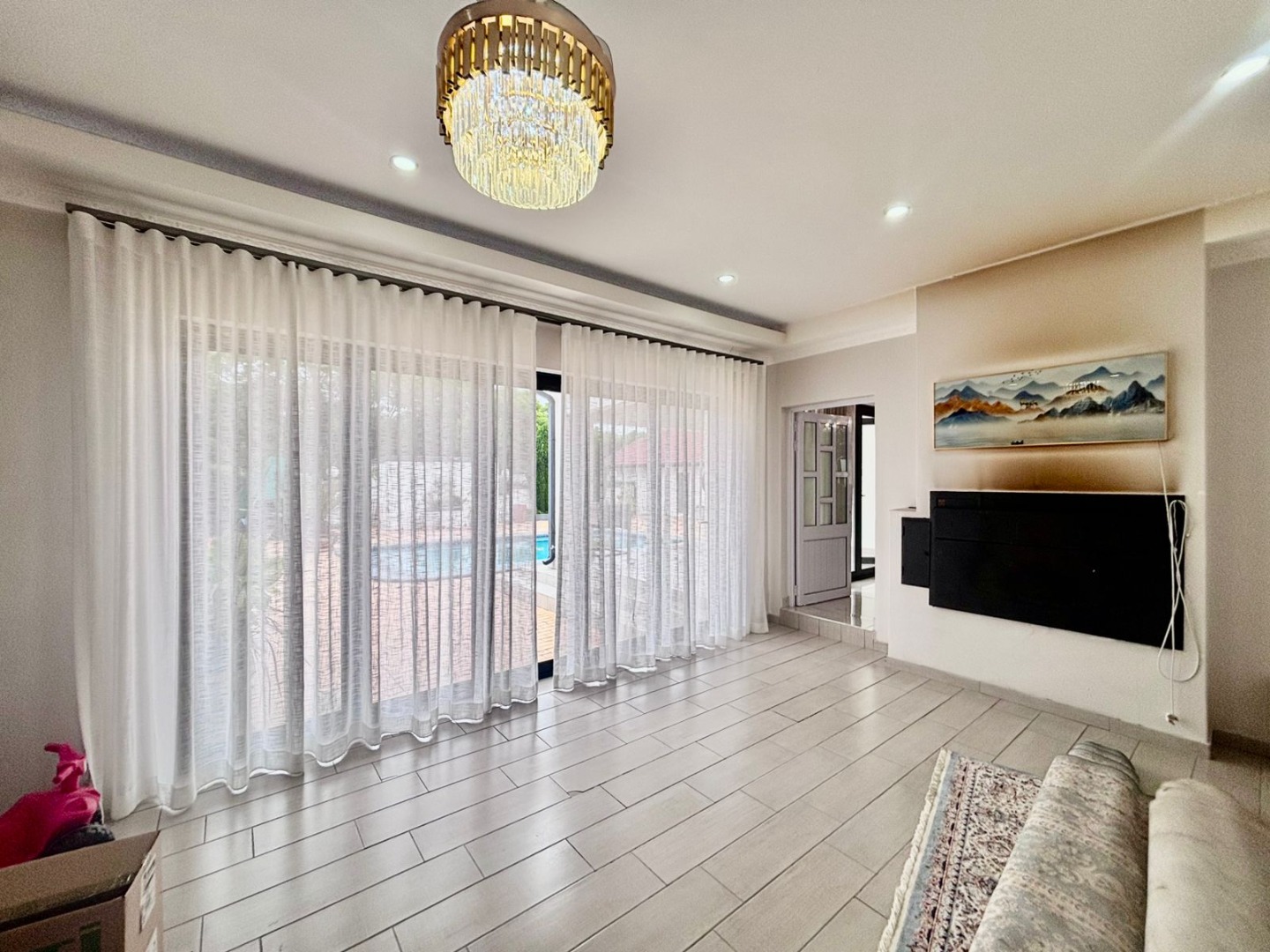 This distinguished residence, situated in the esteemed Waterkloof Ridge suburb of Pretoria, presents an imposing kerb appeal. A high, white perimeter wall, complemented by a decorative dark brown entrance gate, ensures privacy and security, setting a sophisticated tone upon arrival. Mature trees flank the entrance, providing both shade and an established aesthetic, while a meticulously maintained front lawn and brick-paved driveway enhance the property's welcoming facade. The property is nestled within a gated community, offering an elevated sense of security and exclusivity within this desirable suburban locale. Upon entering through the grand entrance hall, one is immediately struck by the expansive and versatile interior spaces. The residence boasts a generous configuration of seven bedrooms and four bathrooms, including two en-suite facilities, providing ample accommodation for a large family or for hosting guests. The main living areas feature clean, light-coloured tiled flooring and freshly painted white walls, creating a bright and airy ambiance that serves as a neutral canvas for personal customisation. A dedicated lounge, a formal dining room, and a family TV room offer distinct zones for relaxation and entertainment. The property further includes a functional kitchen, a convenient pantry, and a guest toilet, ensuring comprehensive amenities for daily living. The seven bedrooms are designed for comfort and privacy. One notable bedroom features light grey walls, durable tiled flooring, and a practical built-in wardrobe, offering efficient storage solutions. This particular bedroom benefits from an en-suite shower bathroom, providing direct and convenient access. The overall design ethos prioritises functionality and ease of maintenance, with tiled flooring prevalent throughout the sleeping quarters and bathrooms. While some elements may present an opportunity for aesthetic updates, the foundational structure is robust and well-maintained. The outdoor living spaces are a significant highlight of this property, designed for both relaxation and entertainment. A private courtyard features a large, clean swimming pool adorned with a charming dolphin mosaic, creating an inviting focal point. Extensive paved outdoor entertainment areas and a spacious tiled patio provide ample room for al fresco dining and social gatherings. A covered veranda overlooks the pool, offering a shaded retreat. The property is complemented by a well-maintained garden with an irrigation system and paving, enhancing its aesthetic appeal. For vehicle accommodation, a substantial garage provides space for three vehicles, supplemented by three additional parking bays. Further practical amenities include a dedicated laundry room, domestic rooms, a built-in braai, and a fireplace, catering to diverse lifestyle requirements. The presence of a borehole ensures water resilience for the garden. Security is paramount, with the property benefiting from its location within a gated community. Enhanced security features include an alarm system, electric fencing, and an access gate, providing residents with peace of mind. The residence is equipped with air conditioning for climate control and a solar geyser, contributing to energy efficiency and reduced utility costs. These provisions underscore a commitment to both safety and sustainable living within this suburban setting. Waterkloof Ridge is a highly sought-after residential area in Pretoria, renowned for its tranquil environment and convenient access to essential amenities. This suburban enclave offers a desirable lifestyle, combining peaceful living with proximity to urban conveniences. Its established character and community focus make it an ideal location for discerning homeowners. Key Features: * Seven Bedrooms and Four Bathrooms (Two En-suite) * Three Garages and Three Additional Parking Bays * Private Swimming Pool with Dolphin Mosaic * Expansive Paved Patio and Covered Veranda * Dedicated Lounge, Dining Room, Family TV Room, and Study * Gated Community with Alarm System and Electric Fencing * Air Conditioning and Solar Geyser * Borehole and Irrigation System * Domestic Rooms and Laundry Facilities * Built-in Braai and Fireplace