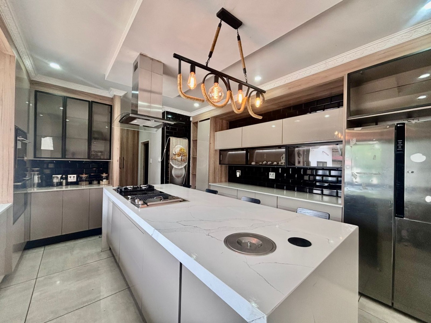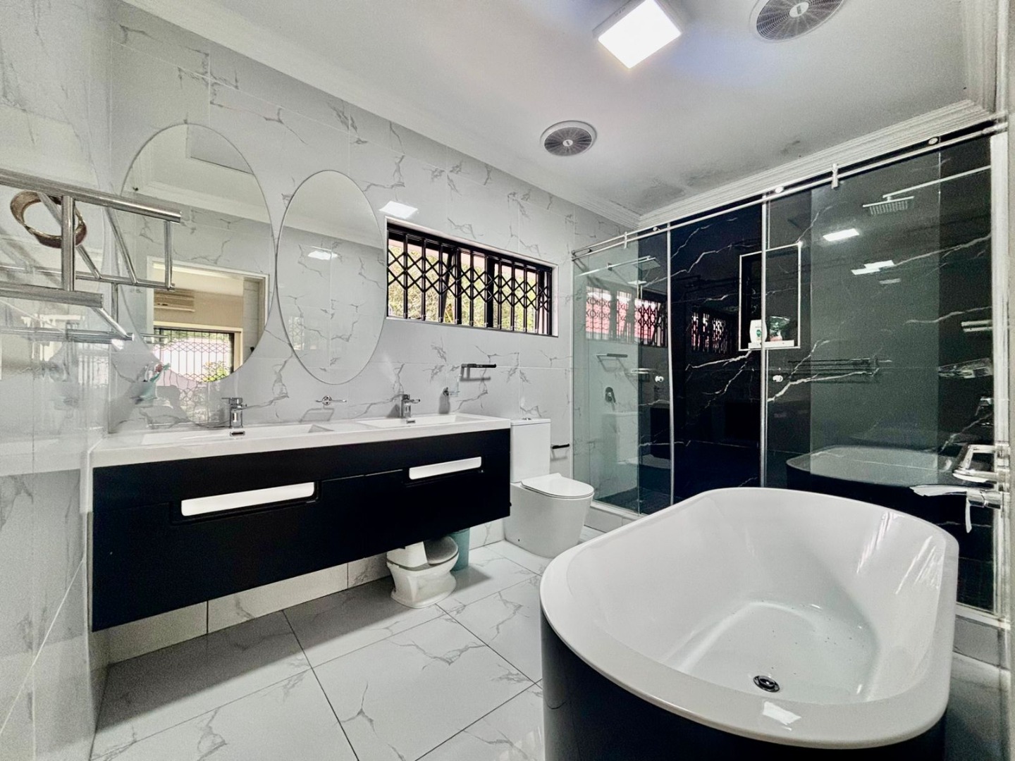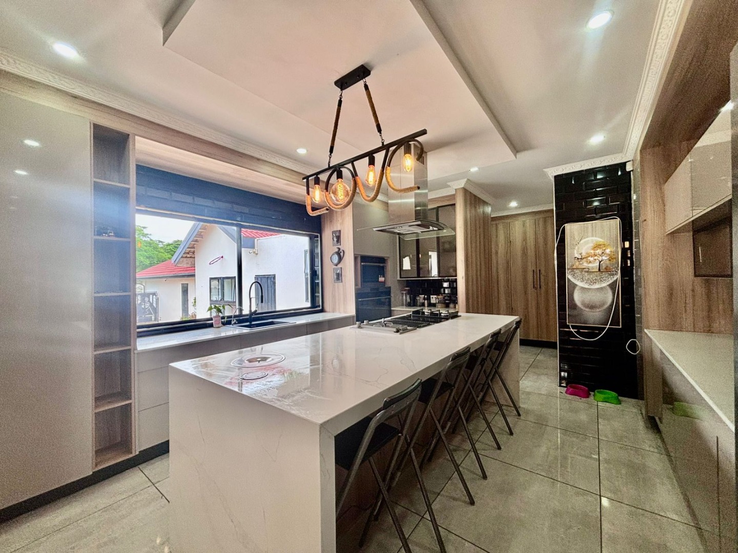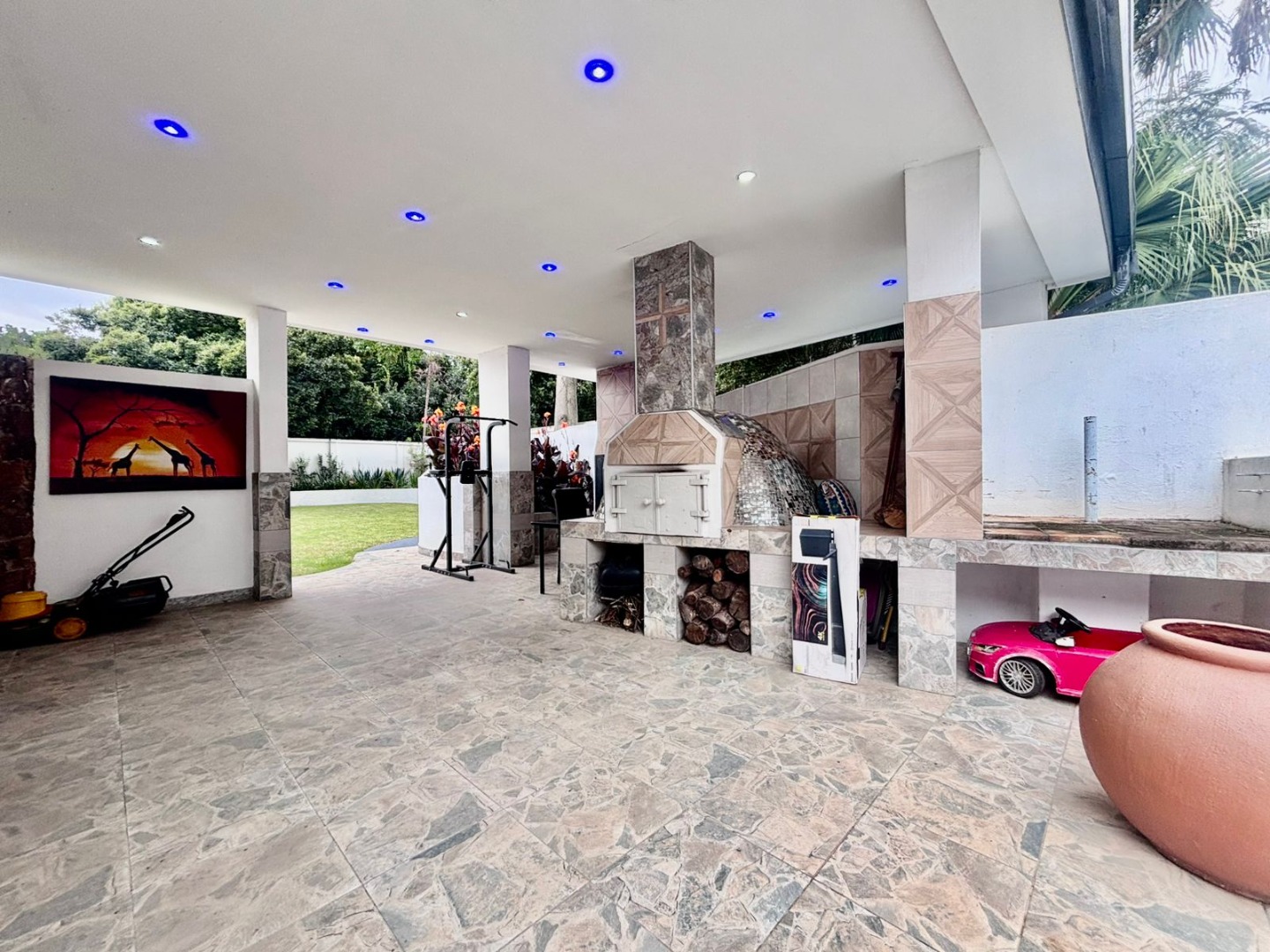 This distinguished residence, situated in the esteemed Waterkloof Ridge suburb of Pretoria, presents an imposing kerb appeal. A high, white perimeter wall, complemented by a decorative dark brown entrance gate, ensures privacy and security, setting a sophisticated tone upon arrival. Mature trees flank the entrance, providing both shade and an established aesthetic, while a meticulously maintained front lawn and brick-paved driveway enhance the property's welcoming facade. The property is nestled within a gated community, offering an elevated sense of security and exclusivity within this desirable suburban locale. Upon entering through the grand entrance hall, one is immediately struck by the expansive and versatile interior spaces. The residence boasts a generous configuration of seven bedrooms and four bathrooms, including two en-suite facilities, providing ample accommodation for a large family or for hosting guests. The main living areas feature clean, light-coloured tiled flooring and freshly painted white walls, creating a bright and airy ambiance that serves as a neutral canvas for personal customisation. A dedicated lounge, a formal dining room, and a family TV room offer distinct zones for relaxation and entertainment. The property further includes a functional kitchen, a convenient pantry, and a guest toilet, ensuring comprehensive amenities for daily living. The seven bedrooms are designed for comfort and privacy. One notable bedroom features light grey walls, durable tiled flooring, and a practical built-in wardrobe, offering efficient storage solutions. This particular bedroom benefits from an en-suite shower bathroom, providing direct and convenient access. The overall design ethos prioritises functionality and ease of maintenance, with tiled flooring prevalent throughout the sleeping quarters and bathrooms. While some elements may present an opportunity for aesthetic updates, the foundational structure is robust and well-maintained. The outdoor living spaces are a significant highlight of this property, designed for both relaxation and entertainment. A private courtyard features a large, clean swimming pool adorned with a charming dolphin mosaic, creating an inviting focal point. Extensive paved outdoor entertainment areas and a spacious tiled patio provide ample room for al fresco dining and social gatherings. A covered veranda overlooks the pool, offering a shaded retreat. The property is complemented by a well-maintained garden with an irrigation system and paving, enhancing its aesthetic appeal. For vehicle accommodation, a substantial garage provides space for three vehicles, supplemented by three additional parking bays. Further practical amenities include a dedicated laundry room, domestic rooms, a built-in braai, and a fireplace, catering to diverse lifestyle requirements. The presence of a borehole ensures water resilience for the garden. Security is paramount, with the property benefiting from its location within a gated community. Enhanced security features include an alarm system, electric fencing, and an access gate, providing residents with peace of mind. The residence is equipped with air conditioning for climate control and a solar geyser, contributing to energy efficiency and reduced utility costs. These provisions underscore a commitment to both safety and sustainable living within this suburban setting. Waterkloof Ridge is a highly sought-after residential area in Pretoria, renowned for its tranquil environment and convenient access to essential amenities. This suburban enclave offers a desirable lifestyle, combining peaceful living with proximity to urban conveniences. Its established character and community focus make it an ideal location for discerning homeowners. Key Features: * Seven Bedrooms and Four Bathrooms (Two En-suite) * Three Garages and Three Additional Parking Bays * Private Swimming Pool with Dolphin Mosaic * Expansive Paved Patio and Covered Veranda * Dedicated Lounge, Dining Room, Family TV Room, and Study * Gated Community with Alarm System and Electric Fencing * Air Conditioning and Solar Geyser * Borehole and Irrigation System * Domestic Rooms and Laundry Facilities * Built-in Braai and Fireplace