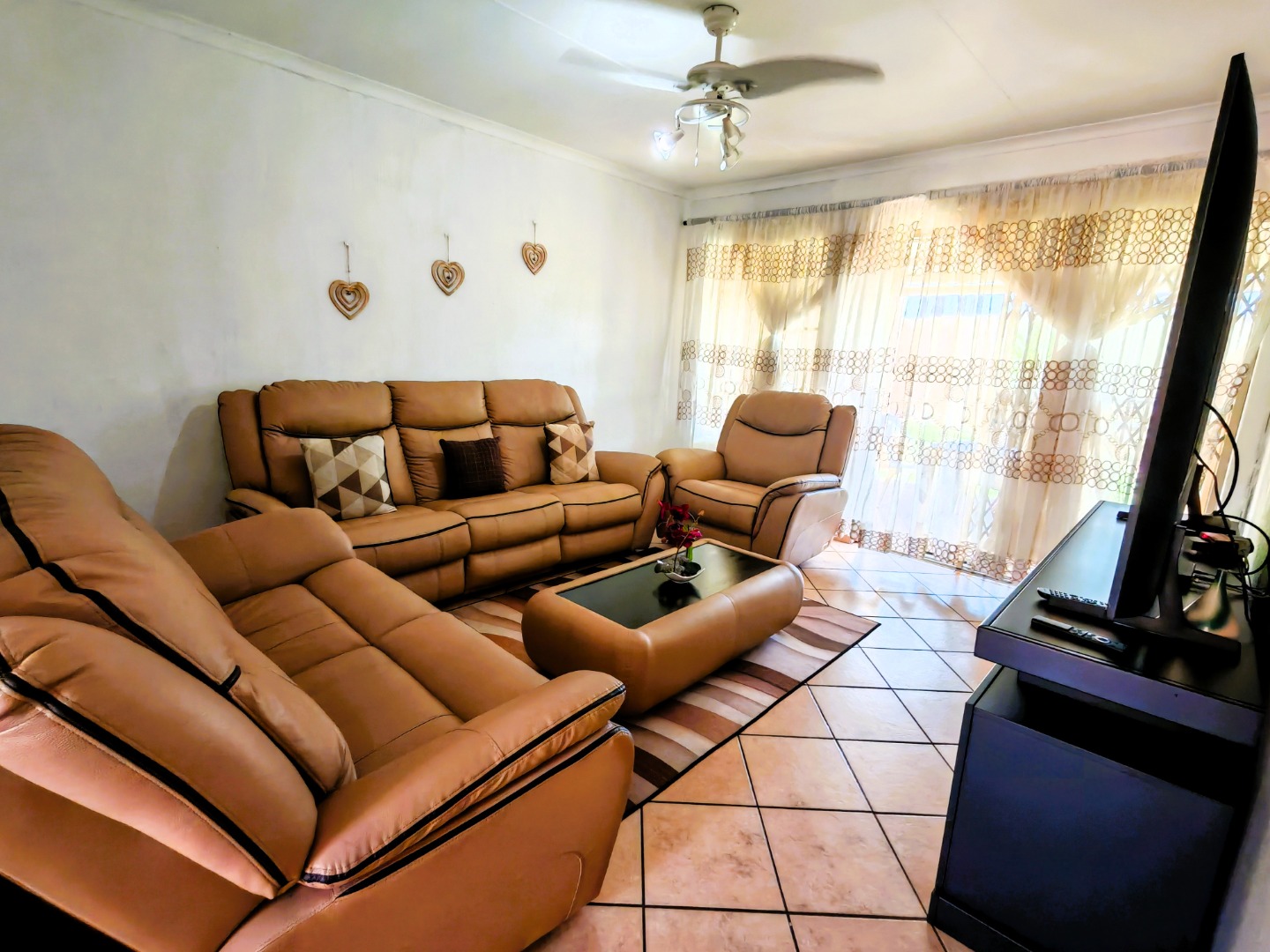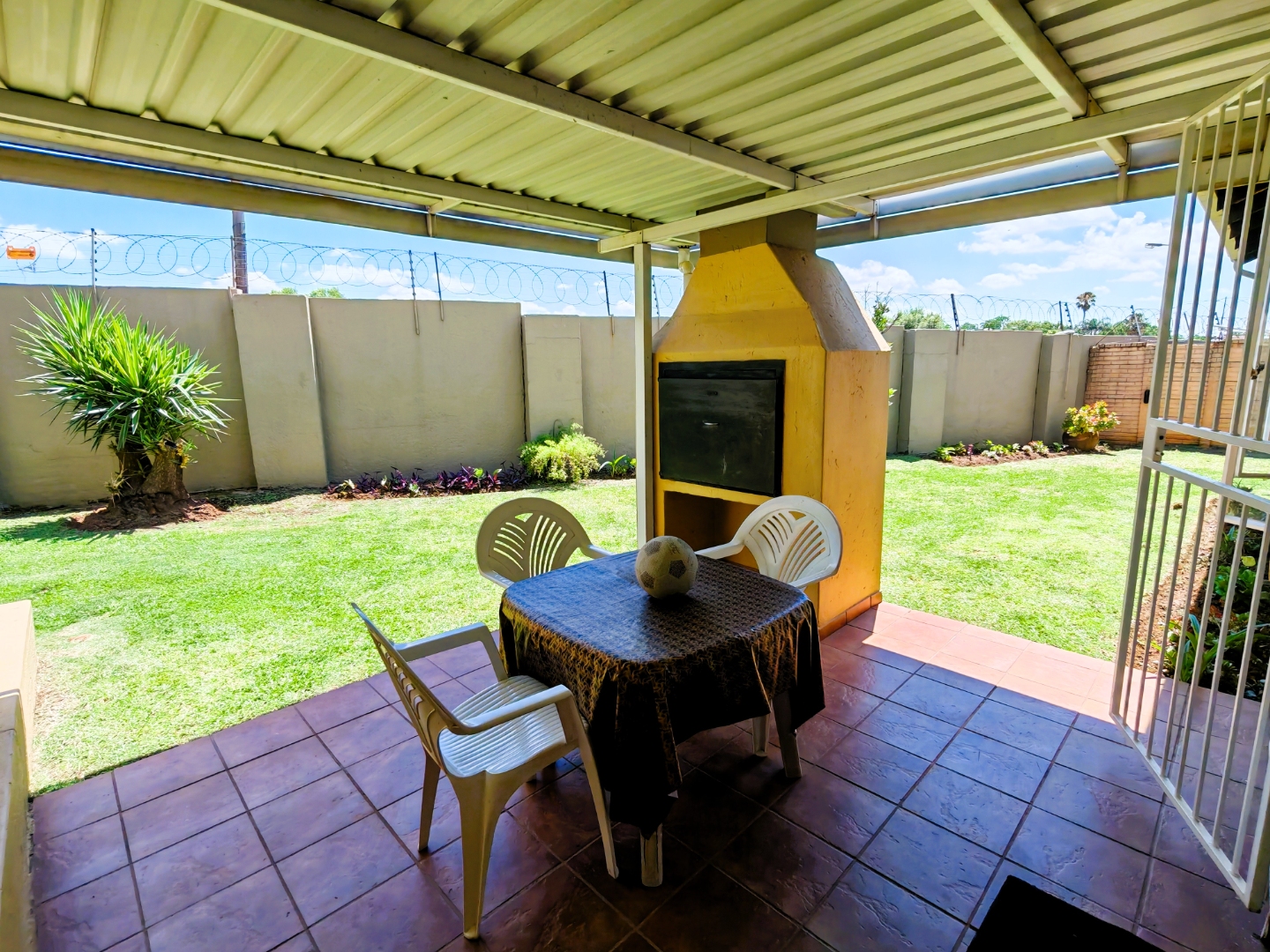 Outside, you'll love the private garden and tiled covered patio area, complete with a built-in braai – ideal for those sunny South African get-togethers. With two garages and additional parking, there's ample space for your vehicles. Plus, the complex boasts excellent security features like electric fencing, an access gate, and 24-hour security, giving you real peace of mind. Pets are also welcome here, so your furry friends can enjoy the garden too!