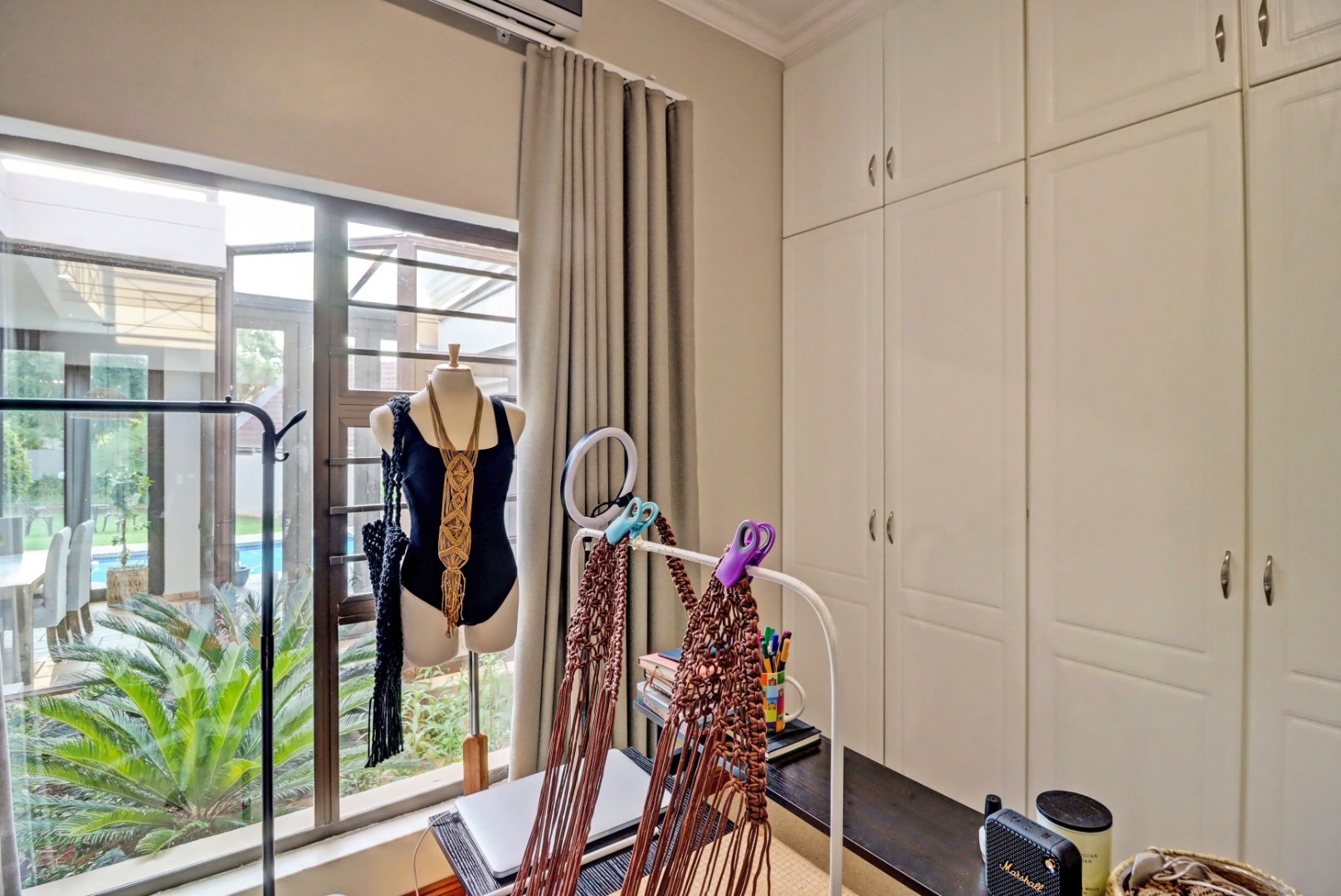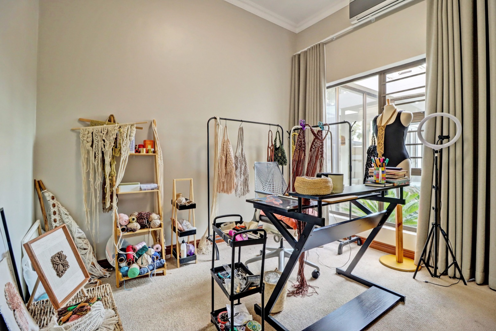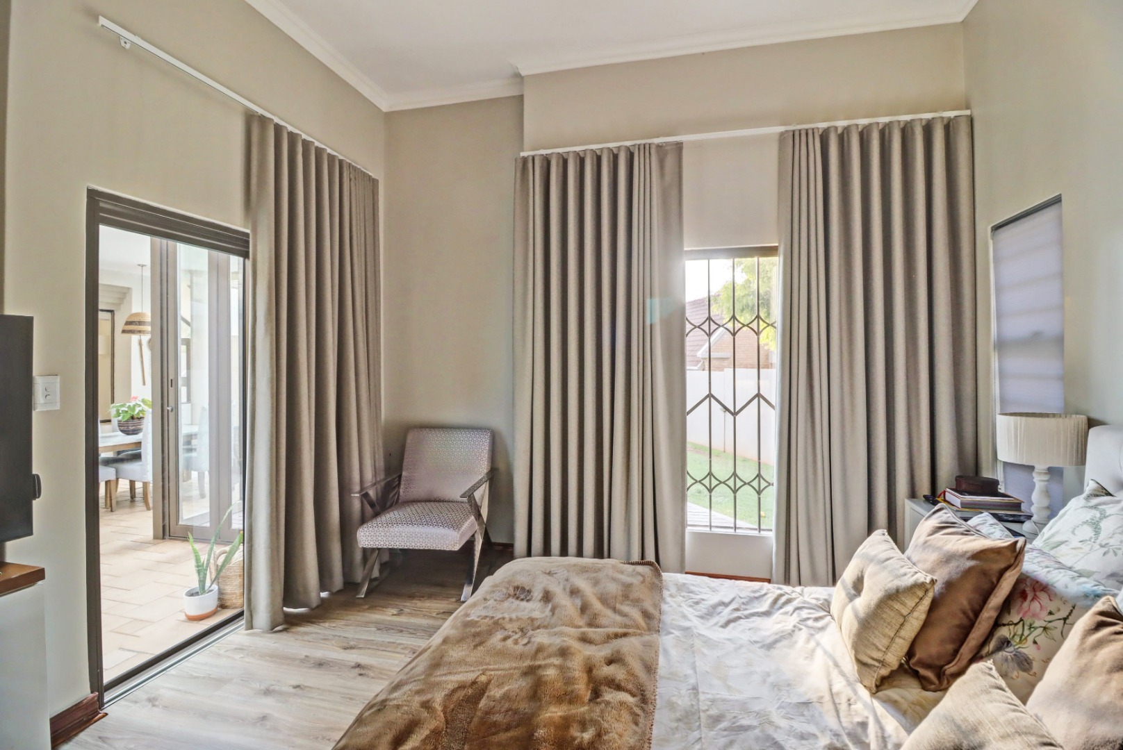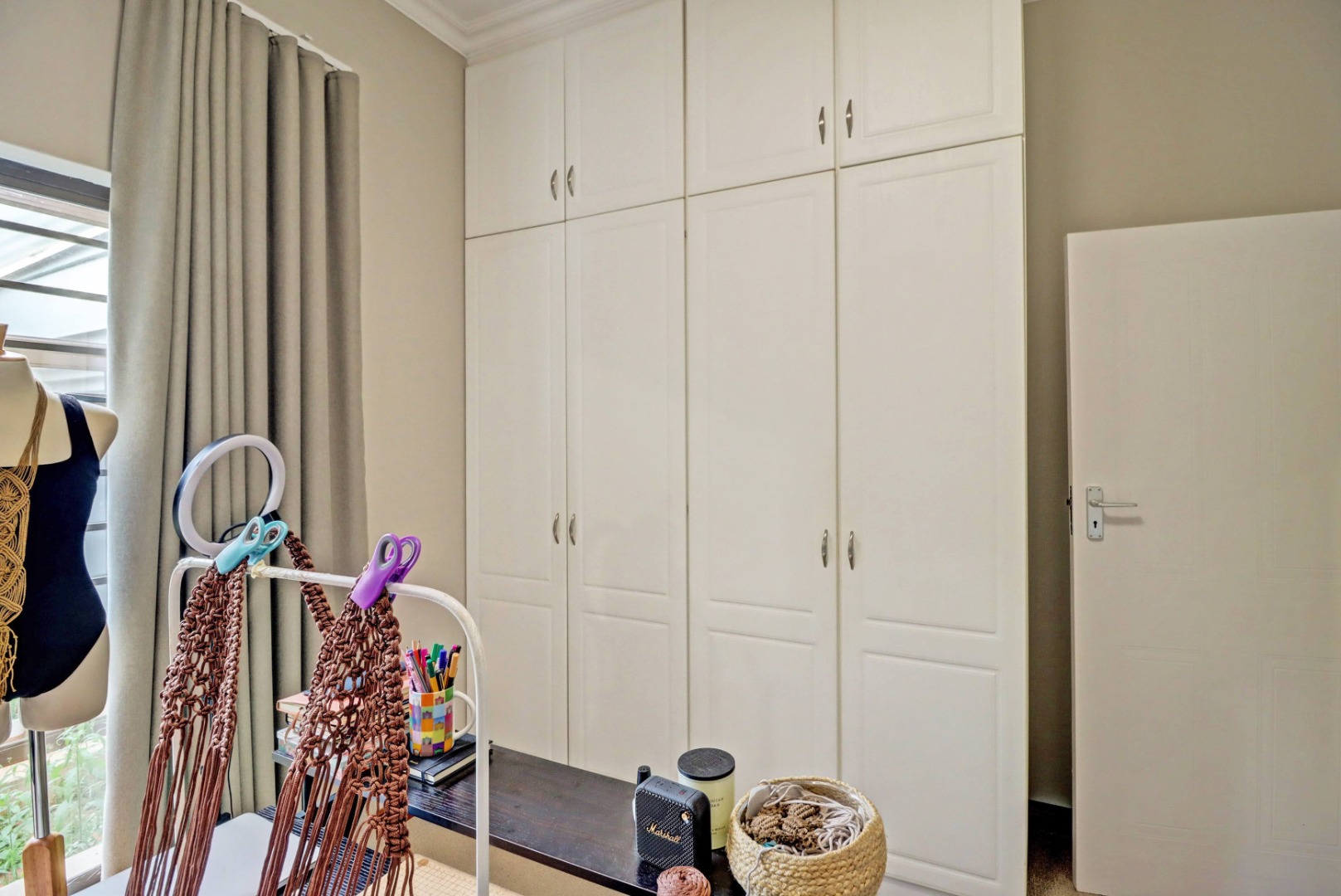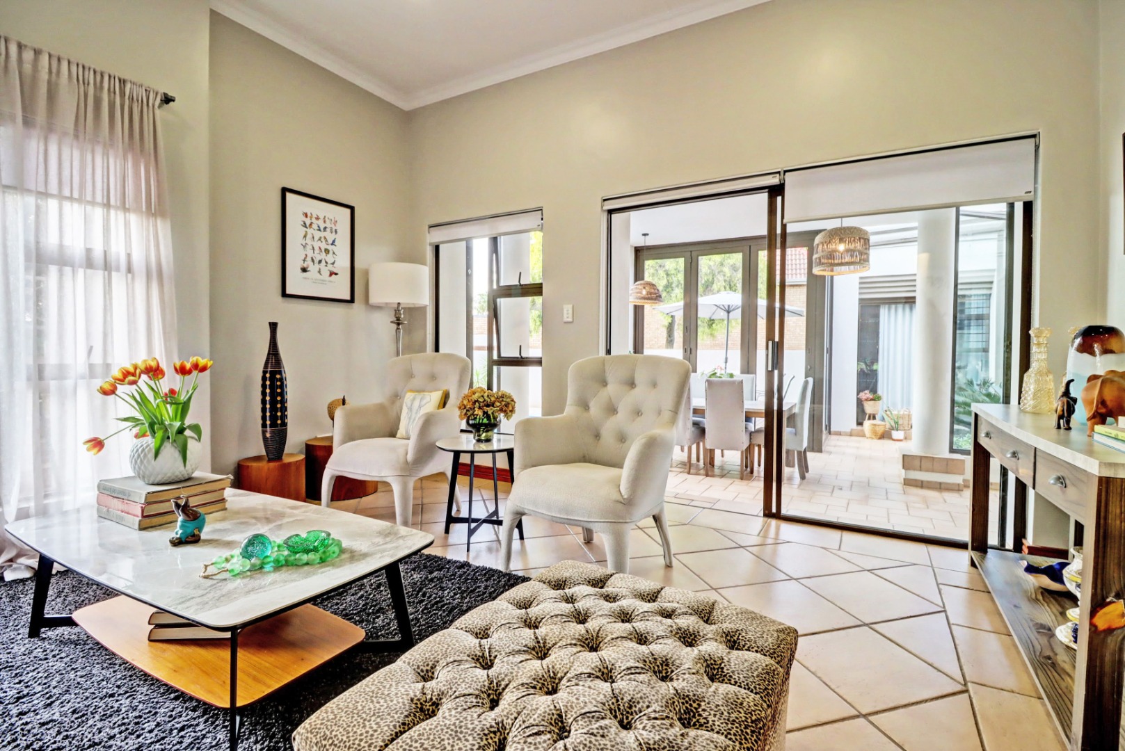 The outdoor spaces are designed for leisure and enjoyment, featuring a private garden and a refreshing swimming pool, perfect for unwinding or entertaining guests. A spacious patio extends the living area outdoors, offering an ideal spot for al fresco dining or simply enjoying the South African sunshine. As part of a prestigious golf estate, residents benefit from direct access to world-class golfing facilities and a secure, tranquil environment. Pets are allowed, making this a truly family-friendly home. The property also includes a flatlet, offering flexible accommodation options for guests, extended family, or potential rental income.