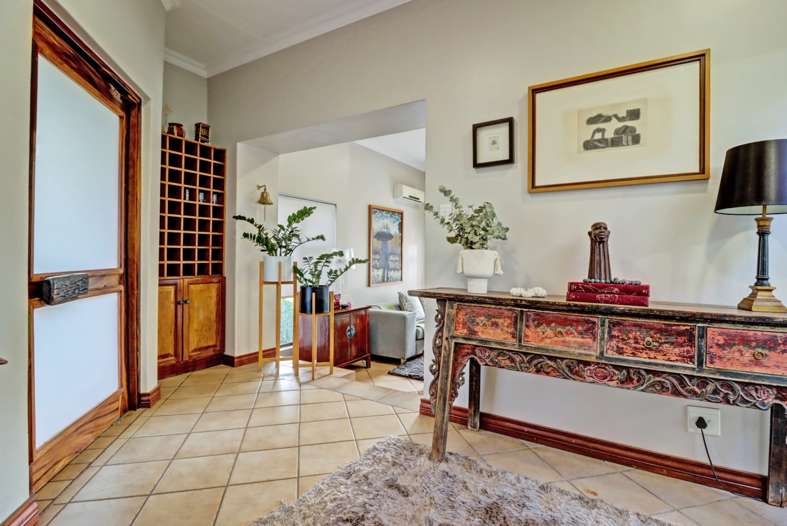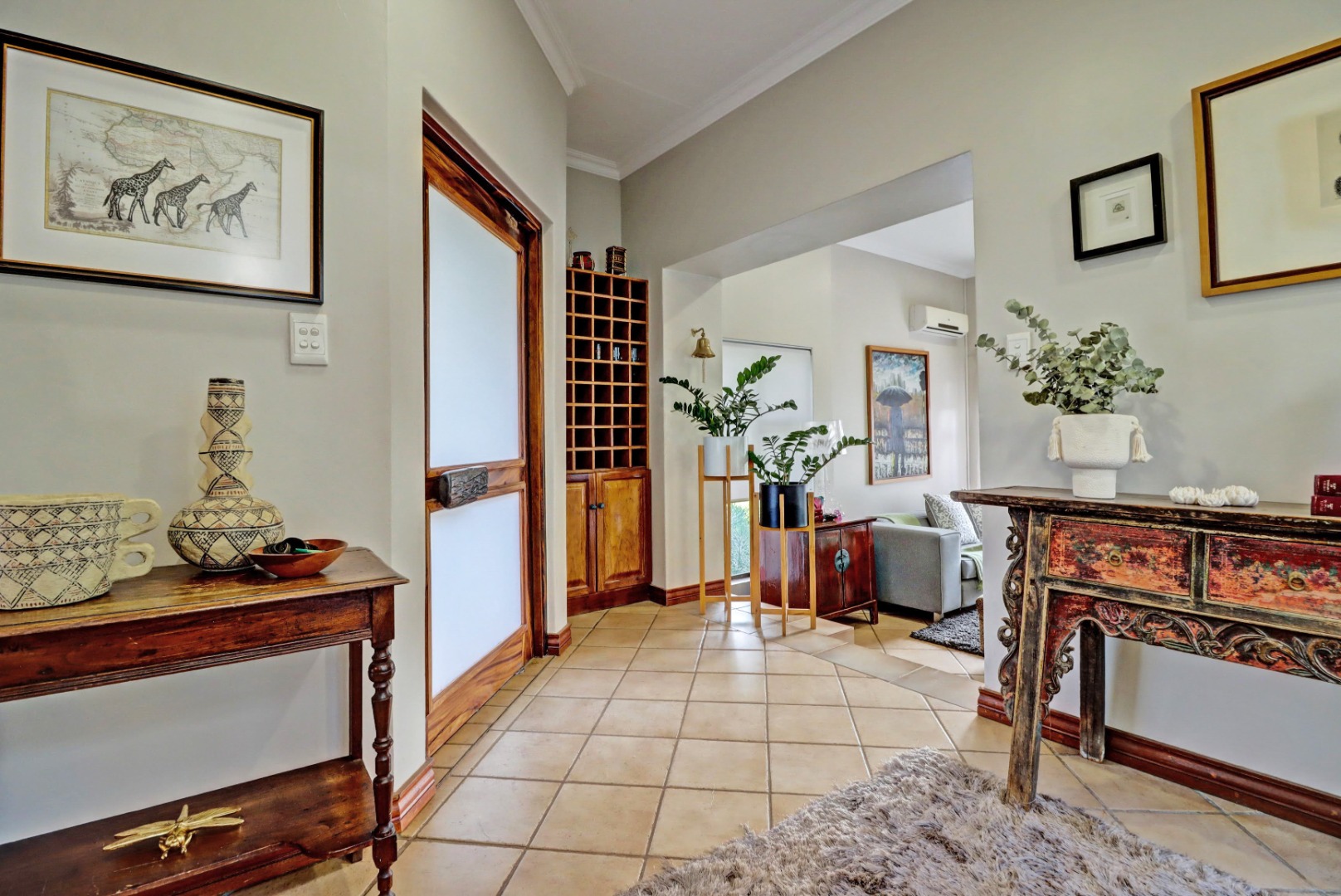 Emphasising modern living, this home is equipped with essential sustainability and security features. It benefits from solar panels and a battery inverter, significantly reducing electricity costs and ensuring uninterrupted power supply. Water tanks contribute to water resilience, while fibre connectivity provides high-speed internet access, catering to contemporary digital needs. The property is further secured by 24-hour security within the estate and a dedicated security gate, offering peace of mind for residents. A fireplace adds a touch of warmth and charm during cooler evenings, completing this comprehensive offering.