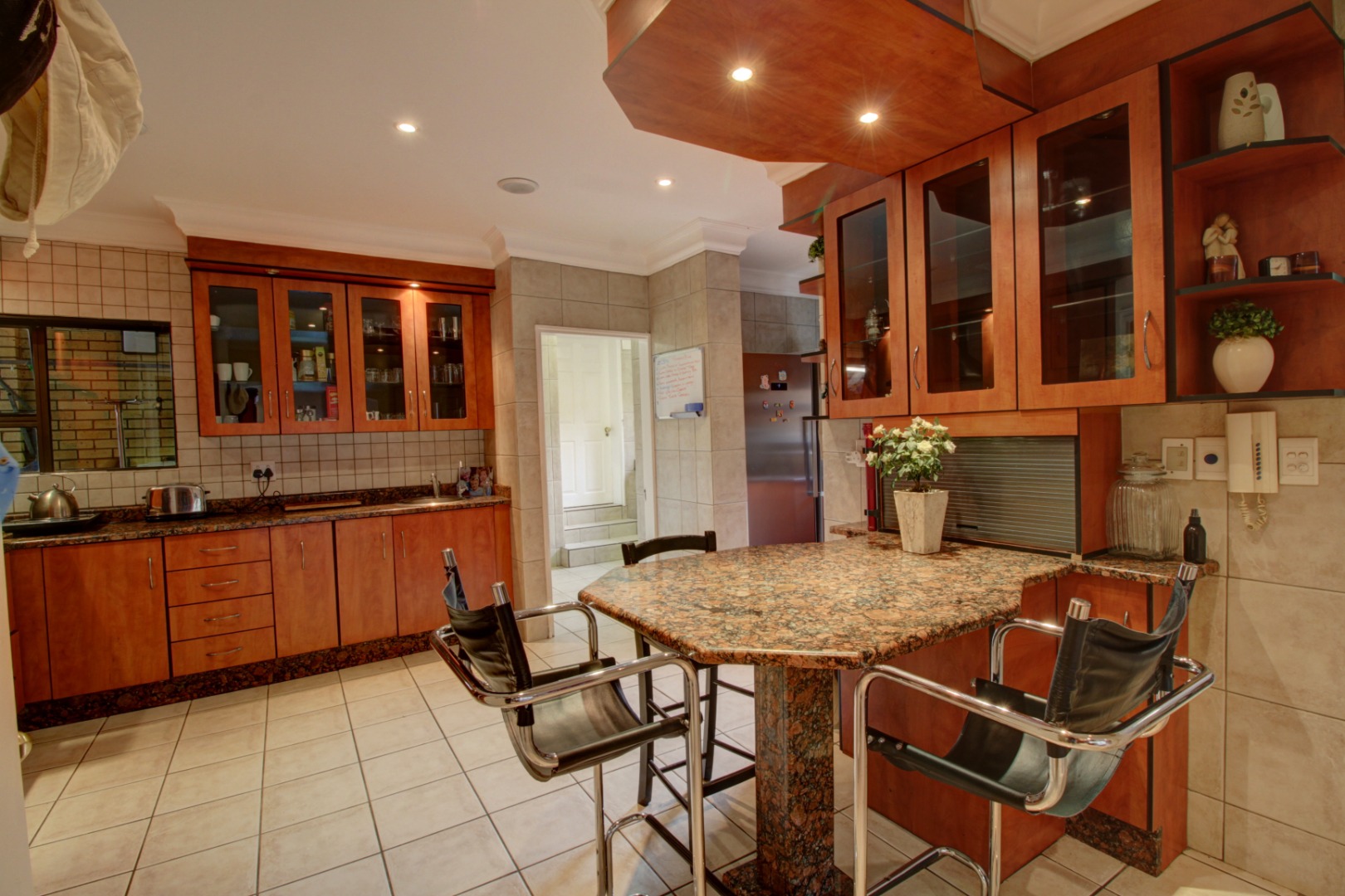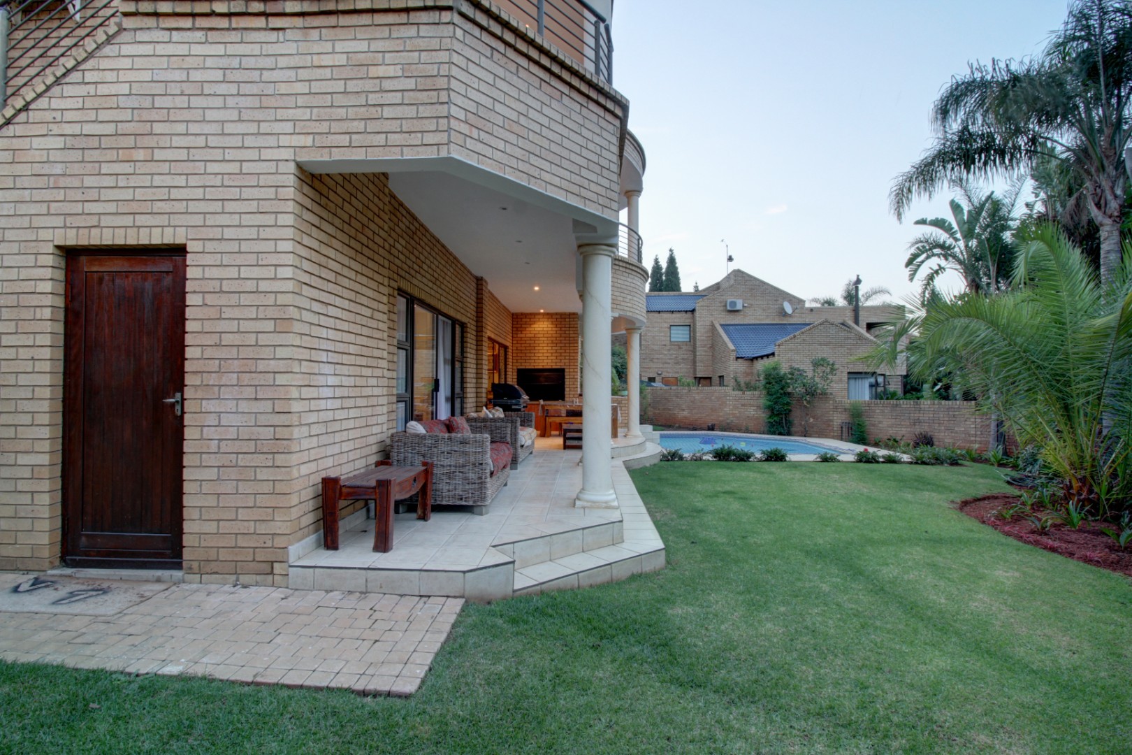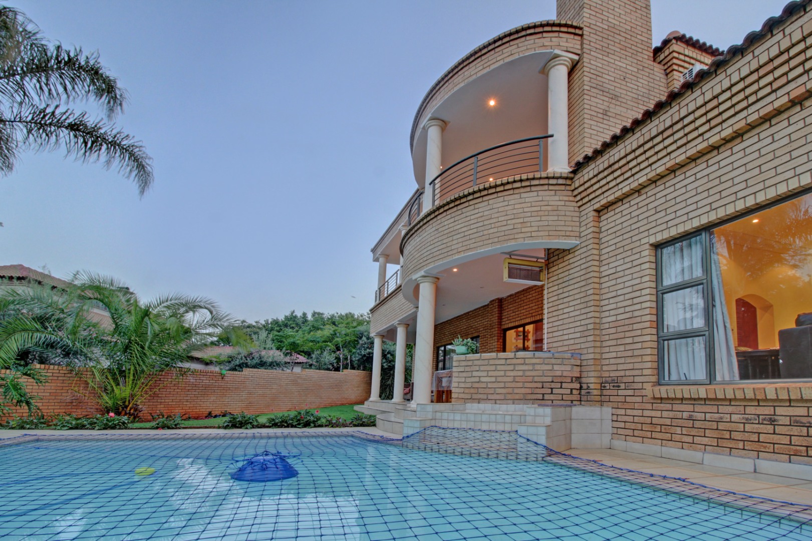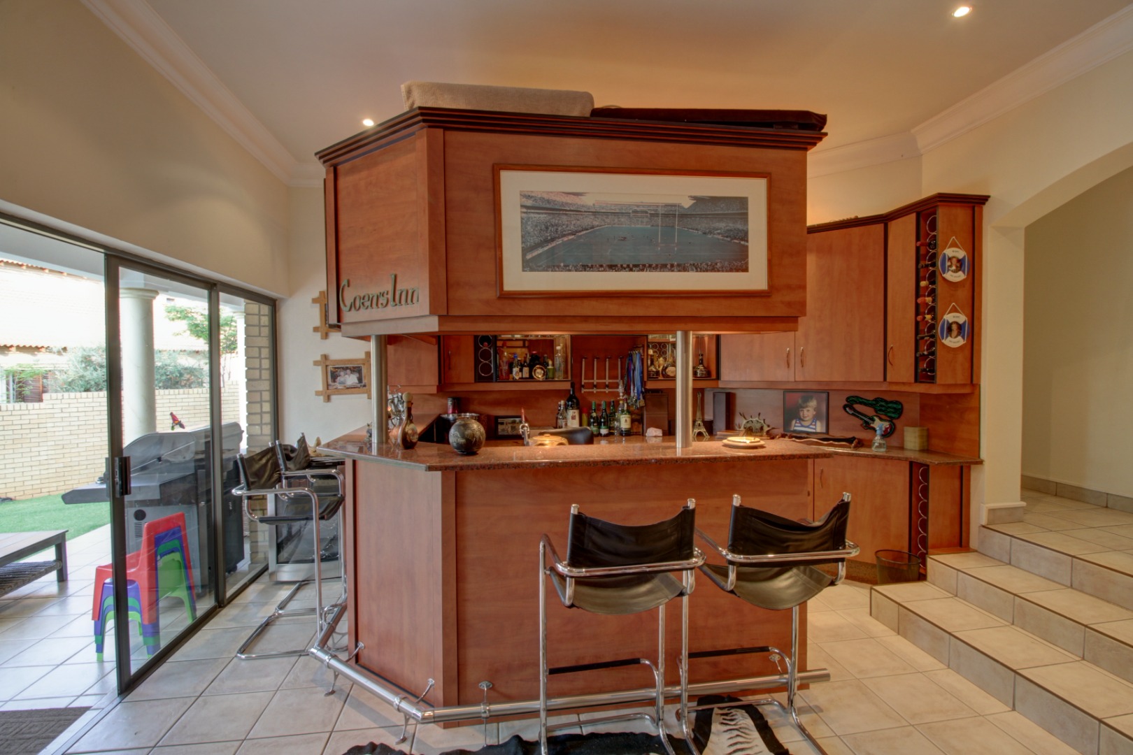 Nestled within the esteemed Woodhill Golf Estate in Pretoria, this impressive multi-story residence presents a harmonious blend of classic design and modern comfort. The property immediately captivates with its well-maintained brick exterior, complemented by a neat paved driveway leading to a double garage, offering ample parking for residents and guests. Its secure and private entrance, enhanced by manicured landscaping, sets a welcoming tone for what lies within this exclusive security estate. Spanning an expansive 553 square metres under roof, the interior of this home is designed for both grand entertaining and comfortable family living. Upon entering, an inviting reception area with an arched entryway and decorative pillars leads into the main living spaces. The residence boasts two generous lounges and a dedicated dining room, providing versatile areas for relaxation and formal gatherings. A separate family/TV room ensures ample space for diverse activities. Throughout the home, durable tiled flooring offers practicality and a cohesive aesthetic, while recessed lighting creates a warm and inviting ambiance. The heart of this home is its well-appointed kitchen, a culinary haven featuring warm wooden cabinetry that provides extensive storage, including elegant glass-fronted options. Durable granite countertops offer ample preparation space, complemented by a practical built-in breakfast bar, perfect for casual meals or morning coffee. Equipped with modern amenities and benefiting from a dedicated pantry, this kitchen is designed to cater to every culinary need. The thoughtful layout ensures functionality while maintaining a welcoming atmosphere for family and friends. Ascending the elegant tiled staircase, featuring a contemporary glass and dark metal railing, reveals the private quarters of the home. This residence offers four spacious bedrooms, each designed as a tranquil retreat. The three well-appointed bathrooms include two luxurious en-suites, providing ultimate privacy and convenience. An additional guest toilet on the main level further enhances the home's functionality. These private spaces are thoughtfully designed to offer comfort and serenity, ensuring a peaceful haven for all occupants. The outdoor areas are an extension of the home's luxurious living, perfect for the South African climate. A private swimming pool offers a refreshing escape, complemented by a large covered patio, ideal for alfresco dining and entertaining. Multiple balconies provide elevated views and additional outdoor relaxation spots. The well-maintained garden offers a serene backdrop for outdoor activities, and with pets allowed, it’s a perfect environment for the entire family. As part of a prestigious golf estate, residents enjoy direct access to world-class golfing facilities, enhancing the lifestyle appeal of this remarkable property. Security is paramount within this esteemed security estate, featuring a dedicated security post for peace of mind. Modern connectivity is ensured with fibre internet access, catering to contemporary work-from-home or entertainment needs. This property represents an exceptional opportunity to acquire a substantial family home within a sought-after golf estate, offering a blend of spacious living, premium amenities, and a secure, vibrant community lifestyle in Woodhill, Pretoria. Key Features: * Four spacious bedrooms and three bathrooms (two en-suite) * Two lounges, a dining room, and a family/TV room * Well-appointed kitchen with wooden cabinetry and granite countertops * Private swimming pool and large covered patio * Multiple balconies for outdoor enjoyment * Double garage and two additional parking spaces * Located within a secure golf estate with a security post * Fibre internet connectivity available * Pets are allowed * Generous Erf Size of 903 sqm and Floor Size of 553 sqm