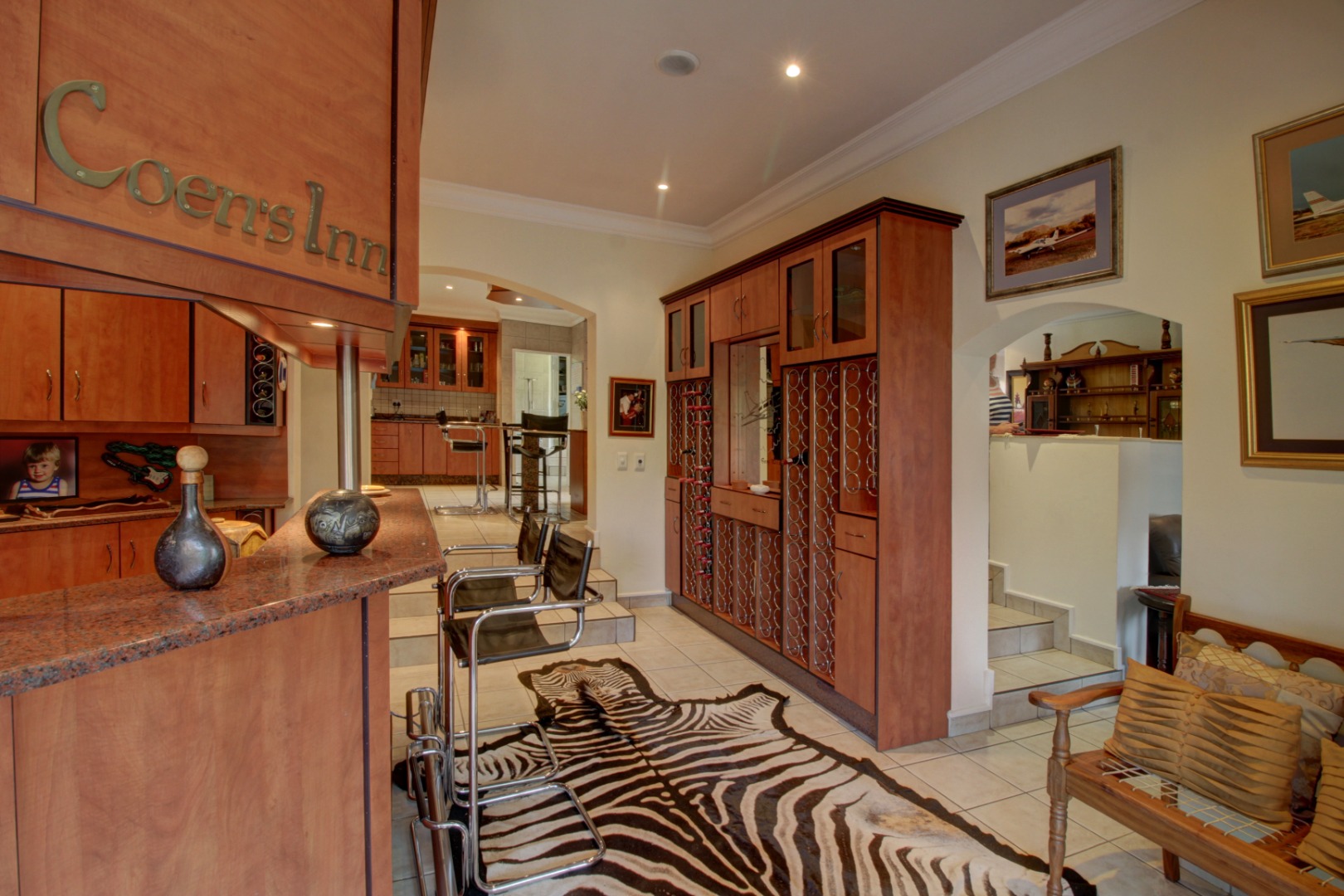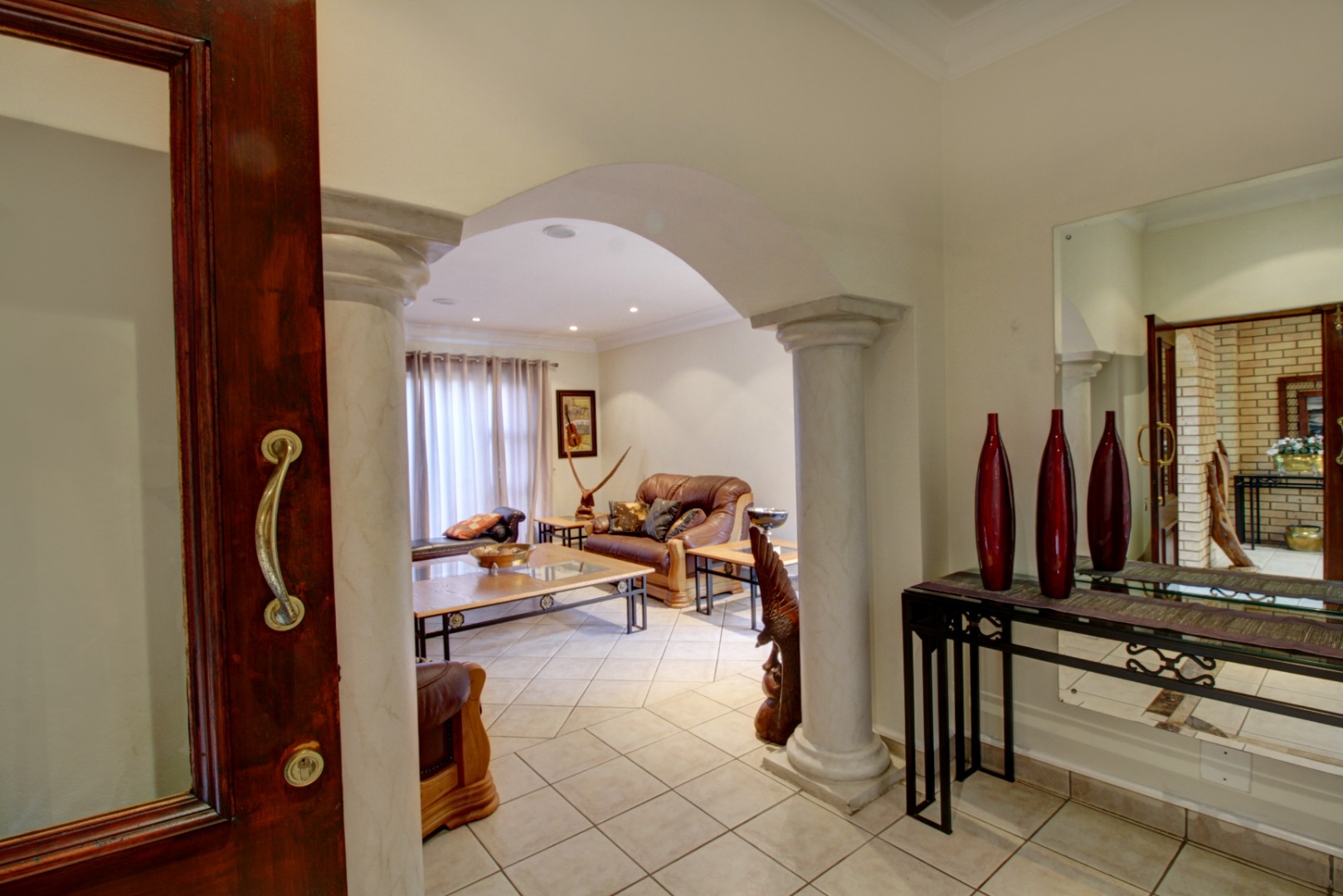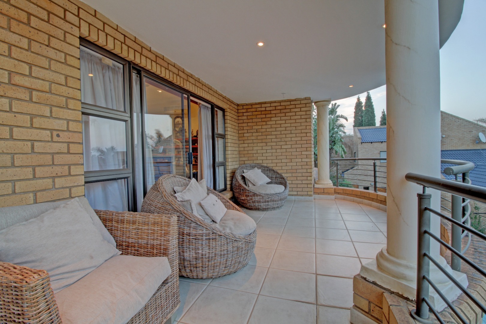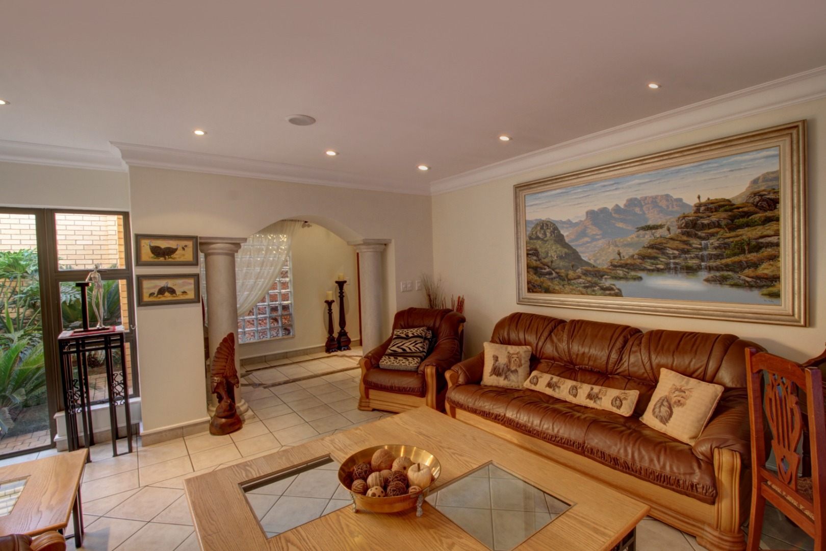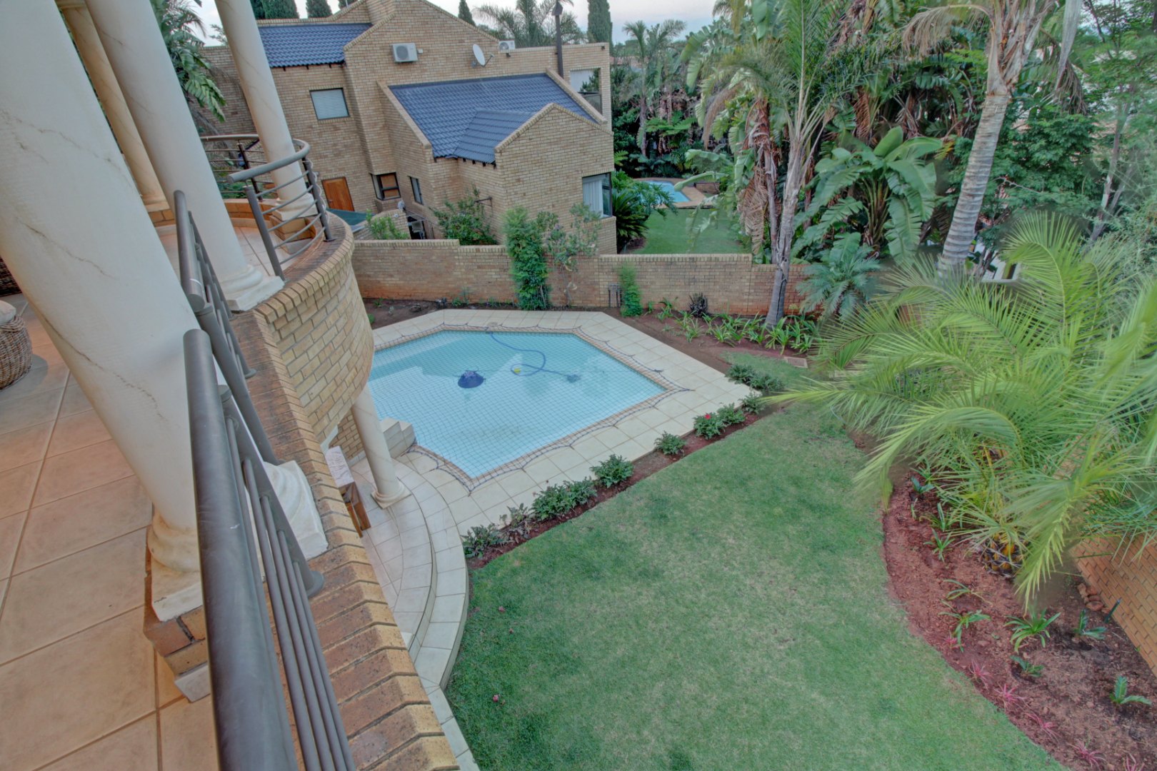 Nestled within the esteemed Woodhill Golf Estate in Pretoria, this impressive multi-story residence presents a harmonious blend of classic design and modern comfort. The property immediately captivates with its well-maintained brick exterior, complemented by a neat paved driveway leading to a double garage, offering ample parking for residents and guests. Its secure and private entrance, enhanced by manicured landscaping, sets a welcoming tone for what lies within this exclusive security estate. Spanning an expansive 553 square metres under roof, the interior of this home is designed for both grand entertaining and comfortable family living. Upon entering, an inviting reception area with an arched entryway and decorative pillars leads into the main living spaces. The residence boasts two generous lounges and a dedicated dining room, providing versatile areas for relaxation and formal gatherings. A separate family/TV room ensures ample space for diverse activities. Throughout the home, durable tiled flooring offers practicality and a cohesive aesthetic, while recessed lighting creates a warm and inviting ambiance. The heart of this home is its well-appointed kitchen, a culinary haven featuring warm wooden cabinetry that provides extensive storage, including elegant glass-fronted options. Durable granite countertops offer ample preparation space, complemented by a practical built-in breakfast bar, perfect for casual meals or morning coffee. Equipped with modern amenities and benefiting from a dedicated pantry, this kitchen is designed to cater to every culinary need. The thoughtful layout ensures functionality while maintaining a welcoming atmosphere for family and friends. Ascending the elegant tiled staircase, featuring a contemporary glass and dark metal railing, reveals the private quarters of the home. This residence offers four spacious bedrooms, each designed as a tranquil retreat. The three well-appointed bathrooms include two luxurious en-suites, providing ultimate privacy and convenience. An additional guest toilet on the main level further enhances the home's functionality. These private spaces are thoughtfully designed to offer comfort and serenity, ensuring a peaceful haven for all occupants. The outdoor areas are an extension of the home's luxurious living, perfect for the South African climate. A private swimming pool offers a refreshing escape, complemented by a large covered patio, ideal for alfresco dining and entertaining. Multiple balconies provide elevated views and additional outdoor relaxation spots. The well-maintained garden offers a serene backdrop for outdoor activities, and with pets allowed, it’s a perfect environment for the entire family. As part of a prestigious golf estate, residents enjoy direct access to world-class golfing facilities, enhancing the lifestyle appeal of this remarkable property. Security is paramount within this esteemed security estate, featuring a dedicated security post for peace of mind. Modern connectivity is ensured with fibre internet access, catering to contemporary work-from-home or entertainment needs. This property represents an exceptional opportunity to acquire a substantial family home within a sought-after golf estate, offering a blend of spacious living, premium amenities, and a secure, vibrant community lifestyle in Woodhill, Pretoria. Key Features: * Four spacious bedrooms and three bathrooms (two en-suite) * Two lounges, a dining room, and a family/TV room * Well-appointed kitchen with wooden cabinetry and granite countertops * Private swimming pool and large covered patio * Multiple balconies for outdoor enjoyment * Double garage and two additional parking spaces * Located within a secure golf estate with a security post * Fibre internet connectivity available * Pets are allowed * Generous Erf Size of 903 sqm and Floor Size of 553 sqm