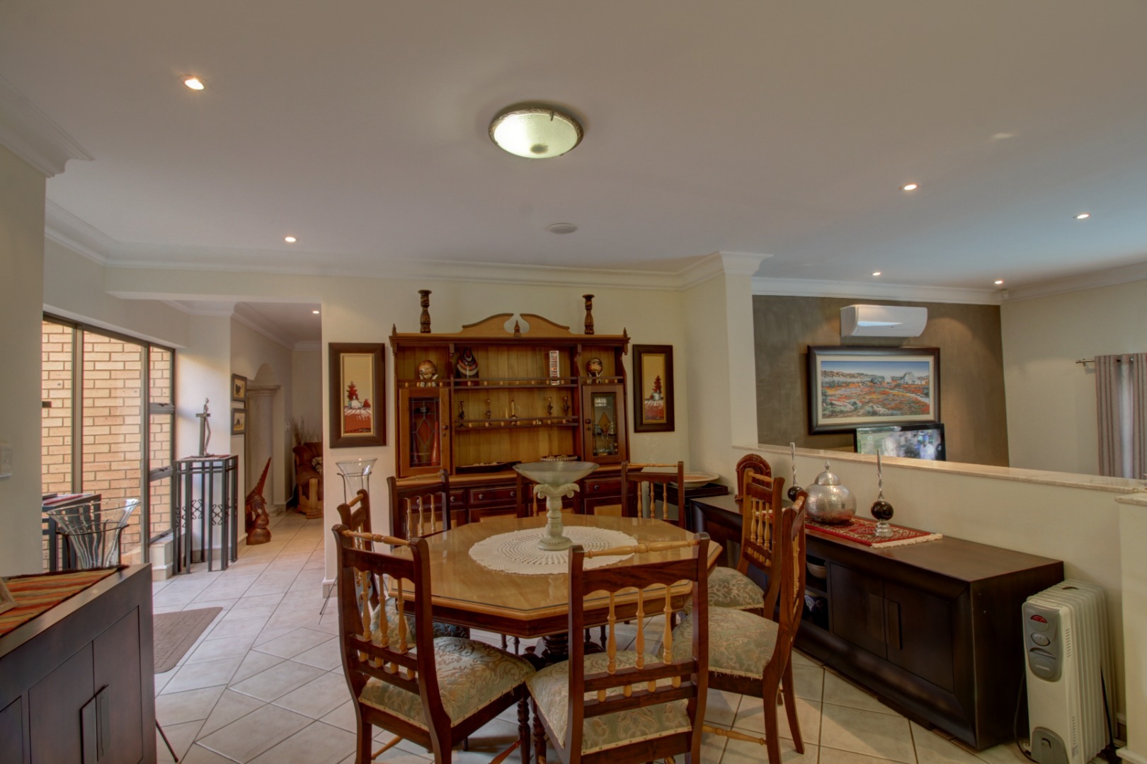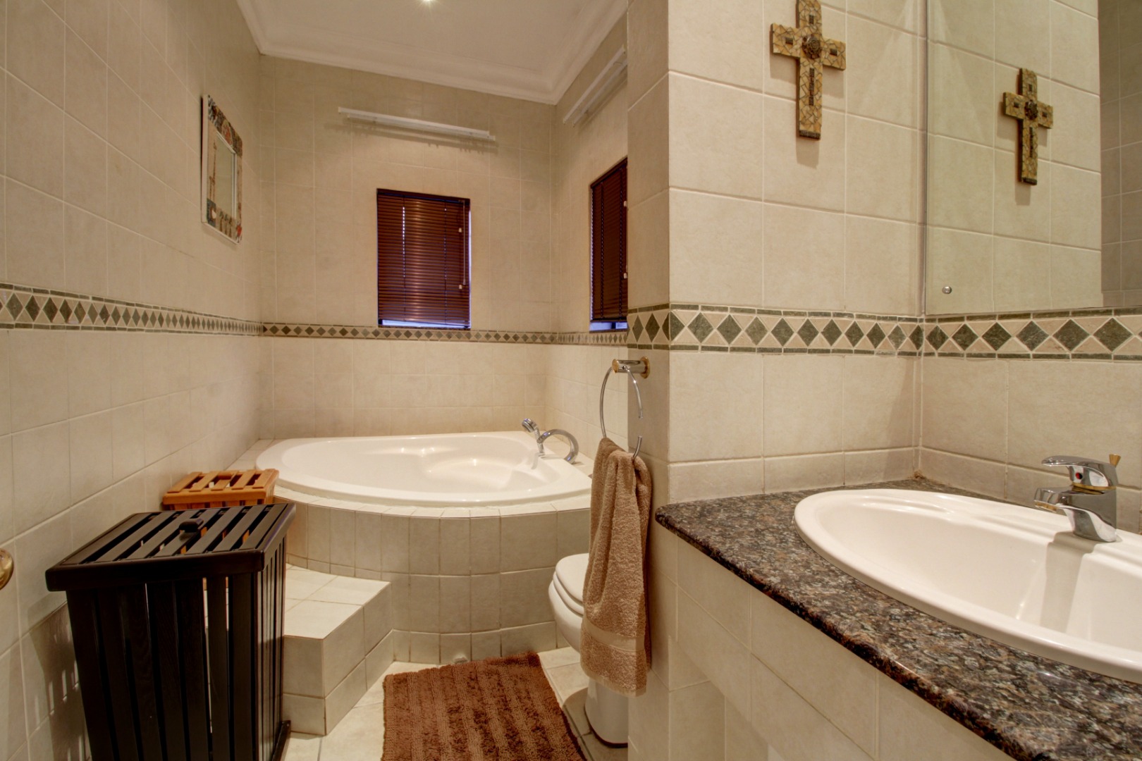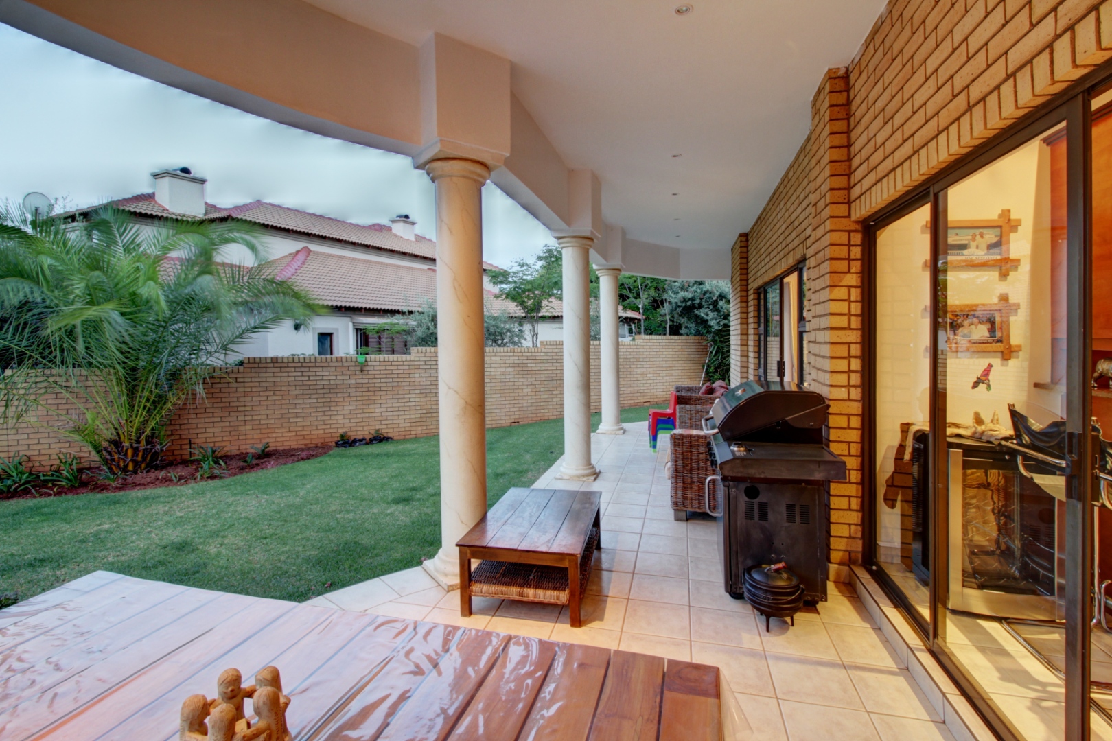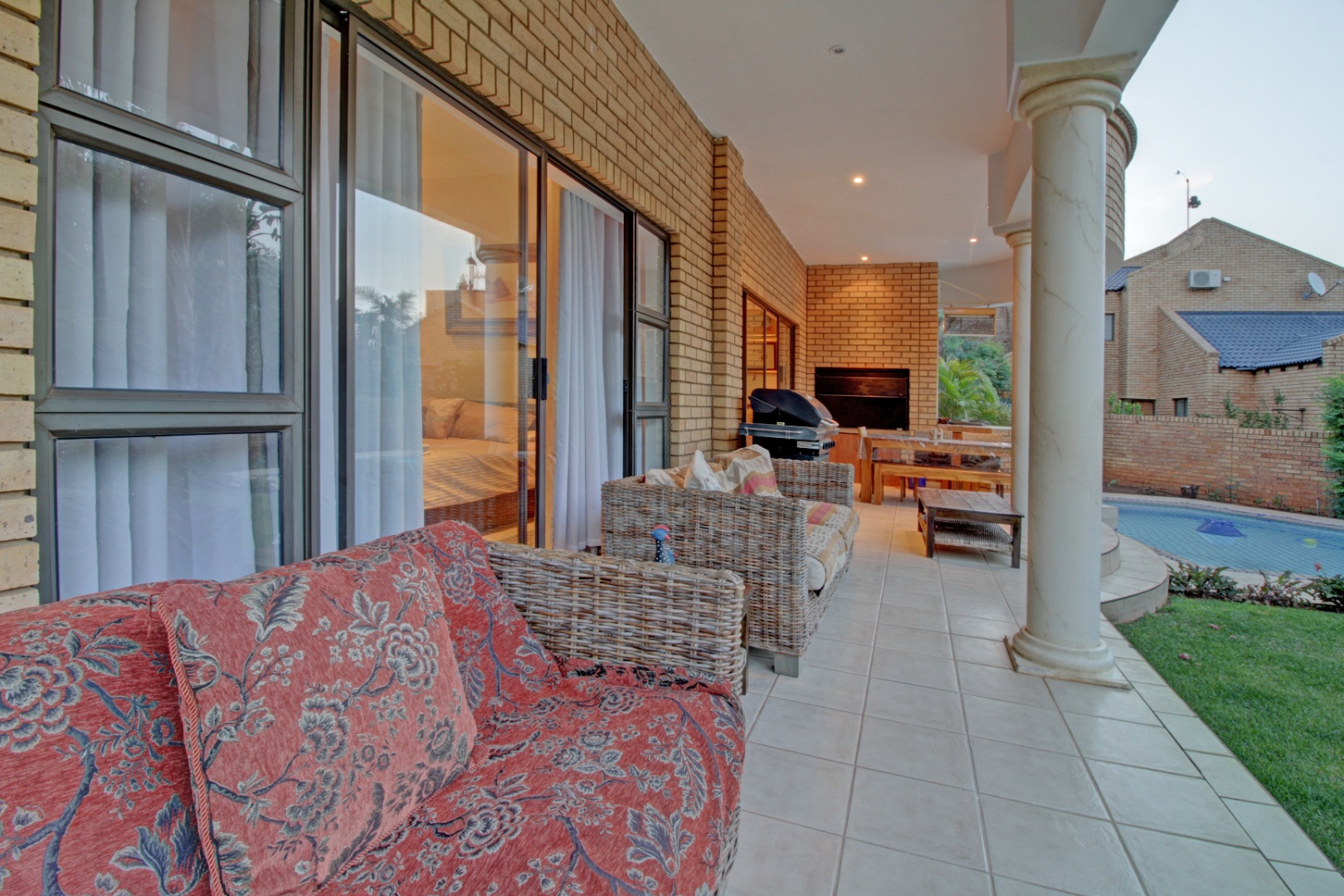 Nestled within the esteemed Woodhill Golf Estate in Pretoria, this impressive multi-story residence presents a harmonious blend of classic design and modern comfort. The property immediately captivates with its well-maintained brick exterior, complemented by a neat paved driveway leading to a double garage, offering ample parking for residents and guests. Its secure and private entrance, enhanced by manicured landscaping, sets a welcoming tone for what lies within this exclusive security estate. Spanning an expansive 553 square metres under roof, the interior of this home is designed for both grand entertaining and comfortable family living. Upon entering, an inviting reception area with an arched entryway and decorative pillars leads into the main living spaces. The residence boasts two generous lounges and a dedicated dining room, providing versatile areas for relaxation and formal gatherings. A separate family/TV room ensures ample space for diverse activities. Throughout the home, durable tiled flooring offers practicality and a cohesive aesthetic, while recessed lighting creates a warm and inviting ambiance. The heart of this home is its well-appointed kitchen, a culinary haven featuring warm wooden cabinetry that provides extensive storage, including elegant glass-fronted options. Durable granite countertops offer ample preparation space, complemented by a practical built-in breakfast bar, perfect for casual meals or morning coffee. Equipped with modern amenities and benefiting from a dedicated pantry, this kitchen is designed to cater to every culinary need. The thoughtful layout ensures functionality while maintaining a welcoming atmosphere for family and friends. Ascending the elegant tiled staircase, featuring a contemporary glass and dark metal railing, reveals the private quarters of the home. This residence offers four spacious bedrooms, each designed as a tranquil retreat. The three well-appointed bathrooms include two luxurious en-suites, providing ultimate privacy and convenience. An additional guest toilet on the main level further enhances the home's functionality. These private spaces are thoughtfully designed to offer comfort and serenity, ensuring a peaceful haven for all occupants. The outdoor areas are an extension of the home's luxurious living, perfect for the South African climate. A private swimming pool offers a refreshing escape, complemented by a large covered patio, ideal for alfresco dining and entertaining. Multiple balconies provide elevated views and additional outdoor relaxation spots. The well-maintained garden offers a serene backdrop for outdoor activities, and with pets allowed, it’s a perfect environment for the entire family. As part of a prestigious golf estate, residents enjoy direct access to world-class golfing facilities, enhancing the lifestyle appeal of this remarkable property. Security is paramount within this esteemed security estate, featuring a dedicated security post for peace of mind. Modern connectivity is ensured with fibre internet access, catering to contemporary work-from-home or entertainment needs. This property represents an exceptional opportunity to acquire a substantial family home within a sought-after golf estate, offering a blend of spacious living, premium amenities, and a secure, vibrant community lifestyle in Woodhill, Pretoria. Key Features: * Four spacious bedrooms and three bathrooms (two en-suite) * Two lounges, a dining room, and a family/TV room * Well-appointed kitchen with wooden cabinetry and granite countertops * Private swimming pool and large covered patio * Multiple balconies for outdoor enjoyment * Double garage and two additional parking spaces * Located within a secure golf estate with a security post * Fibre internet connectivity available * Pets are allowed * Generous Erf Size of 903 sqm and Floor Size of 553 sqm