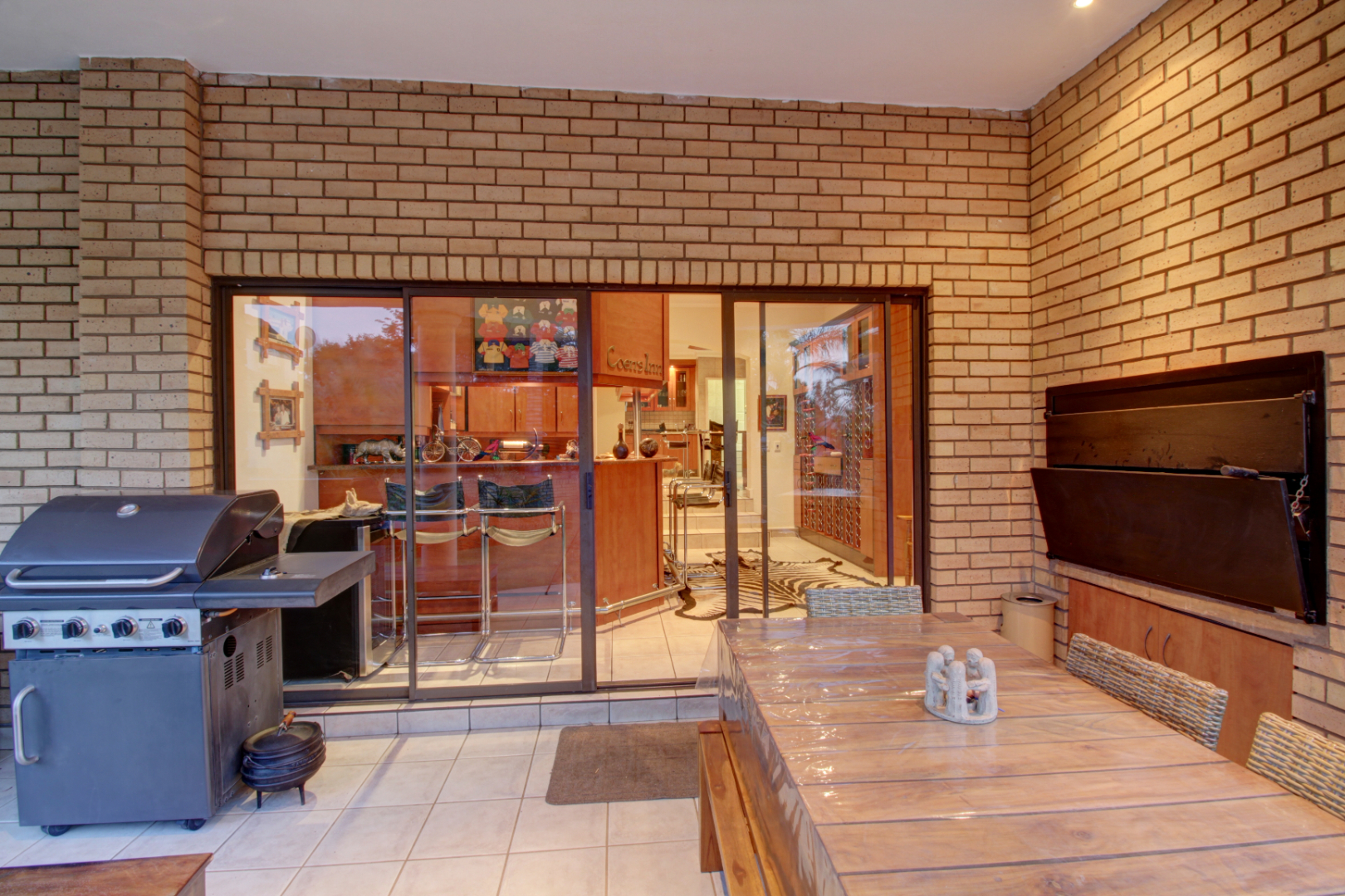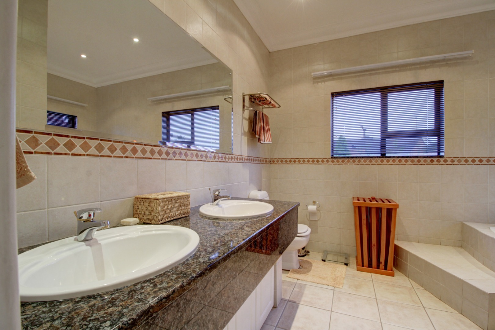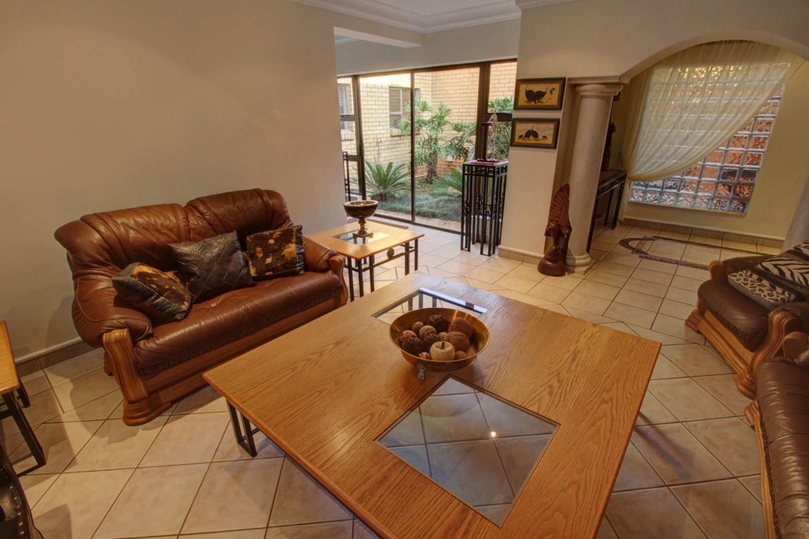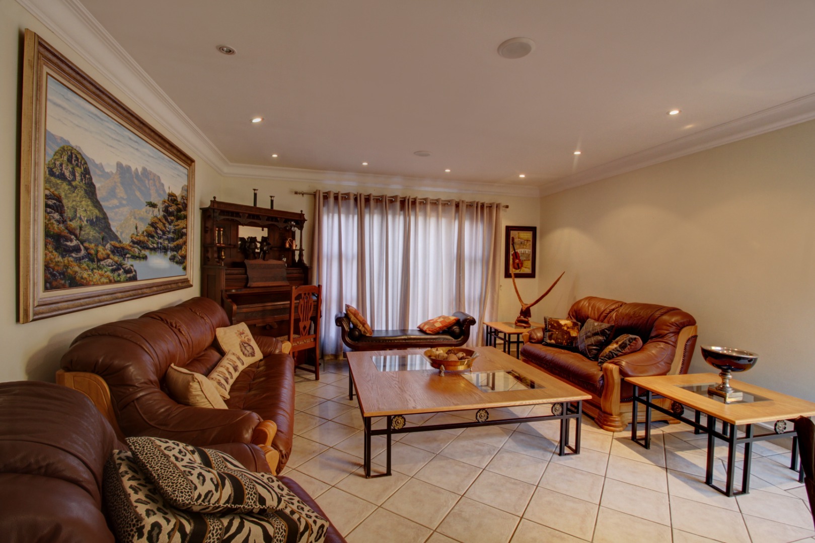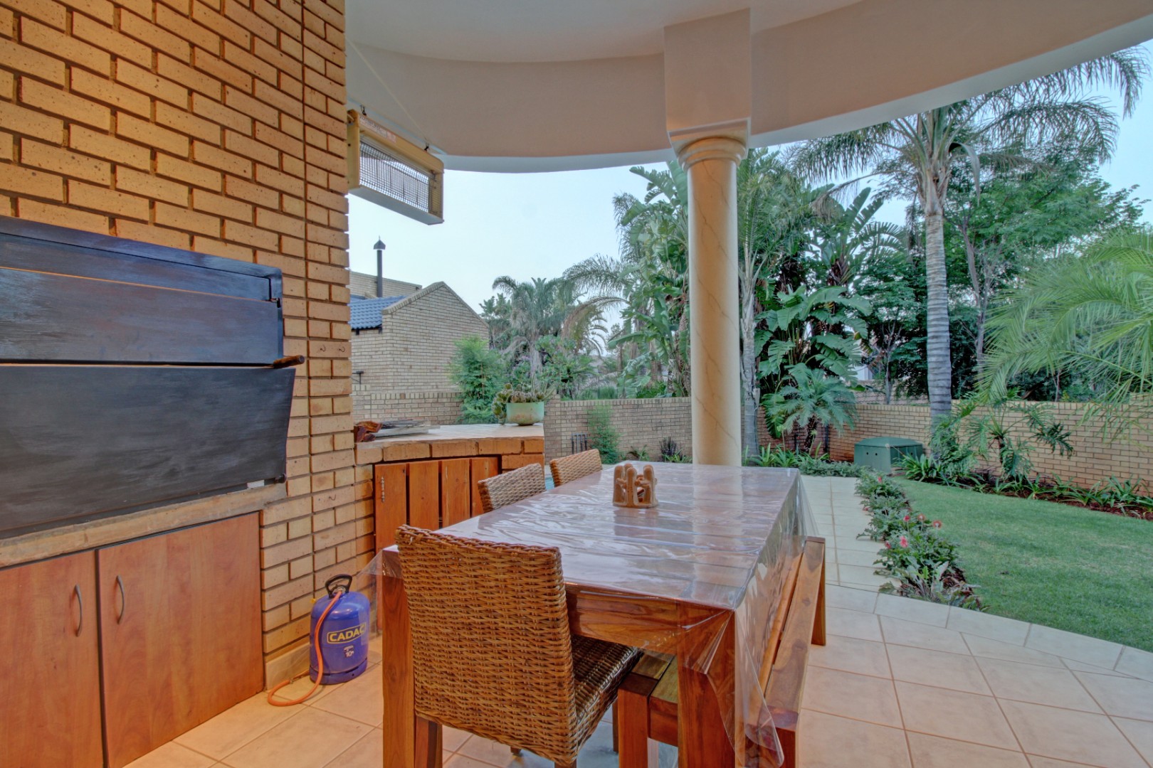 Nestled within the esteemed Woodhill Golf Estate in Pretoria, this impressive multi-story residence presents a harmonious blend of classic design and modern comfort. The property immediately captivates with its well-maintained brick exterior, complemented by a neat paved driveway leading to a double garage, offering ample parking for residents and guests. Its secure and private entrance, enhanced by manicured landscaping, sets a welcoming tone for what lies within this exclusive security estate. Spanning an expansive 553 square metres under roof, the interior of this home is designed for both grand entertaining and comfortable family living. Upon entering, an inviting reception area with an arched entryway and decorative pillars leads into the main living spaces. The residence boasts two generous lounges and a dedicated dining room, providing versatile areas for relaxation and formal gatherings. A separate family/TV room ensures ample space for diverse activities. Throughout the home, durable tiled flooring offers practicality and a cohesive aesthetic, while recessed lighting creates a warm and inviting ambiance. The heart of this home is its well-appointed kitchen, a culinary haven featuring warm wooden cabinetry that provides extensive storage, including elegant glass-fronted options. Durable granite countertops offer ample preparation space, complemented by a practical built-in breakfast bar, perfect for casual meals or morning coffee. Equipped with modern amenities and benefiting from a dedicated pantry, this kitchen is designed to cater to every culinary need. The thoughtful layout ensures functionality while maintaining a welcoming atmosphere for family and friends. Ascending the elegant tiled staircase, featuring a contemporary glass and dark metal railing, reveals the private quarters of the home. This residence offers four spacious bedrooms, each designed as a tranquil retreat. The three well-appointed bathrooms include two luxurious en-suites, providing ultimate privacy and convenience. An additional guest toilet on the main level further enhances the home's functionality. These private spaces are thoughtfully designed to offer comfort and serenity, ensuring a peaceful haven for all occupants. The outdoor areas are an extension of the home's luxurious living, perfect for the South African climate. A private swimming pool offers a refreshing escape, complemented by a large covered patio, ideal for alfresco dining and entertaining. Multiple balconies provide elevated views and additional outdoor relaxation spots. The well-maintained garden offers a serene backdrop for outdoor activities, and with pets allowed, it’s a perfect environment for the entire family. As part of a prestigious golf estate, residents enjoy direct access to world-class golfing facilities, enhancing the lifestyle appeal of this remarkable property. Security is paramount within this esteemed security estate, featuring a dedicated security post for peace of mind. Modern connectivity is ensured with fibre internet access, catering to contemporary work-from-home or entertainment needs. This property represents an exceptional opportunity to acquire a substantial family home within a sought-after golf estate, offering a blend of spacious living, premium amenities, and a secure, vibrant community lifestyle in Woodhill, Pretoria. Key Features: * Four spacious bedrooms and three bathrooms (two en-suite) * Two lounges, a dining room, and a family/TV room * Well-appointed kitchen with wooden cabinetry and granite countertops * Private swimming pool and large covered patio * Multiple balconies for outdoor enjoyment * Double garage and two additional parking spaces * Located within a secure golf estate with a security post * Fibre internet connectivity available * Pets are allowed * Generous Erf Size of 903 sqm and Floor Size of 553 sqm