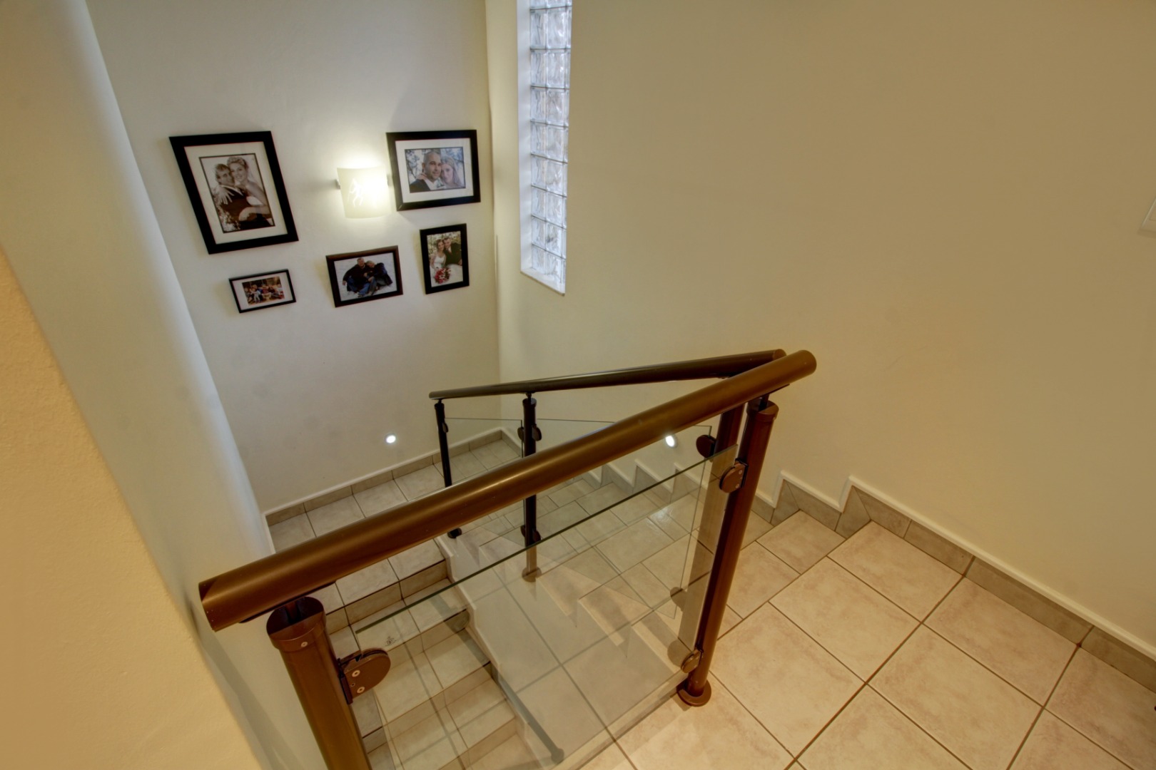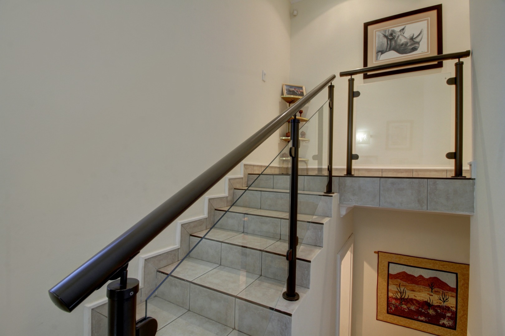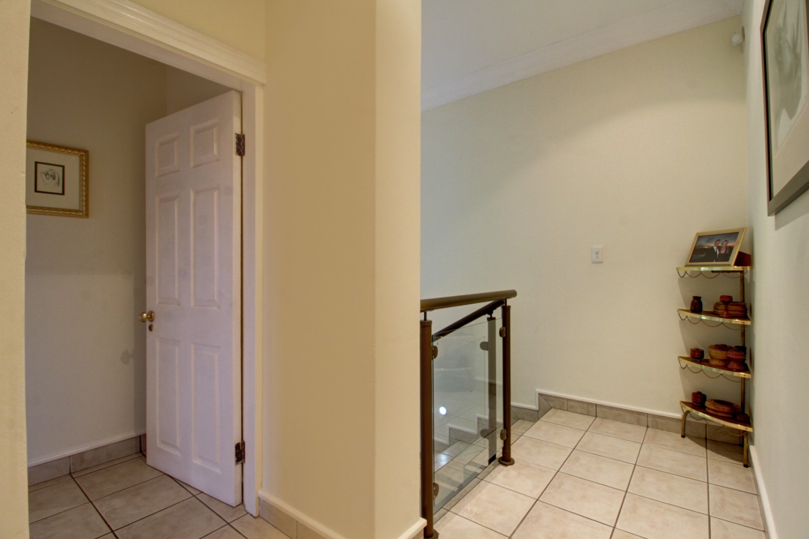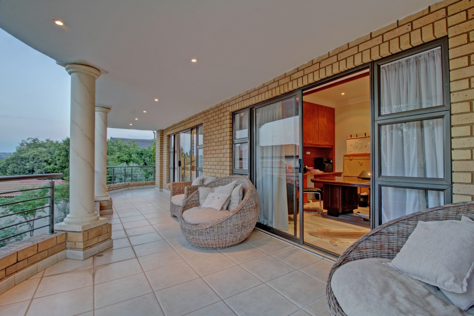Nestled within the esteemed Woodhill Golf Estate in Pretoria, this impressive multi-story residence presents a harmonious blend of classic design and modern comfort. The property immediately captivates with its well-maintained brick exterior, complemented by a neat paved driveway leading to a double garage, offering ample parking for residents and guests. Its secure and private entrance, enhanced by manicured landscaping, sets a welcoming tone for what lies within this exclusive security estate. Spanning an expansive 553 square metres under roof, the interior of this home is designed for both grand entertaining and comfortable family living. Upon entering, an inviting reception area with an arched entryway and decorative pillars leads into the main living spaces. The residence boasts two generous lounges and a dedicated dining room, providing versatile areas for relaxation and formal gatherings. A separate family/TV room ensures ample space for diverse activities. Throughout the home, durable tiled flooring offers practicality and a cohesive aesthetic, while recessed lighting creates a warm and inviting ambiance. The heart of this home is its well-appointed kitchen, a culinary haven featuring warm wooden cabinetry that provides extensive storage, including elegant glass-fronted options. Durable granite countertops offer ample preparation space, complemented by a practical built-in breakfast bar, perfect for casual meals or morning coffee. Equipped with modern amenities and benefiting from a dedicated pantry, this kitchen is designed to cater to every culinary need. The thoughtful layout ensures functionality while maintaining a welcoming atmosphere for family and friends. Ascending the elegant tiled staircase, featuring a contemporary glass and dark metal railing, reveals the private quarters of the home. This residence offers four spacious bedrooms, each designed as a tranquil retreat. The three well-appointed bathrooms include two luxurious en-suites, providing ultimate privacy and convenience. An additional guest toilet on the main level further enhances the home's functionality. These private spaces are thoughtfully designed to offer comfort and serenity, ensuring a peaceful haven for all occupants. The outdoor areas are an extension of the home's luxurious living, perfect for the South African climate. A private swimming pool offers a refreshing escape, complemented by a large covered patio, ideal for alfresco dining and entertaining. Multiple balconies provide elevated views and additional outdoor relaxation spots. The well-maintained garden offers a serene backdrop for outdoor activities, and with pets allowed, it’s a perfect environment for the entire family. As part of a prestigious golf estate, residents enjoy direct access to world-class golfing facilities, enhancing the lifestyle appeal of this remarkable property. Security is paramount within this esteemed security estate, featuring a dedicated security post for peace of mind. Modern connectivity is ensured with fibre internet access, catering to contemporary work-from-home or entertainment needs. This property represents an exceptional opportunity to acquire a substantial family home within a sought-after golf estate, offering a blend of spacious living, premium amenities, and a secure, vibrant community lifestyle in Woodhill, Pretoria. Key Features: * Four spacious bedrooms and three bathrooms (two en-suite) * Two lounges, a dining room, and a family/TV room * Well-appointed kitchen with wooden cabinetry and granite countertops * Private swimming pool and large covered patio * Multiple balconies for outdoor enjoyment * Double garage and two additional parking spaces * Located within a secure golf estate with a security post * Fibre internet connectivity available * Pets are allowed * Generous Erf Size of 903 sqm and Floor Size of 553 sqm