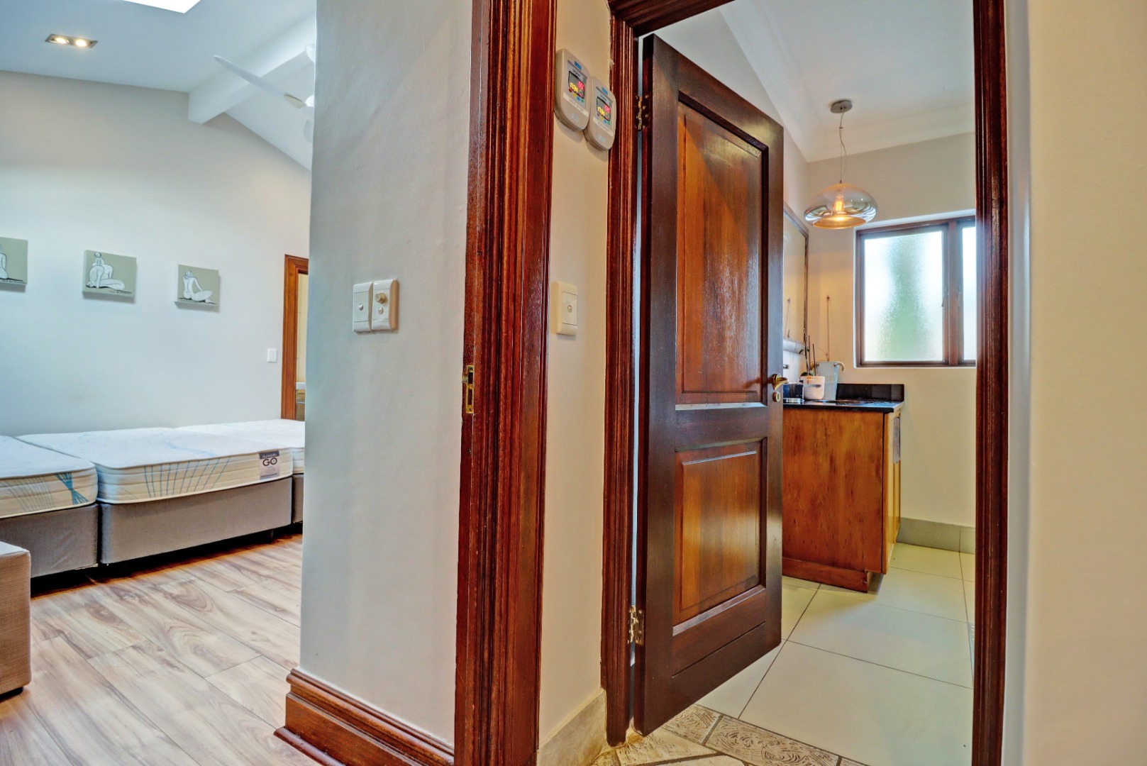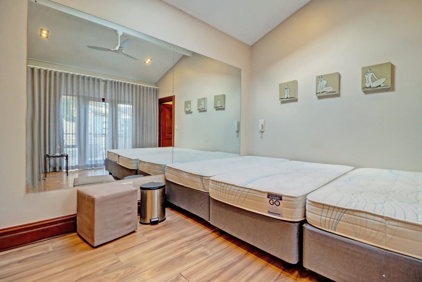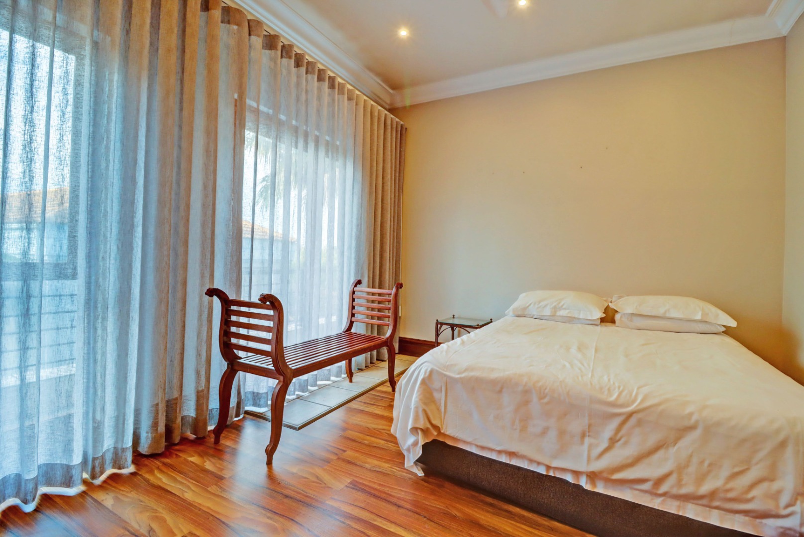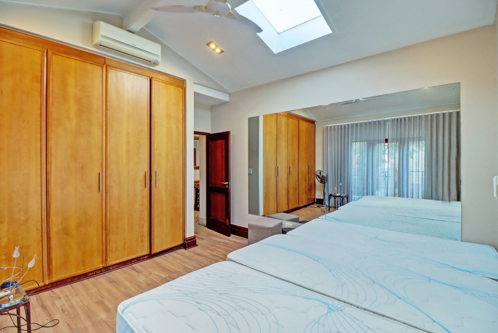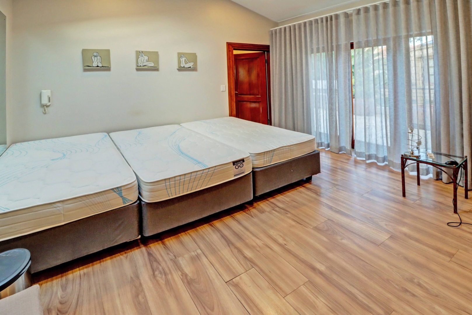 The residence features five generously sized bedrooms, each boasting its own en-suite bathroom for ultimate privacy and convenience, alongside a dedicated study. Outdoors, a private garden, refreshing pool, and built-in braai await, complemented by balconies offering scenic views. this beautiful home also offers a flatlet. As part of a secure estate with 24-hour security, residents benefit from access to the clubhouse and golf course. Modern amenities include air conditioning, high-speed fibre connectivity, a battery inverter, and water tanks for sustainable living.