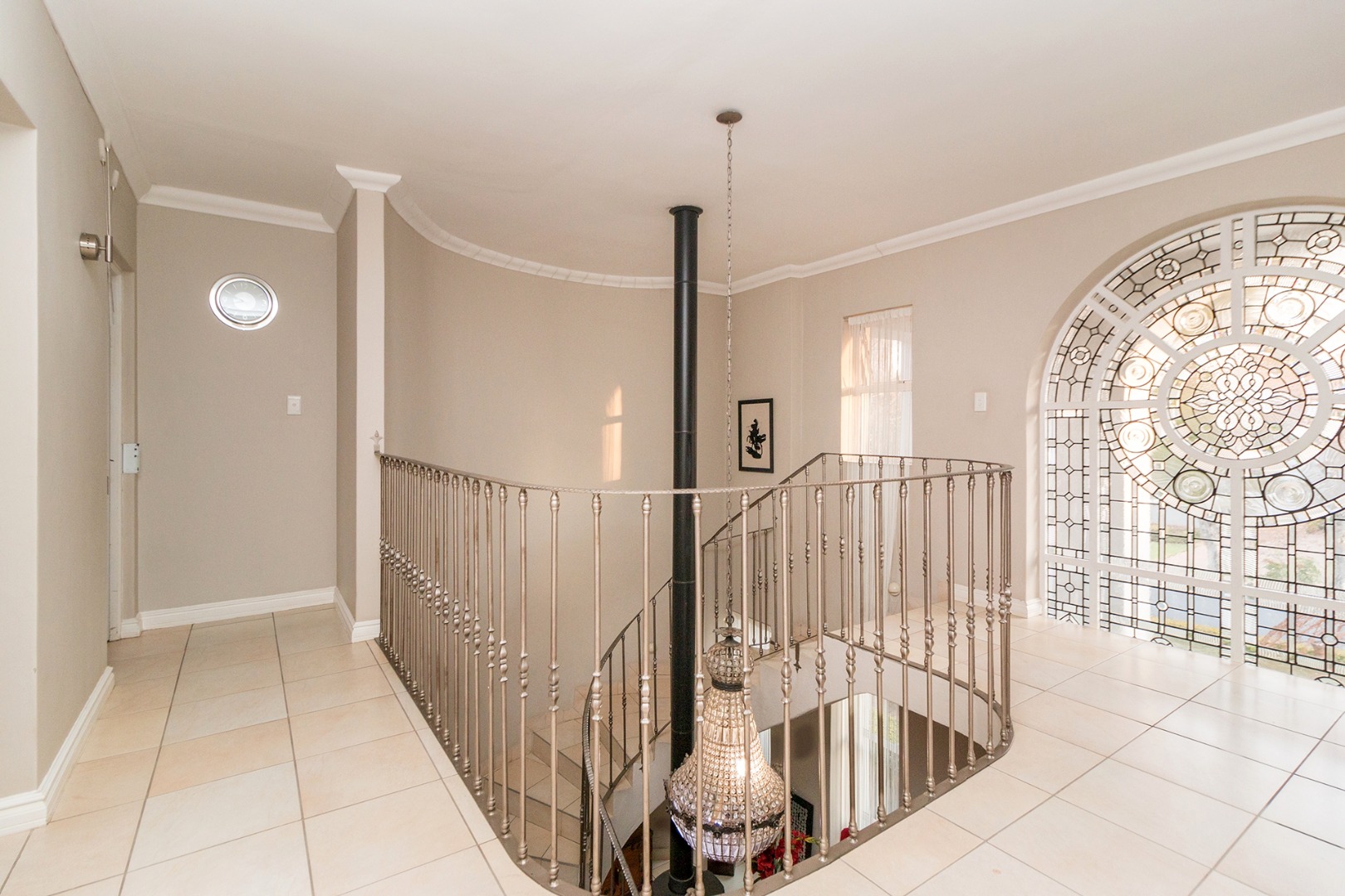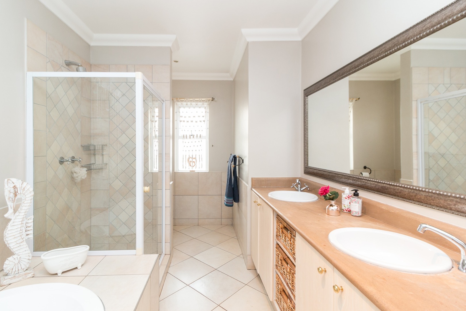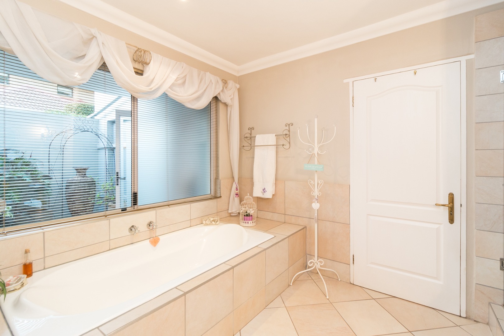 Five bedrooms and three bathrooms, each with its unique feature. The master suite has a private lounge, generous porch with a stunning view and full en-suite bathroom with spa bath. The rest of the bedrooms open onto a large, open balcony and indoor garden. All the bathrooms offer double basins with ample vanity cupboards, shower, bath and toilet.