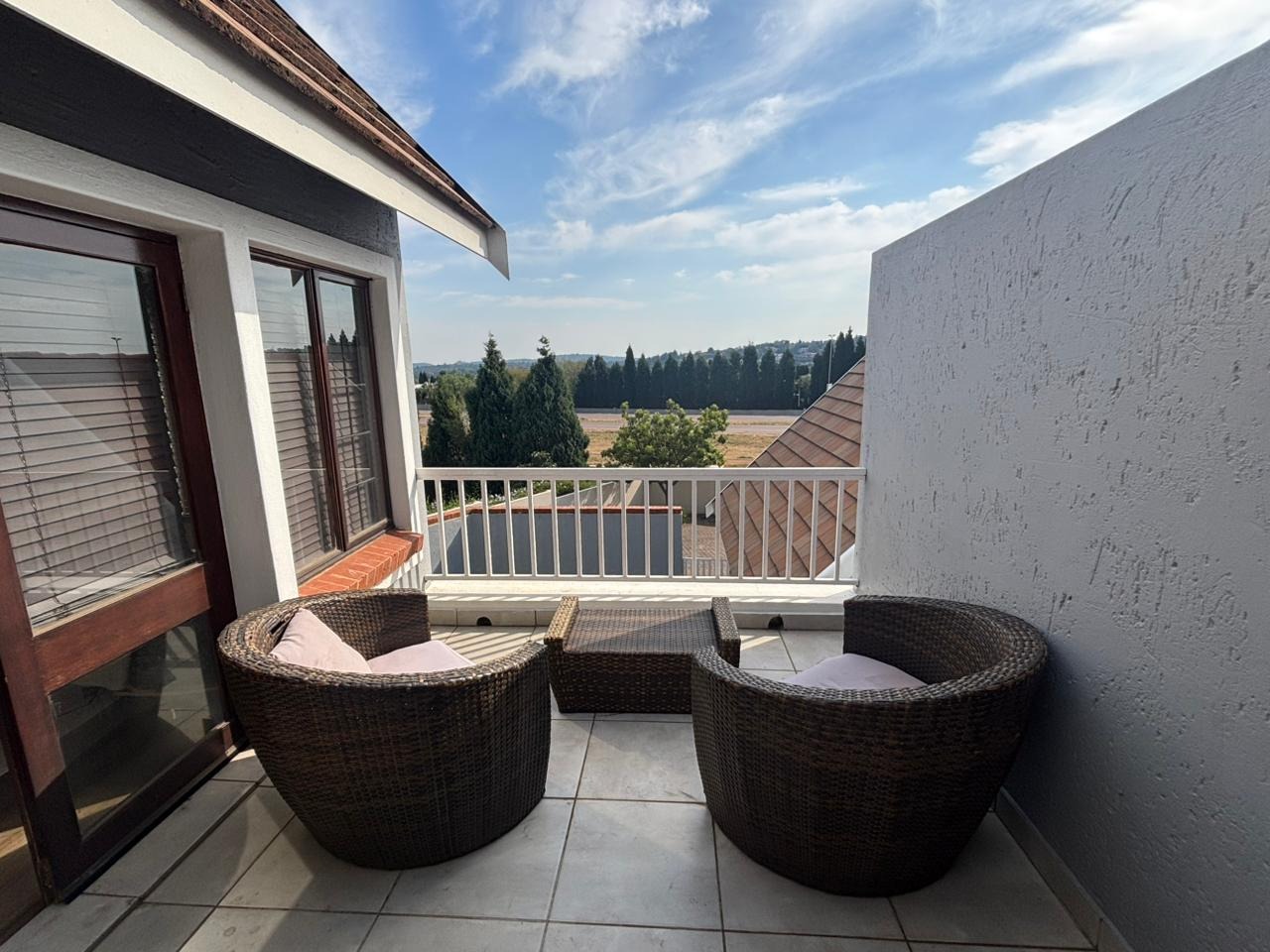 Outdoor living is a delight with a private garden and effortless entertaining from the dedicated enclosed patio, flowing into the garden with a built-in braai. The property is pet-friendly and includes staff quarters with a bathroom, adding to its functionality. Residents benefit from access to the estate's premium facilities, including a gym, clubhouse, squash court, and tennis court.