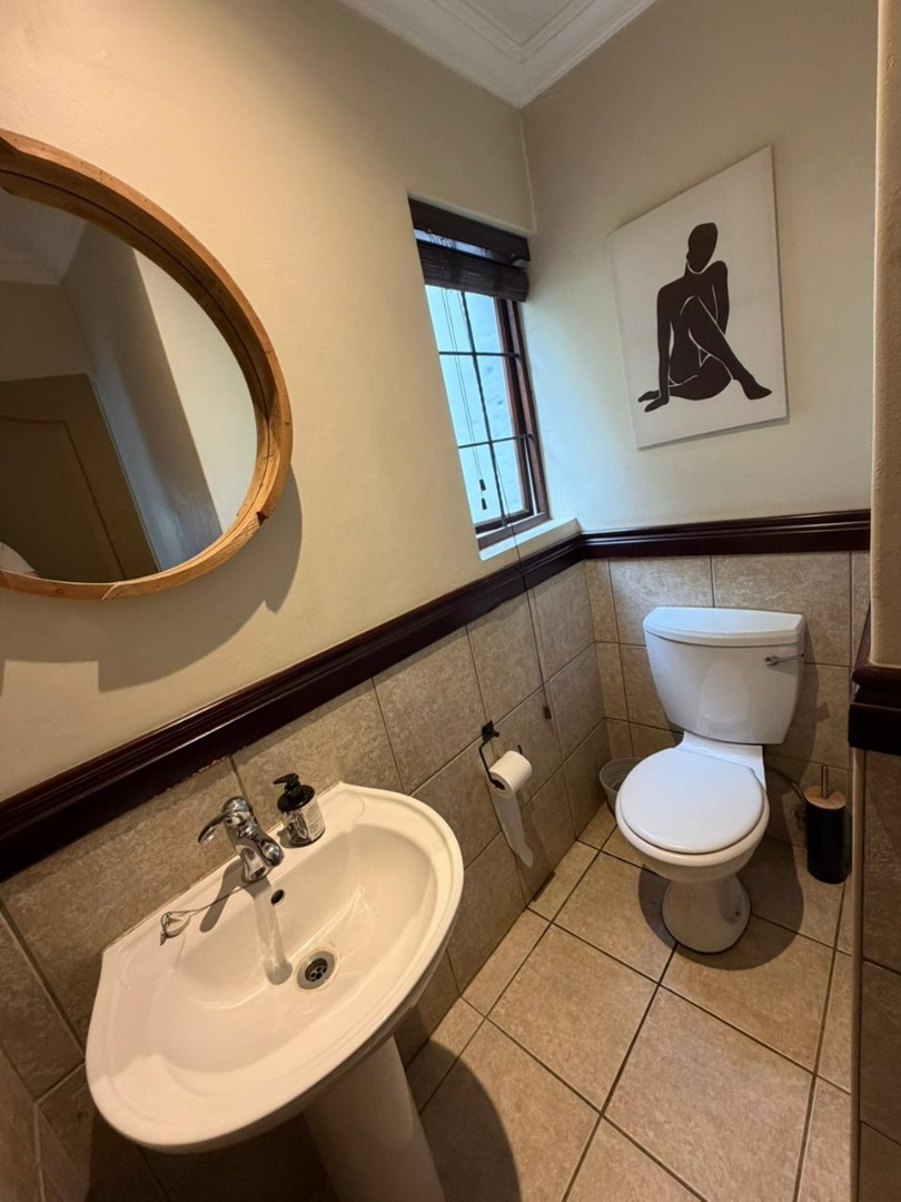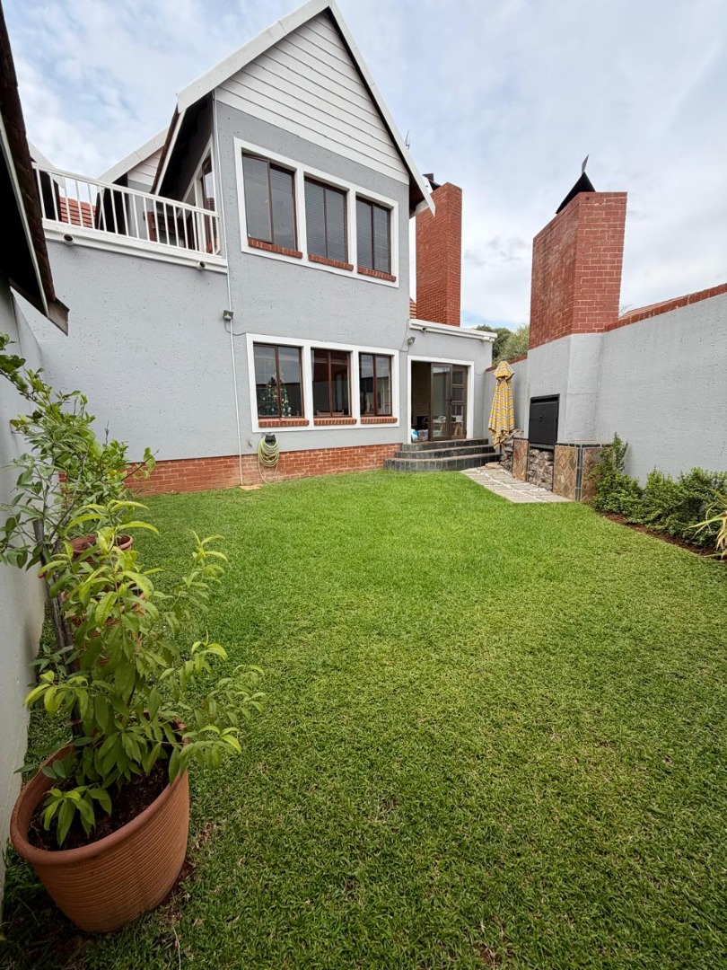 Outdoor living is a delight with a private garden and effortless entertaining from the dedicated enclosed patio, flowing into the garden with a built-in braai. The property is pet-friendly and includes staff quarters with a bathroom, adding to its functionality. Residents benefit from access to the estate's premium facilities, including a gym, clubhouse, squash court, and tennis court.