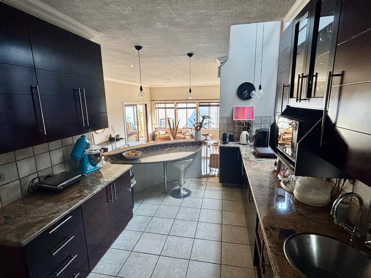 Step inside to an inviting open-plan layout, featuring two spacious lounges, one perfectly suited as a family TV room, and a dedicated dining area. A charming fireplace in an adjacent living area adds warmth and ambiance, while sliding doors seamlessly connect the interior to the outdoor living. A well-appointed kitchen with practical amenities such as a laundry and scullery and additional storage, enhance daily living, catering to all household needs.
