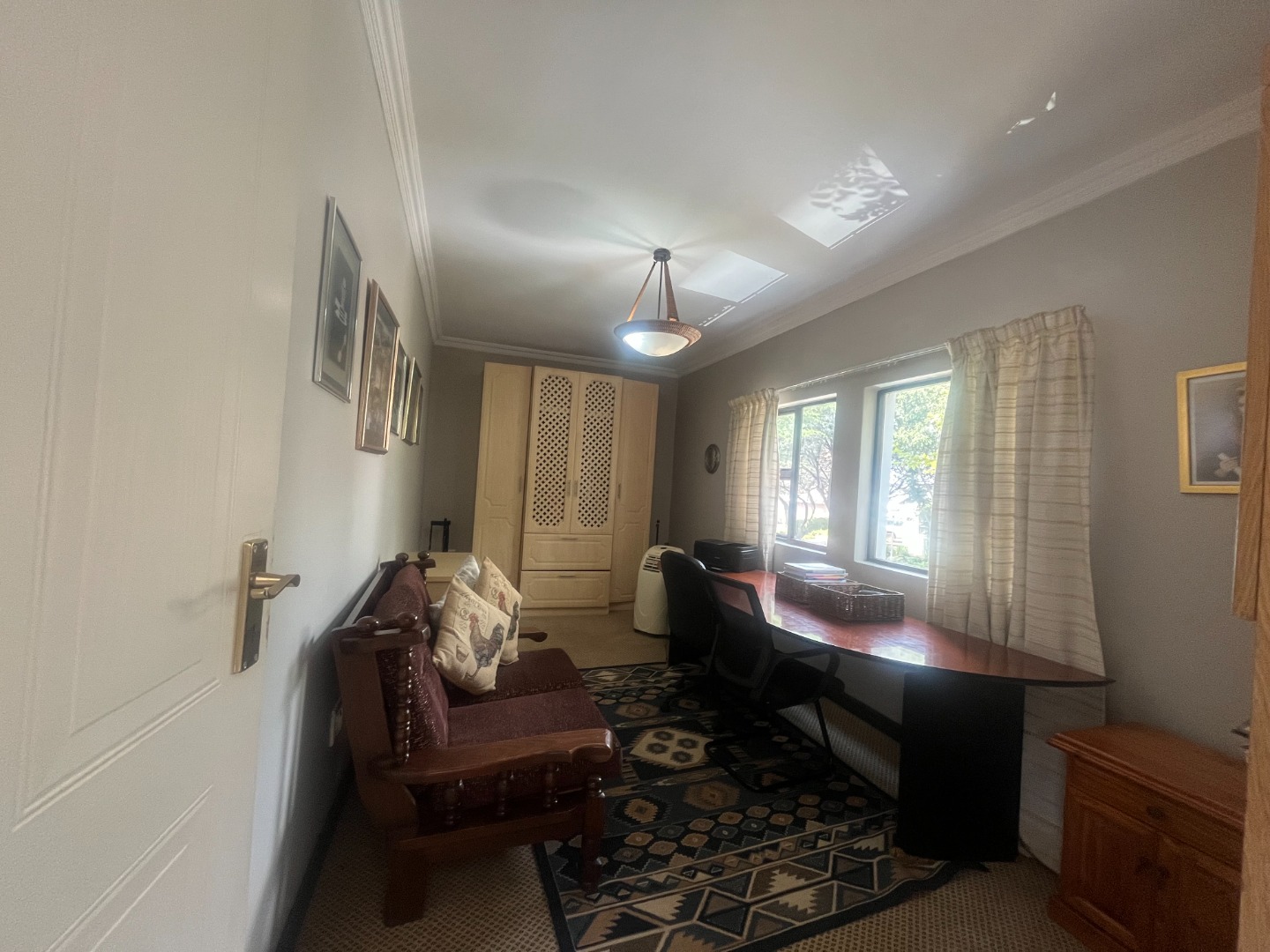 The interior features five well-appointed bedrooms and three bathrooms, including a lovely en-suite, providing ample space and privacy. The residence is designed for versatile living with two spacious lounges, a dedicated dining room, and a functional kitchen. Additional practical spaces include a study, an entrance hall, a guest toilet, and a family TV room, ensuring every need is met.