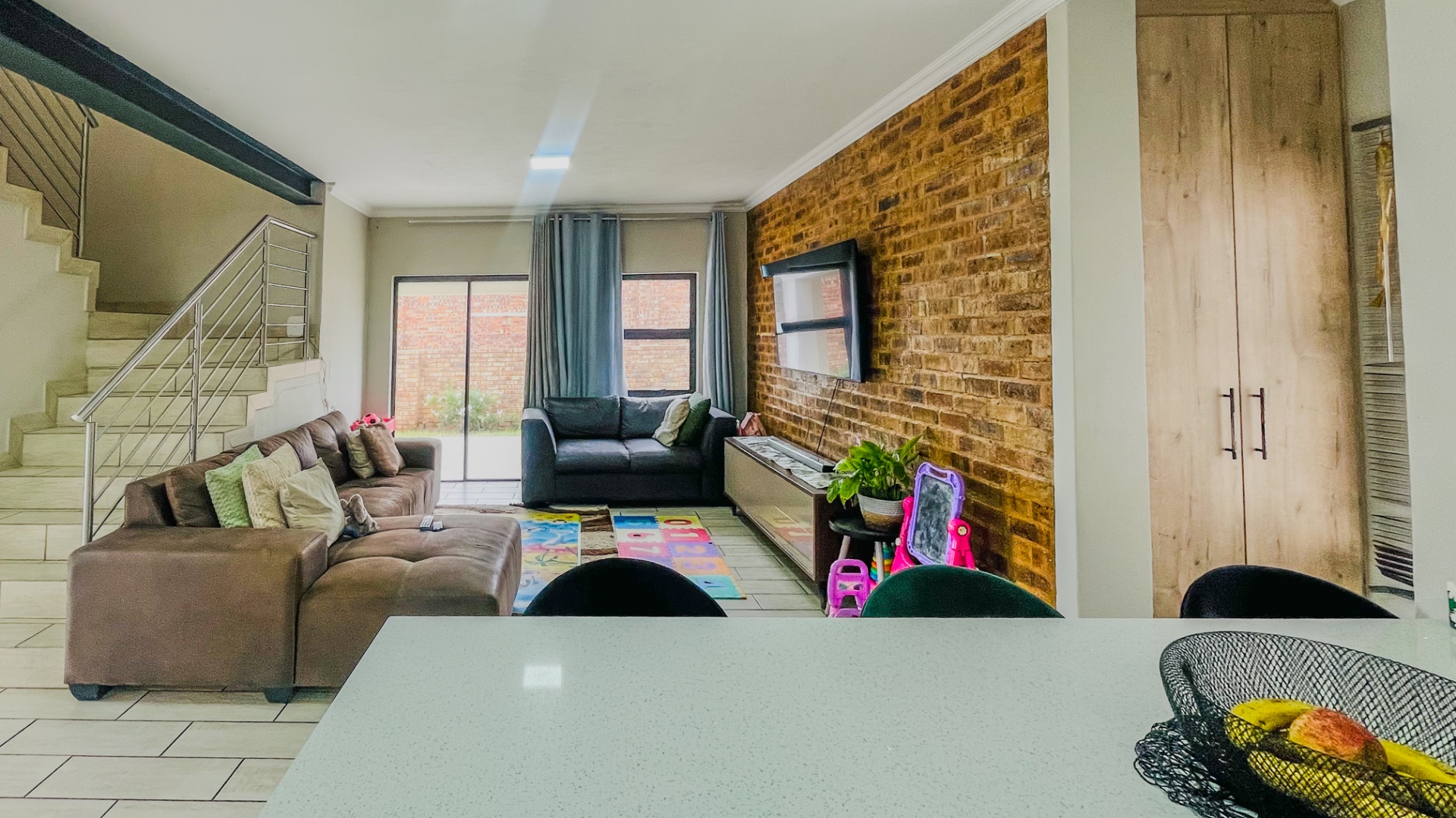 Ascend to the upper level where three lavish bedrooms await, offering serene sanctuaries for rest and rejuvenation. Three impeccably appointed bathrooms, including a private en-suite, provide ultimate comfort and privacy. Outside, a private, walled backyard unfolds, featuring a lush lawn and a covered patio, ideal for alfresco dining. This distinguished property is situated within a secure estate, ensuring peace of mind and an exclusive community atmosphere.