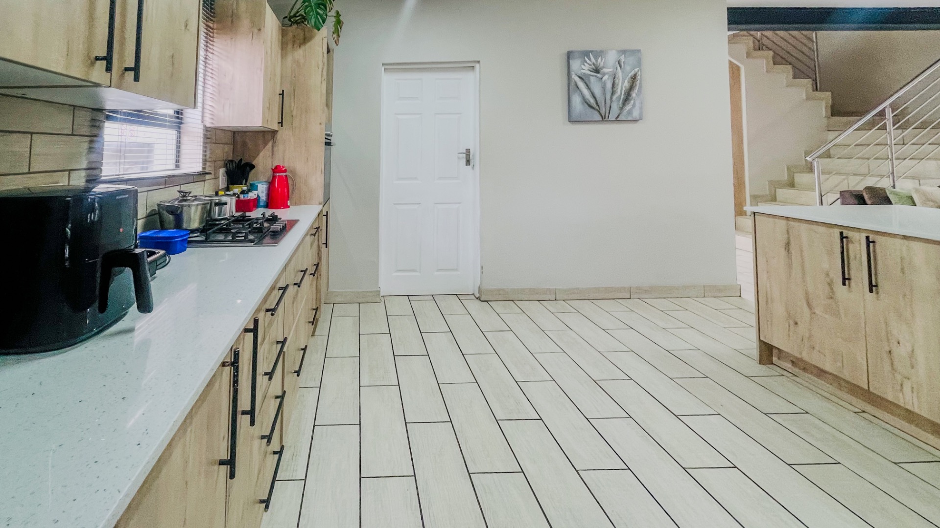 Discover an unparalleled lifestyle within the esteemed Zambezi Manor Lifestyle Estate, Pretoria. This magnificent modern residence, nestled in a tranquil cul-de-sac, presents a striking architectural facade. Its contemporary two-story design, complemented by an integrated double garage and a meticulously paved driveway, offers an immediate impression of sophisticated elegance and refined living.