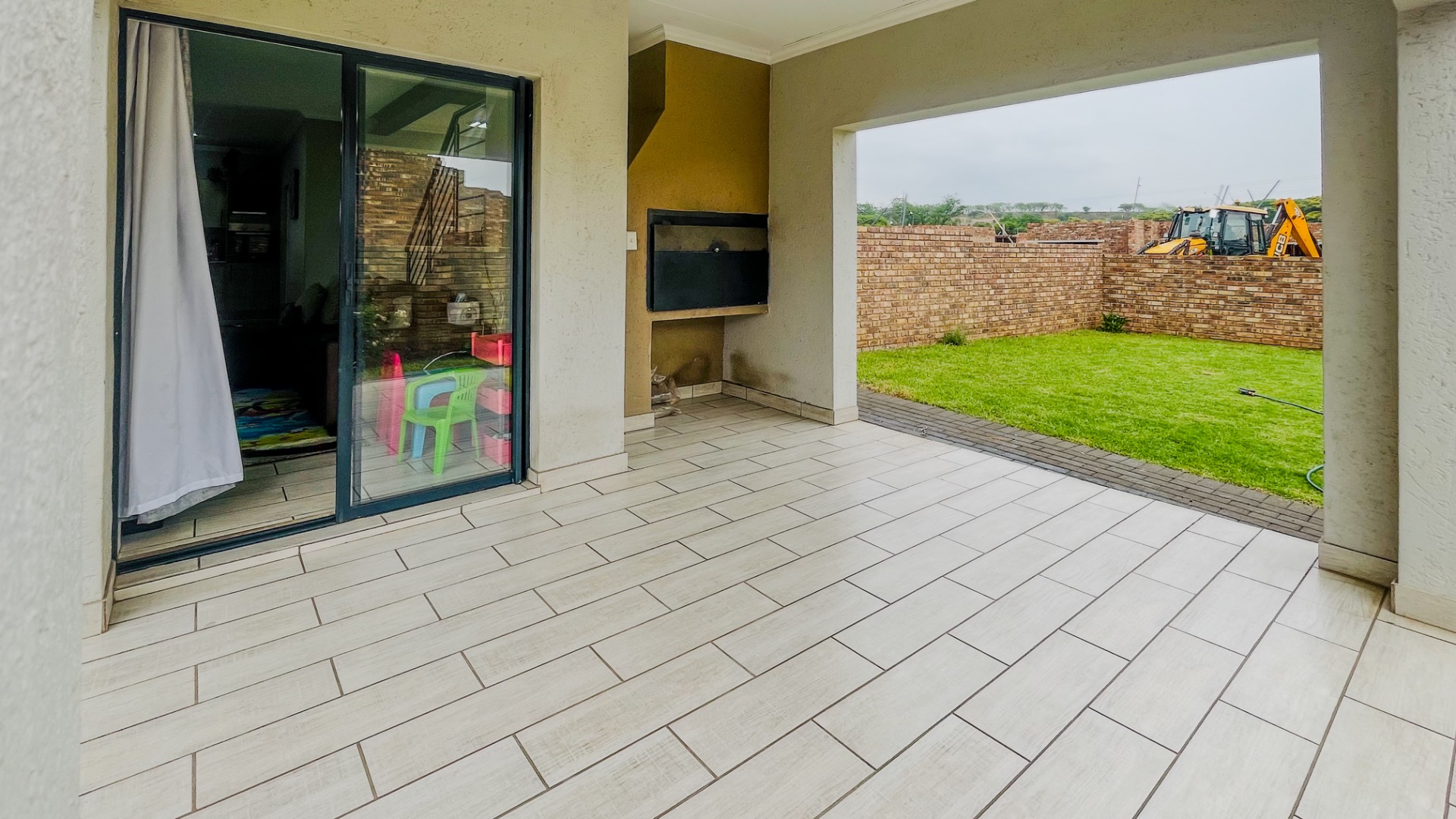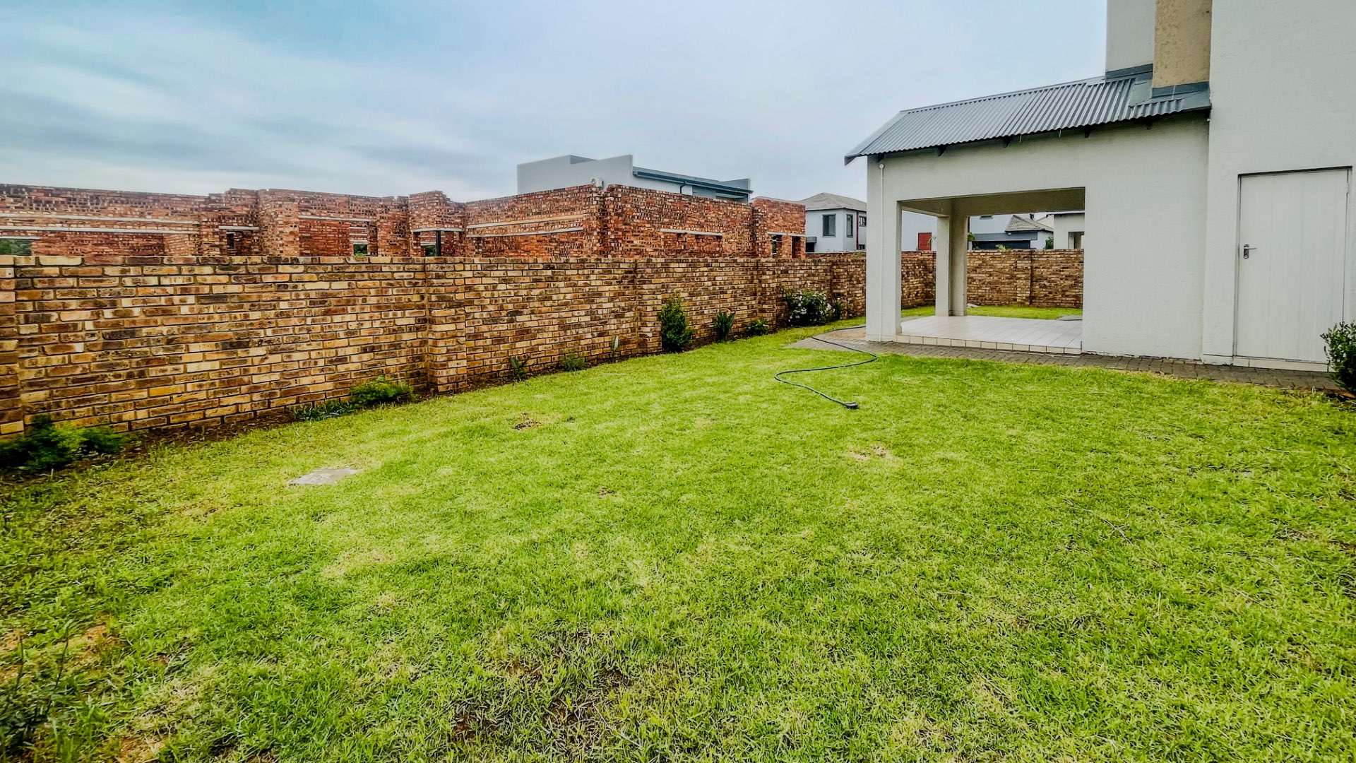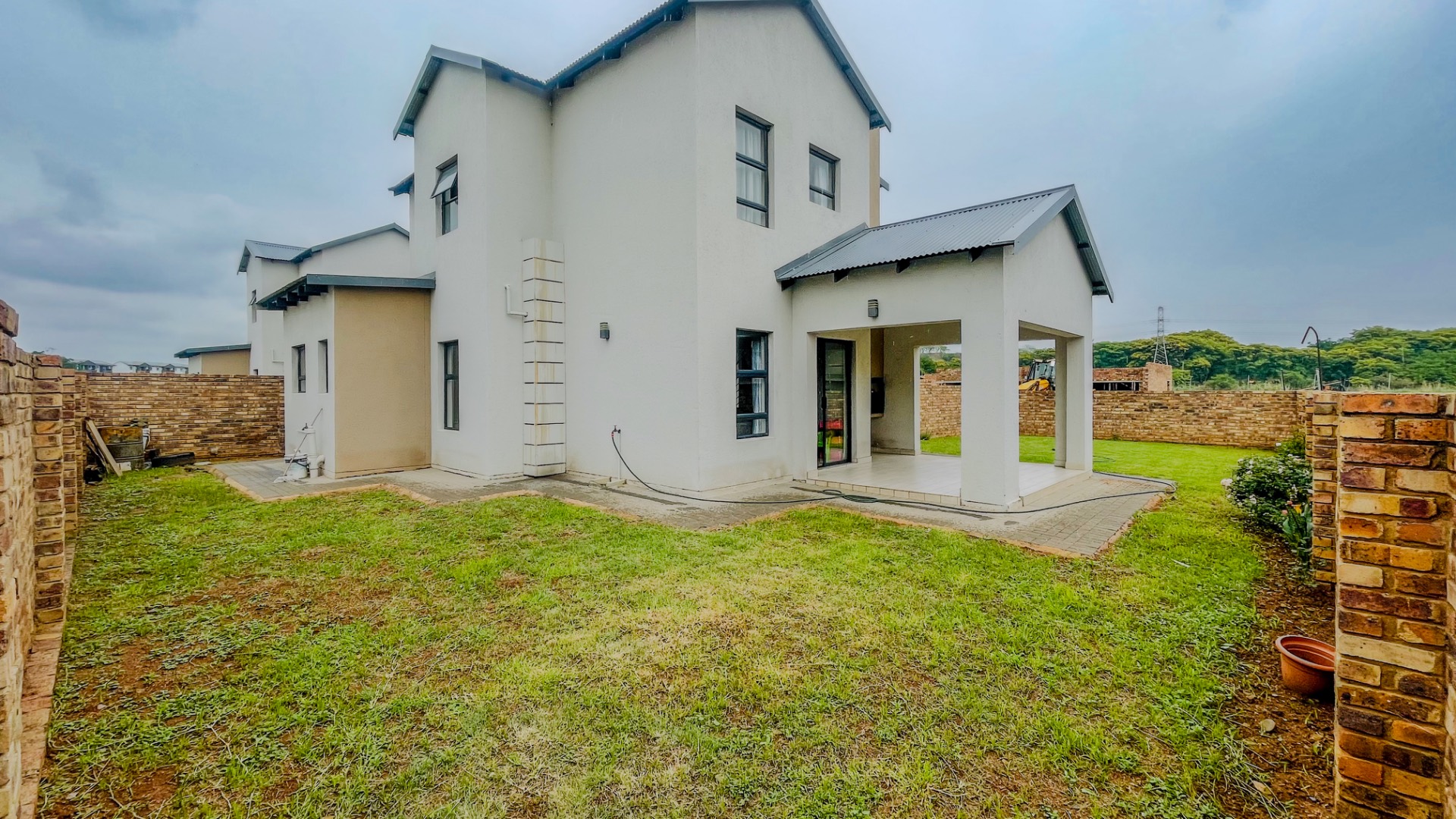 Ascend to the upper level where three lavish bedrooms await, offering serene sanctuaries for rest and rejuvenation. Three impeccably appointed bathrooms, including a private en-suite, provide ultimate comfort and privacy. Outside, a private, walled backyard unfolds, featuring a lush lawn and a covered patio, ideal for alfresco dining. This distinguished property is situated within a secure estate, ensuring peace of mind and an exclusive community atmosphere.
