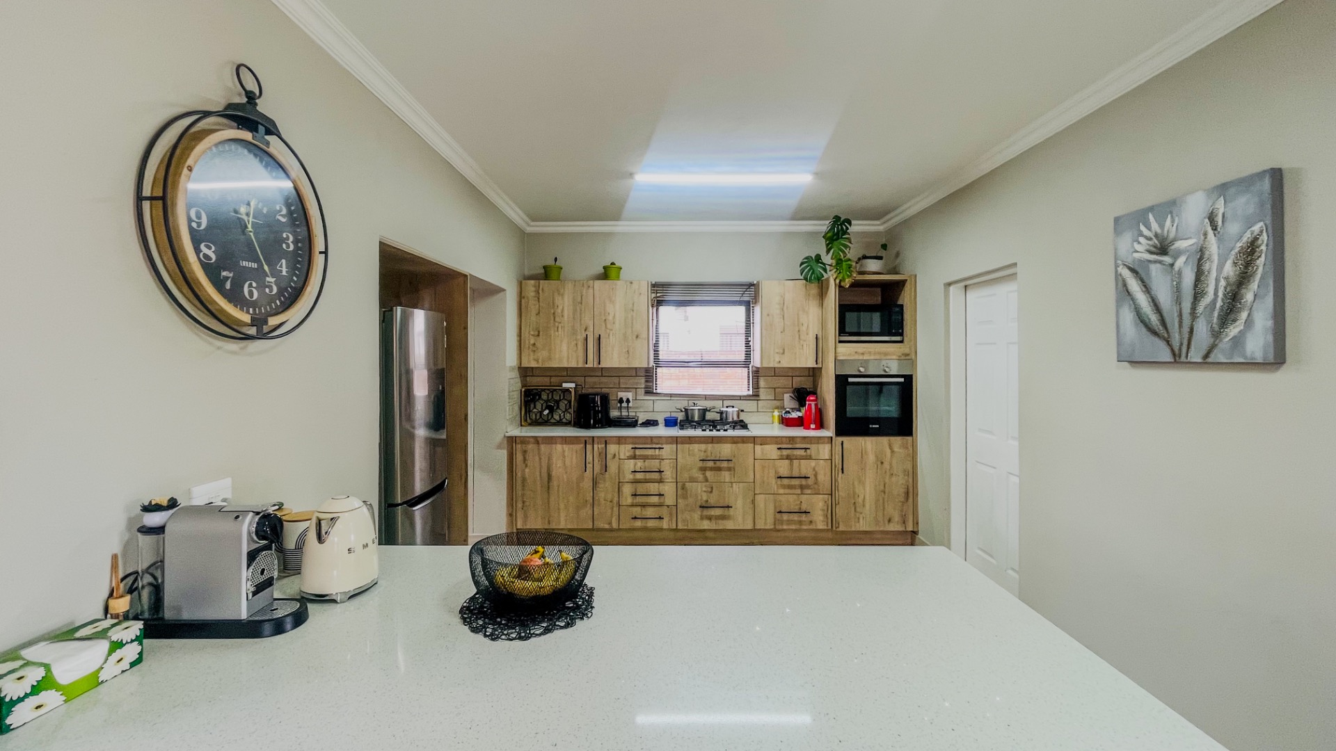 Step inside to an interior crafted for discerning tastes. The heart of the home, a state-of-the-art kitchen, boasts exquisite light wood-look cabinetry, gleaming quartz countertops, and a suite of integrated appliances including an oven, microwave, and a gas hob. A generous central island/peninsula provides both functionality and a focal point for culinary artistry. The seamless flow extends to a spacious lounge, perfect for both intimate gatherings and grand entertaining.