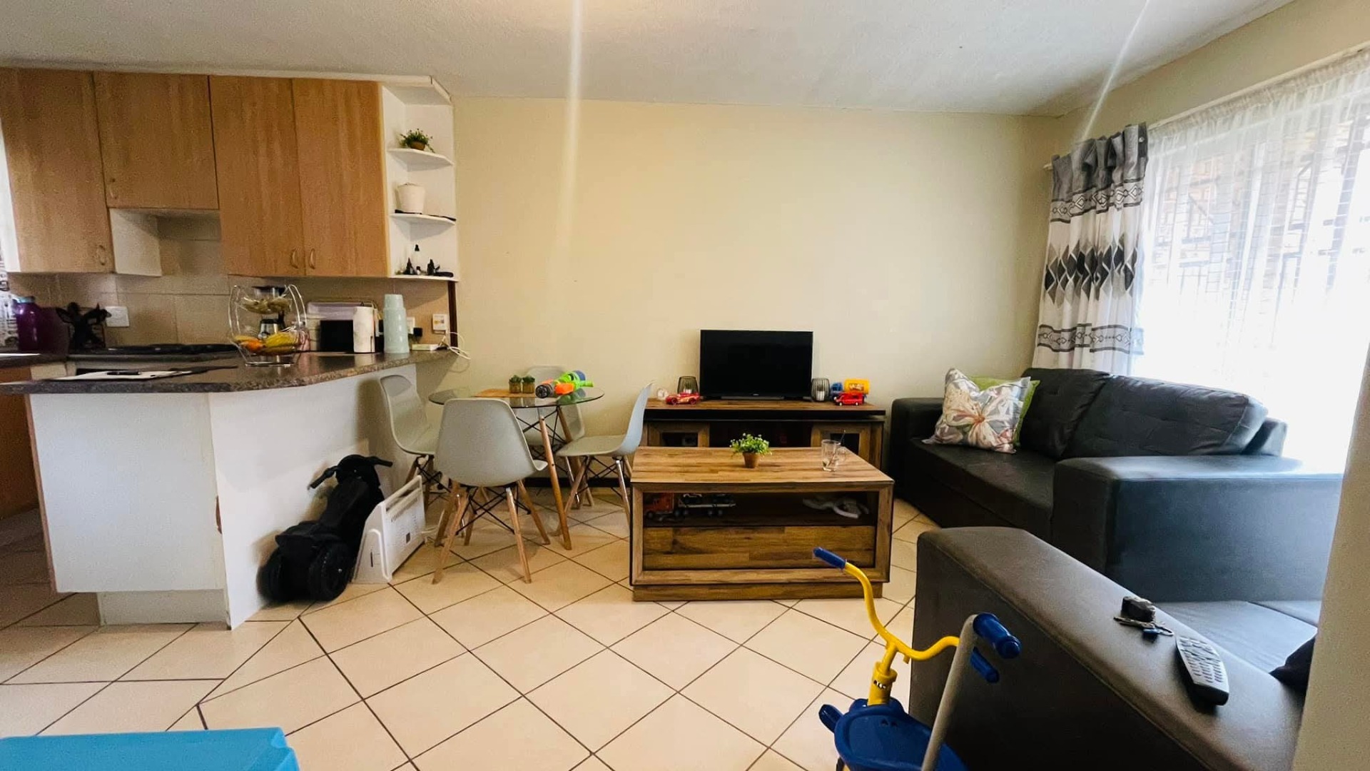 Discover refined urban living within this exquisite 70 sqm apartment, perfectly situated in the esteemed Akasia locale. This sophisticated residence boasts an intelligently designed open-plan layout, seamlessly connecting the elegant lounge to a well-appointed kitchen. The culinary space features a built-in electric oven and stovetop, complemented by ample upper and lower cabinetry, a practical double basin sink, and an extended island that doubles as a chic breakfast bar, ideal for both casual dining and entertaining.