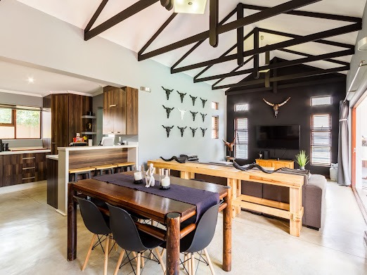 The interior boasts an open-plan layout, creating a seamless flow between the living spaces. This includes an open plan lounge, and dining space, with access onto the covered patio with built in braai.
