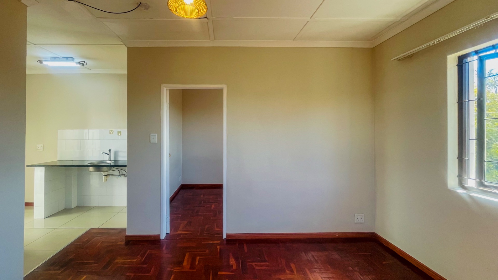 The open-plan kitchen and lounge area creates a welcoming space ready for your personal touch, while the bathroom includes a modern shower and vanity. The bedroom is cozy and airy, offering a quiet retreat at the end of the day.